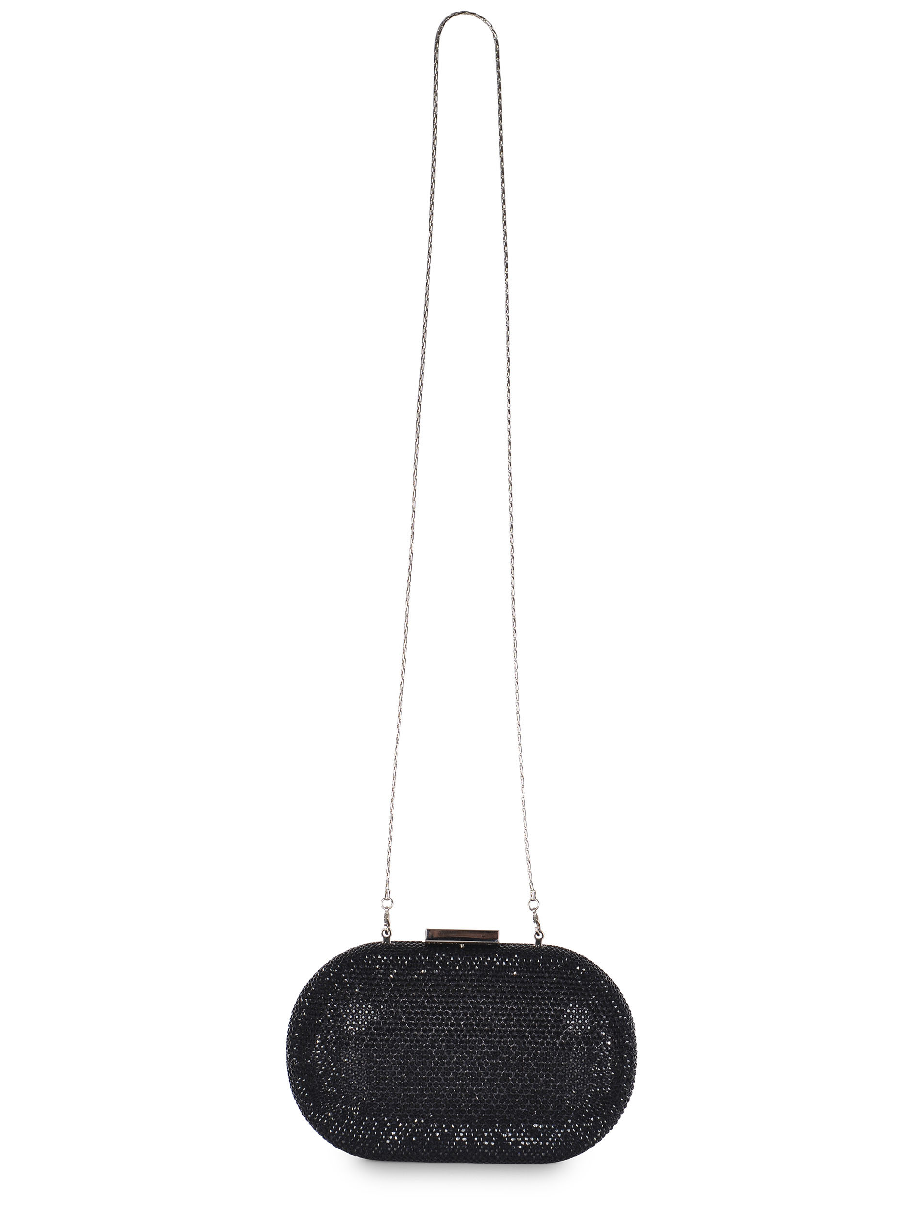 Twenty Fourhaitch "Sunrise" bag made of black rhinestones.