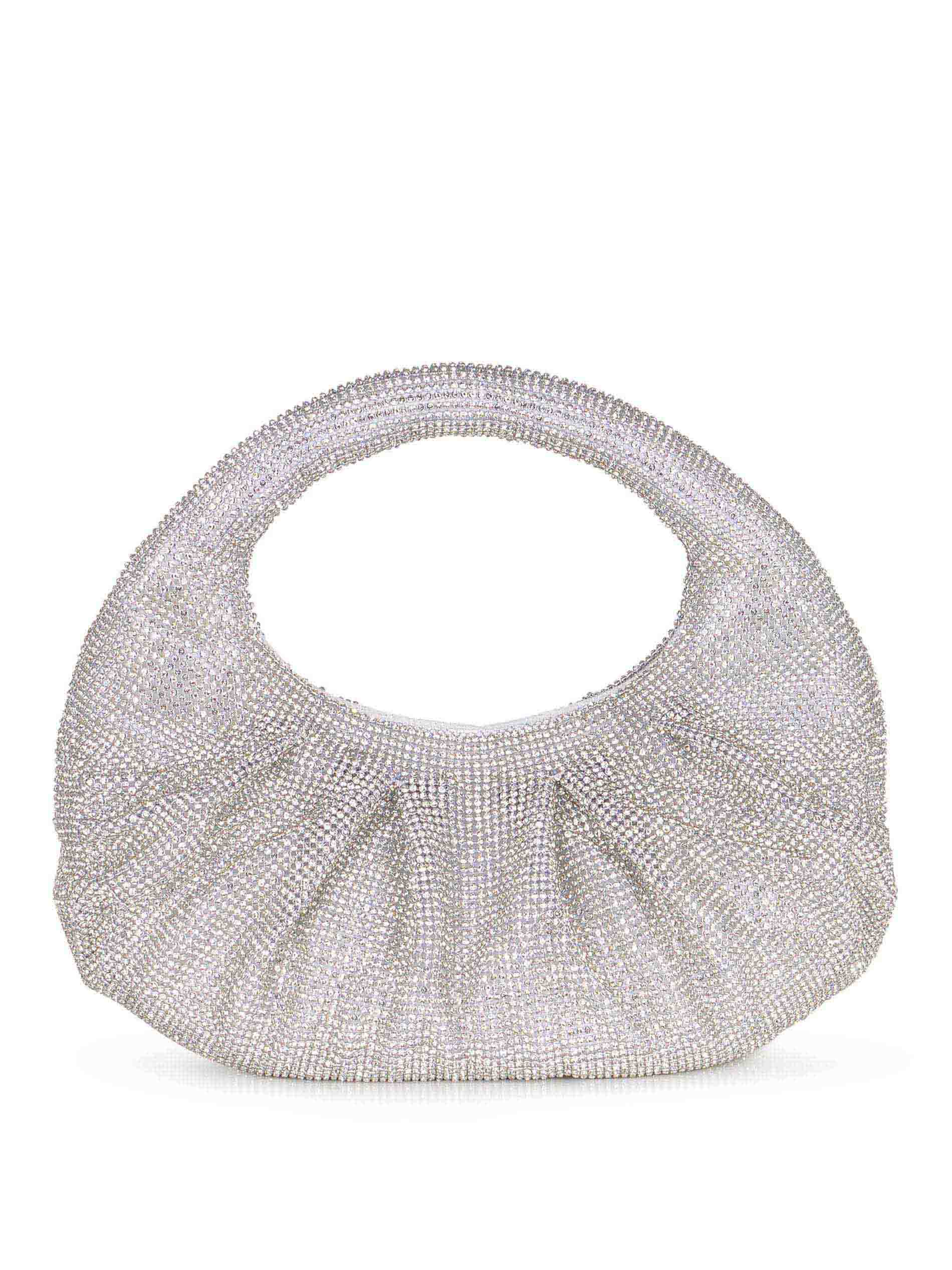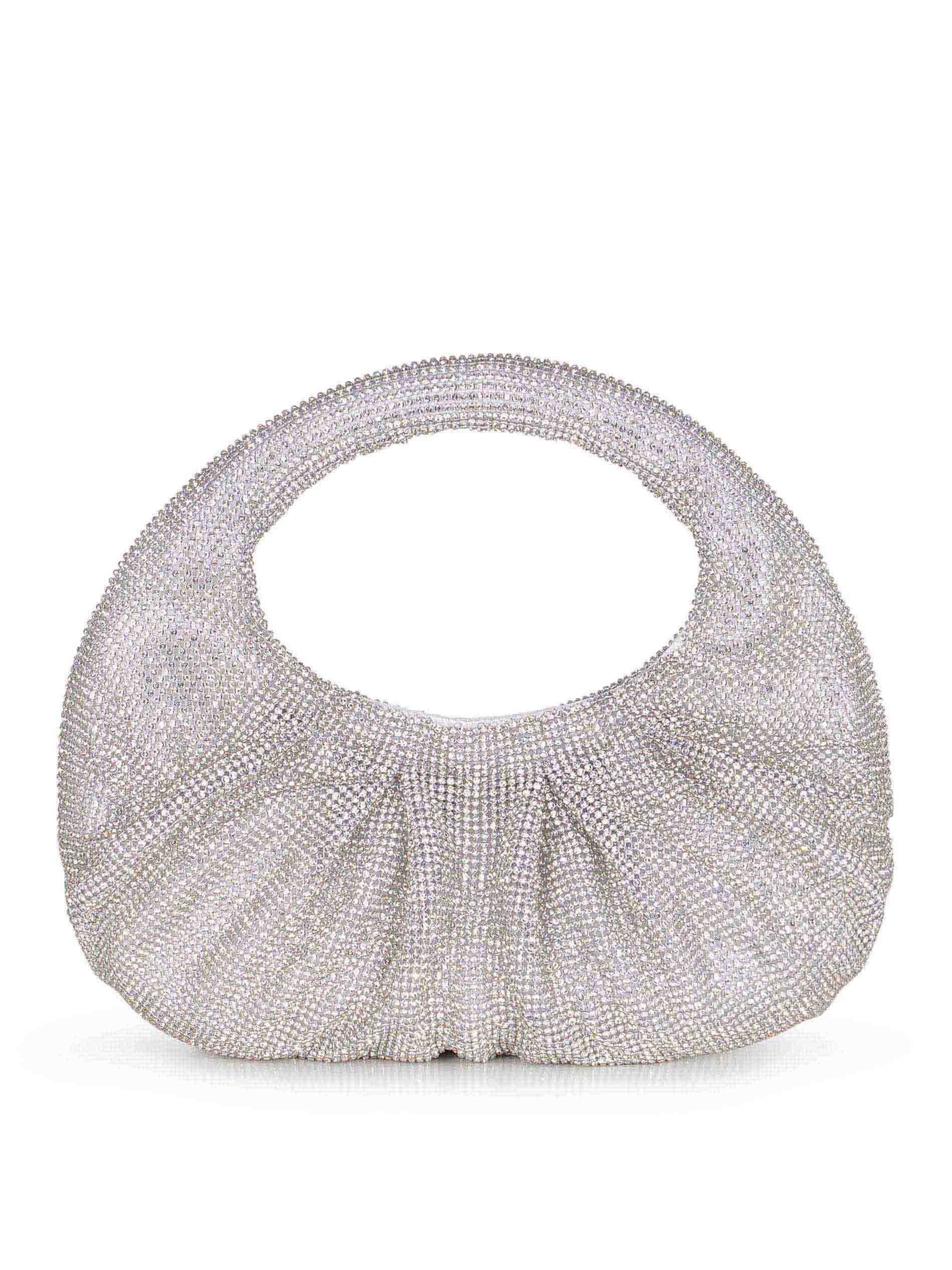 Twenty Fourhaitch "Joan" bag made of silver-colored rhinestone mesh. Single rigid handle. Draped design. Top magnetic closure. Inner pocket with branded metal plate. Depth 6 cm Height 24 cm Width 25 cm 100% rhinestones