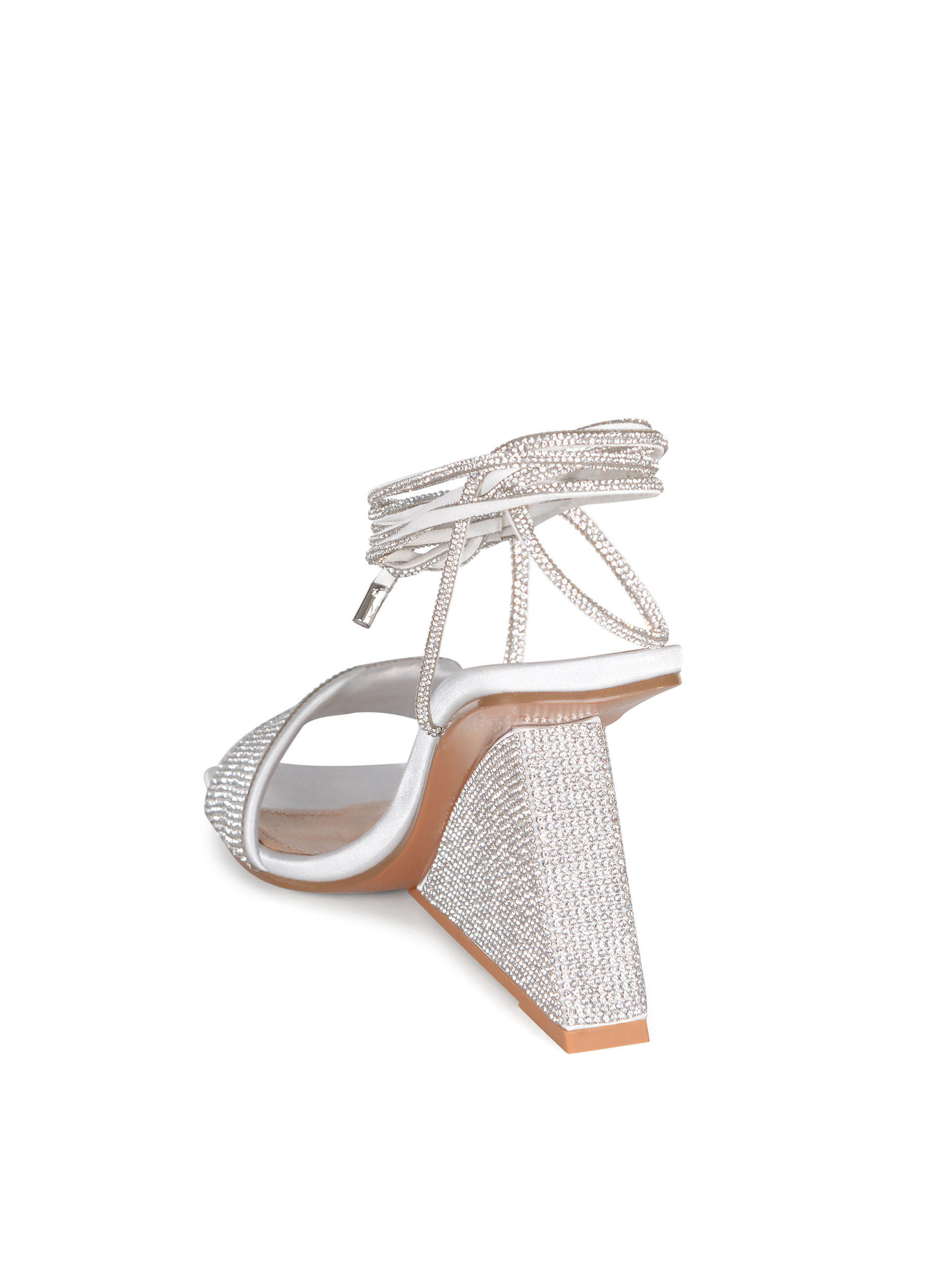 Adjustable rhinestone ankle straps.