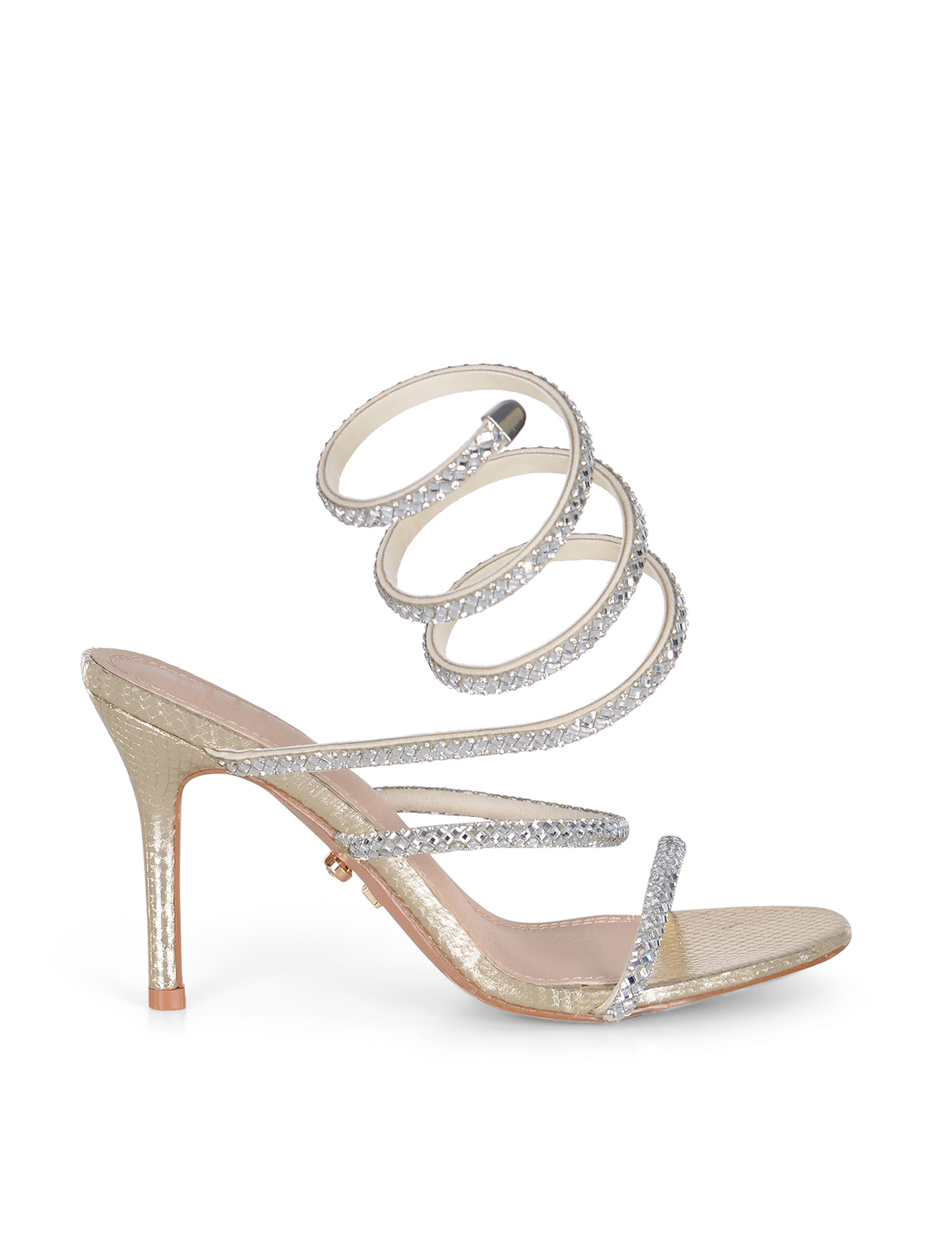 Twenty Fourhaitch "Zeja" sandals made of gold-colored leather.