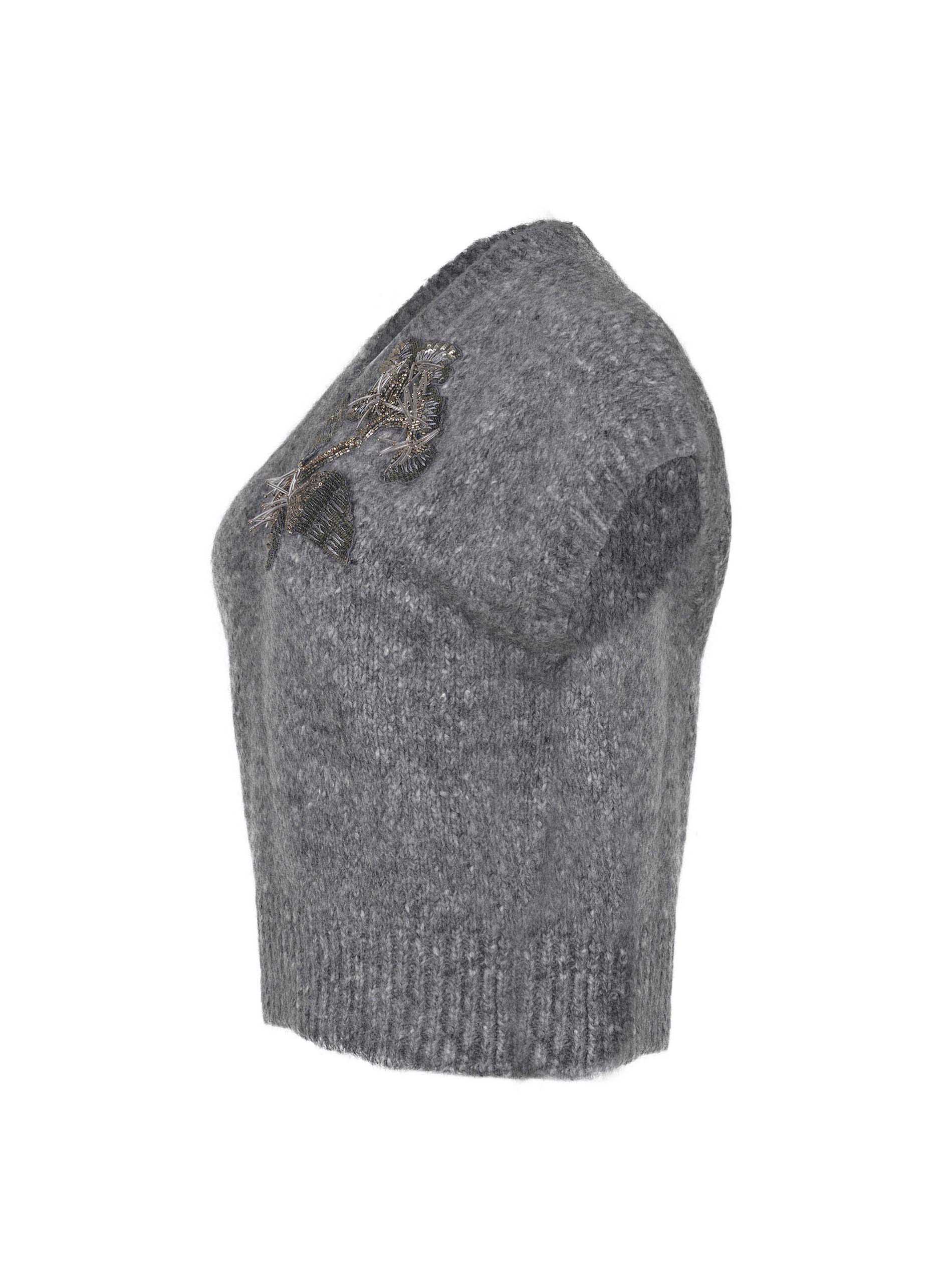 Tone-on-tone raised detail on the chest with rhinestones and micro sequins.