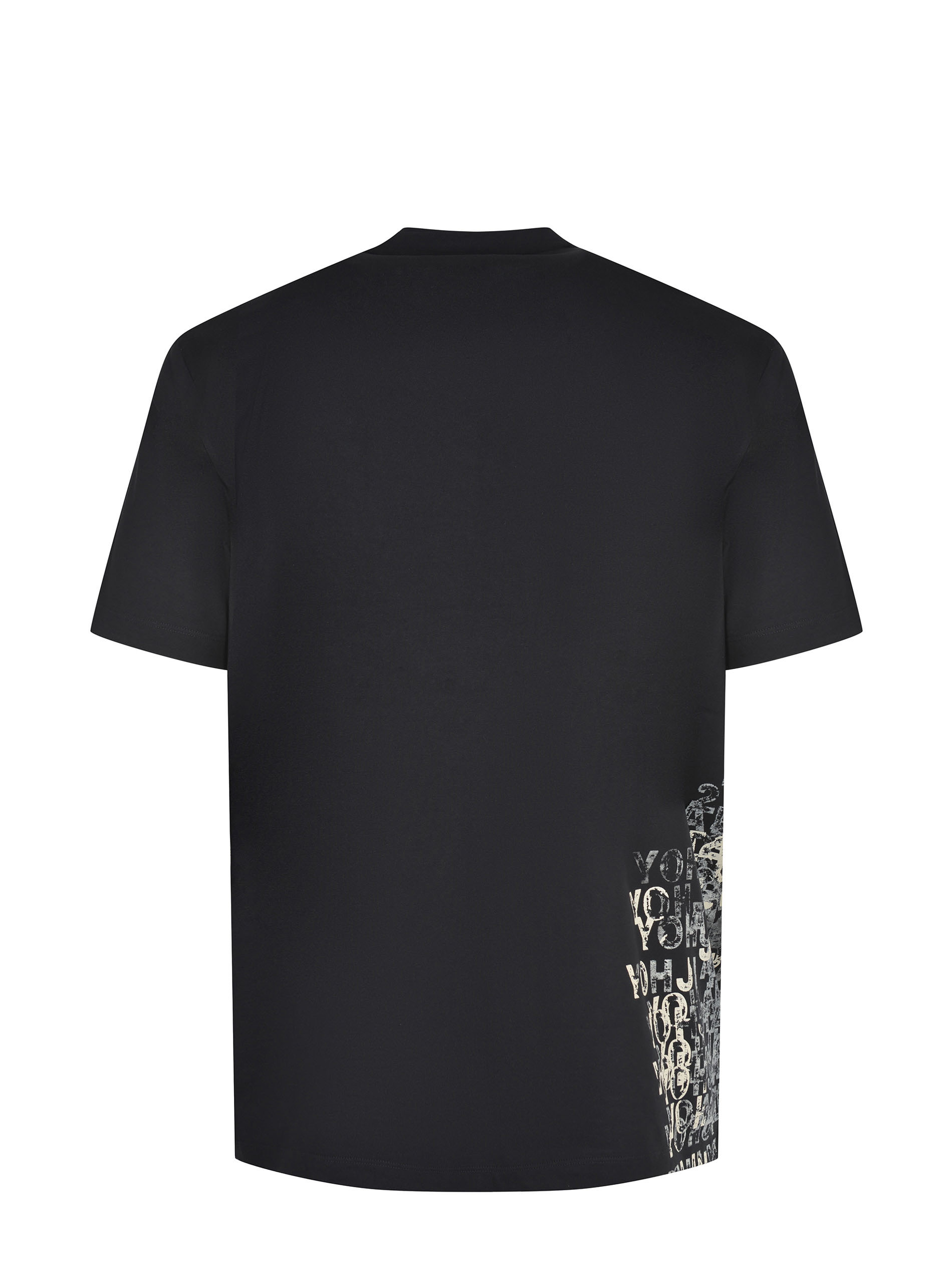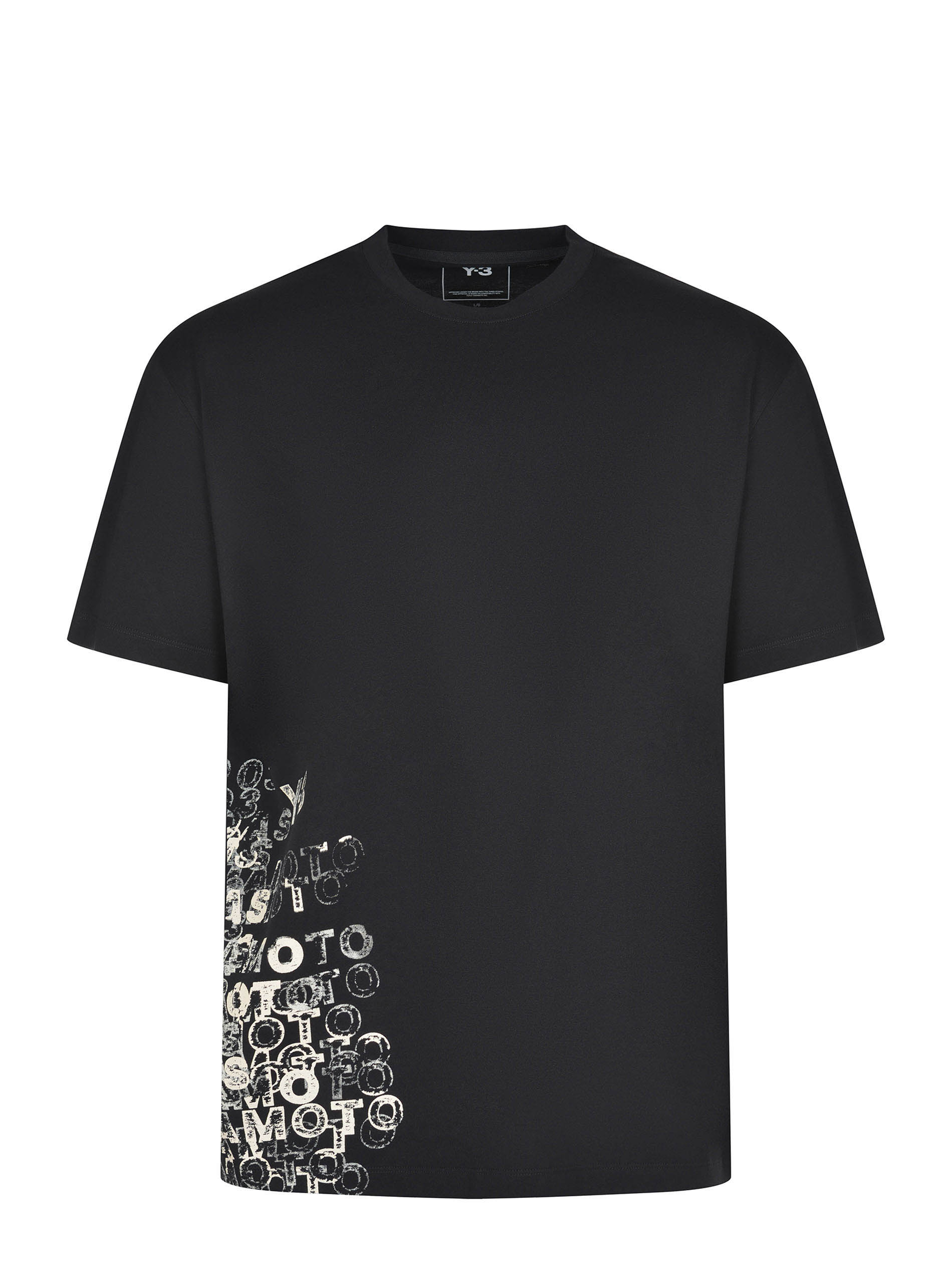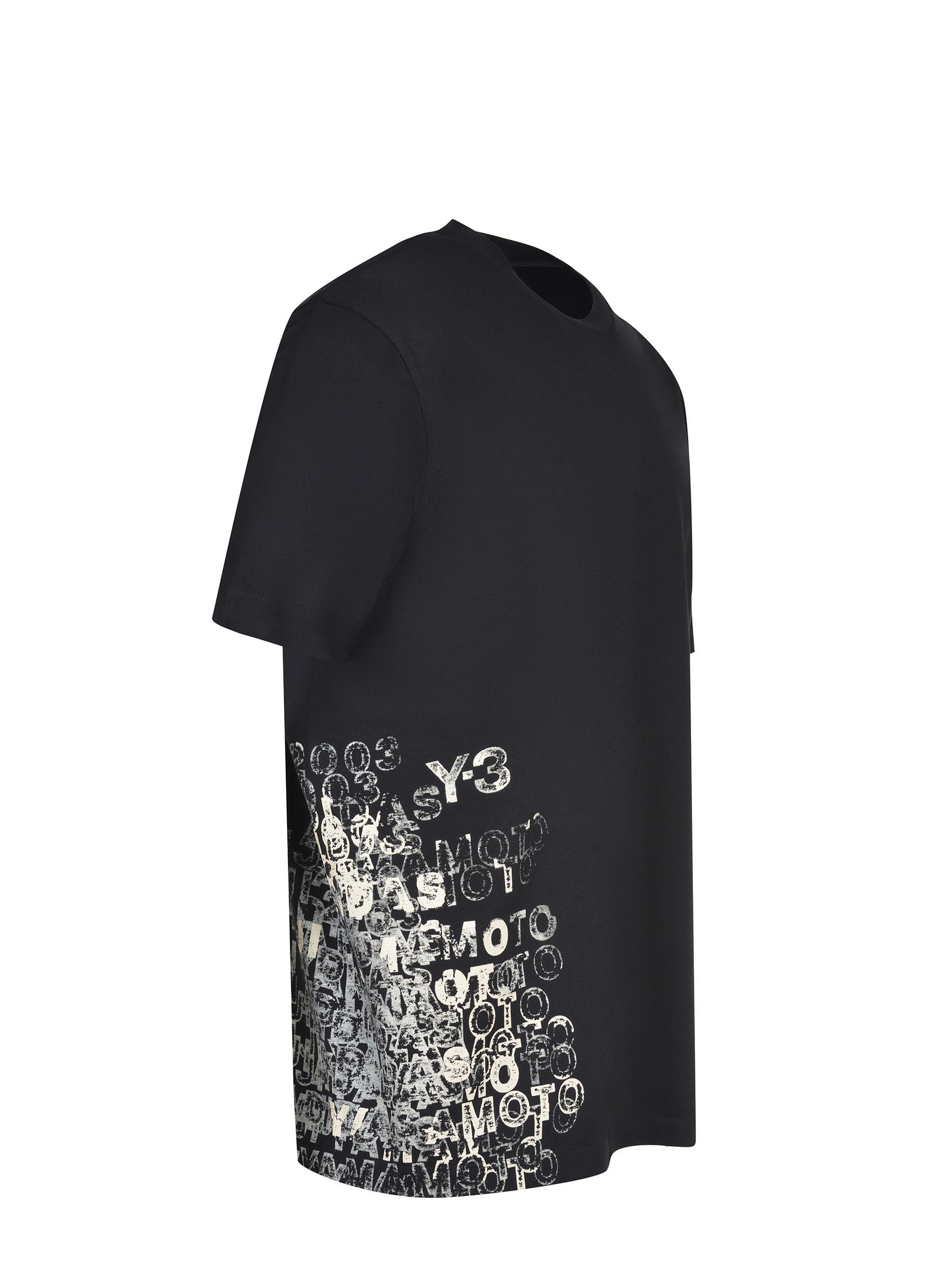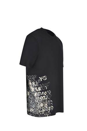 Y-3 T-shirt made of black cotton. Ribbed crew neck. Short sleeves. Side logo lettering printed in contrast. 100% cotton