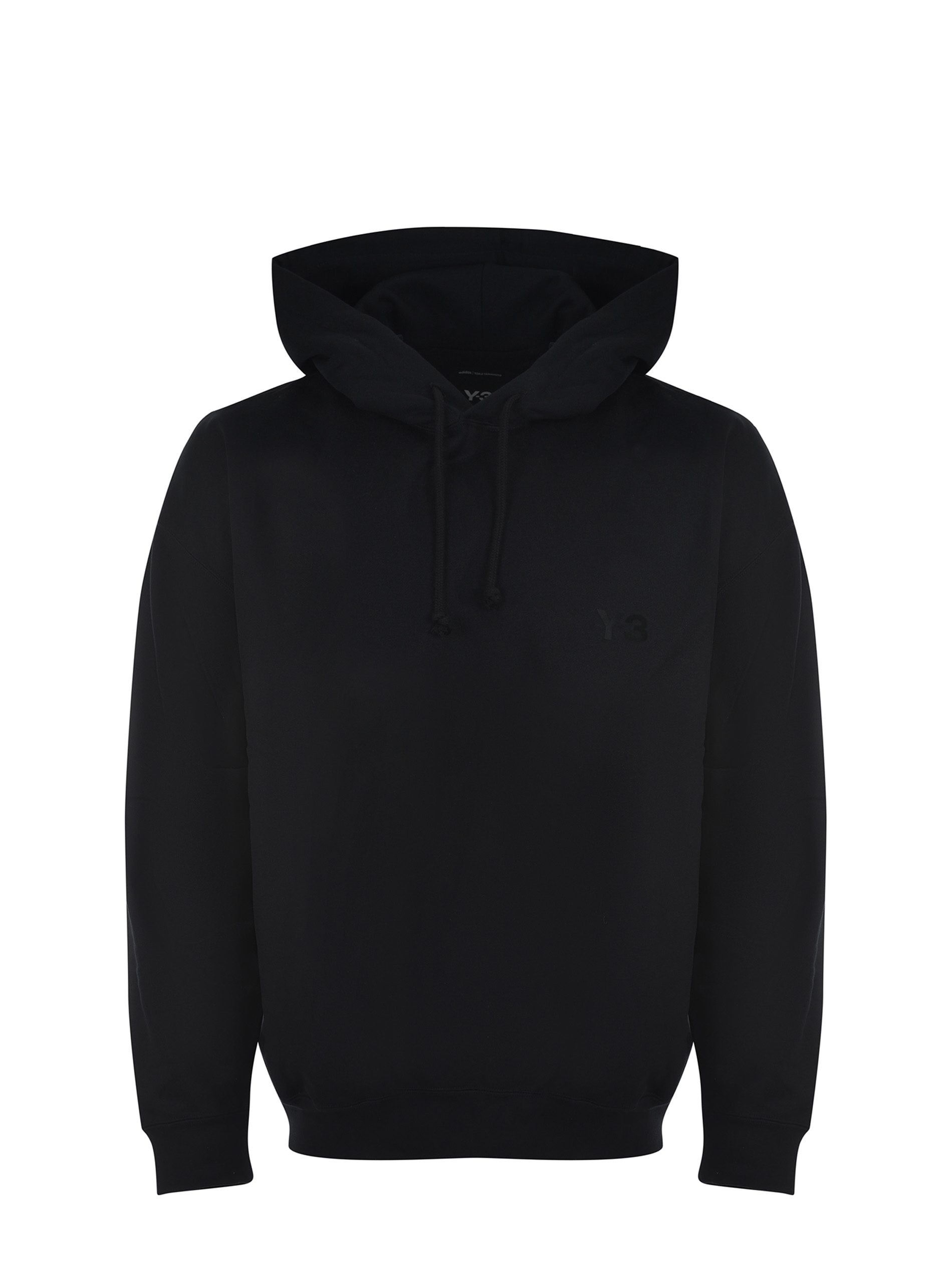 Y-3 sweatshirt in black cotton blend. Hood with drawstring. Long sleeves. Side pockets. Ribbed cuffs and bottom. Logo printed on the chest.