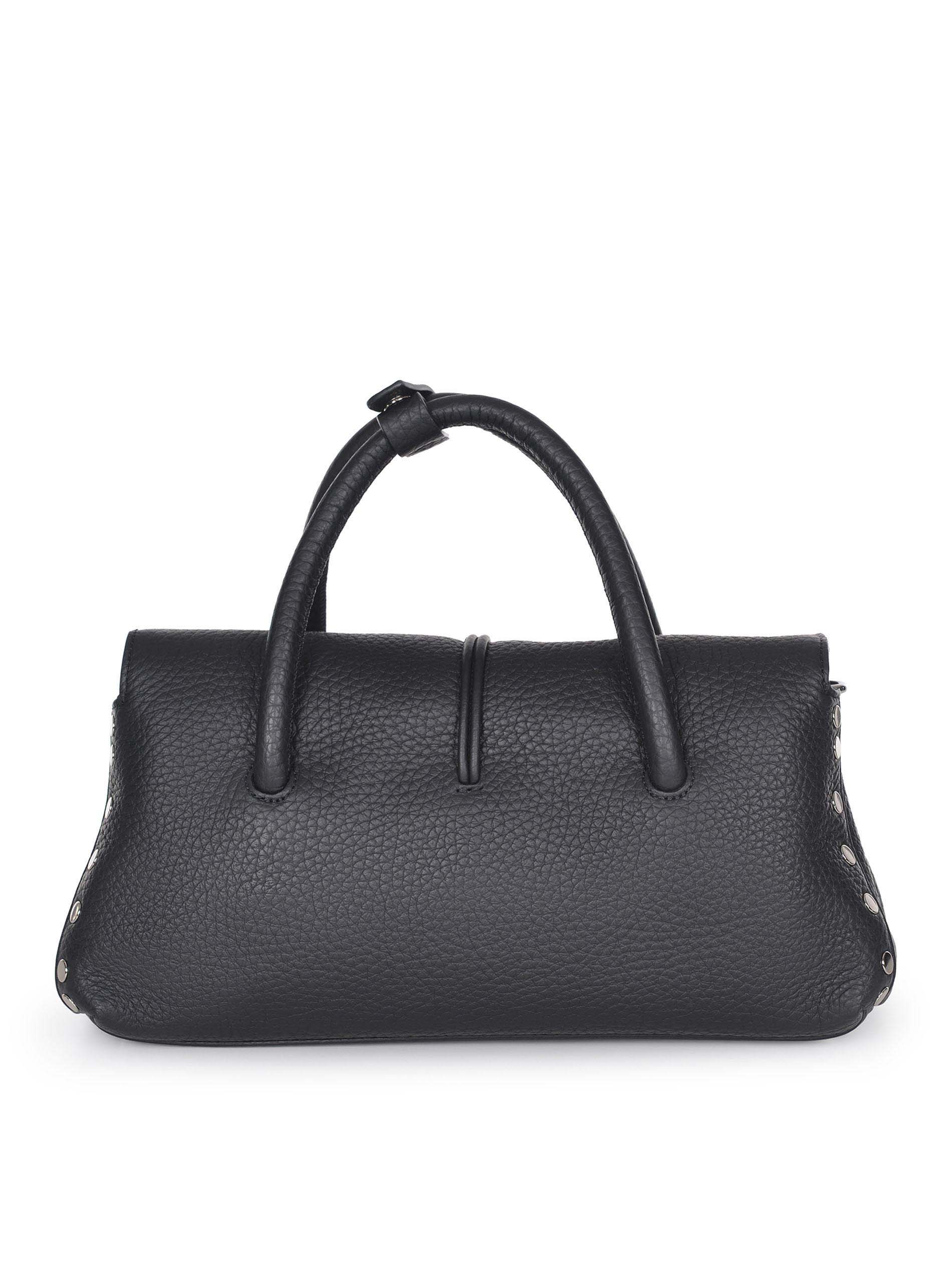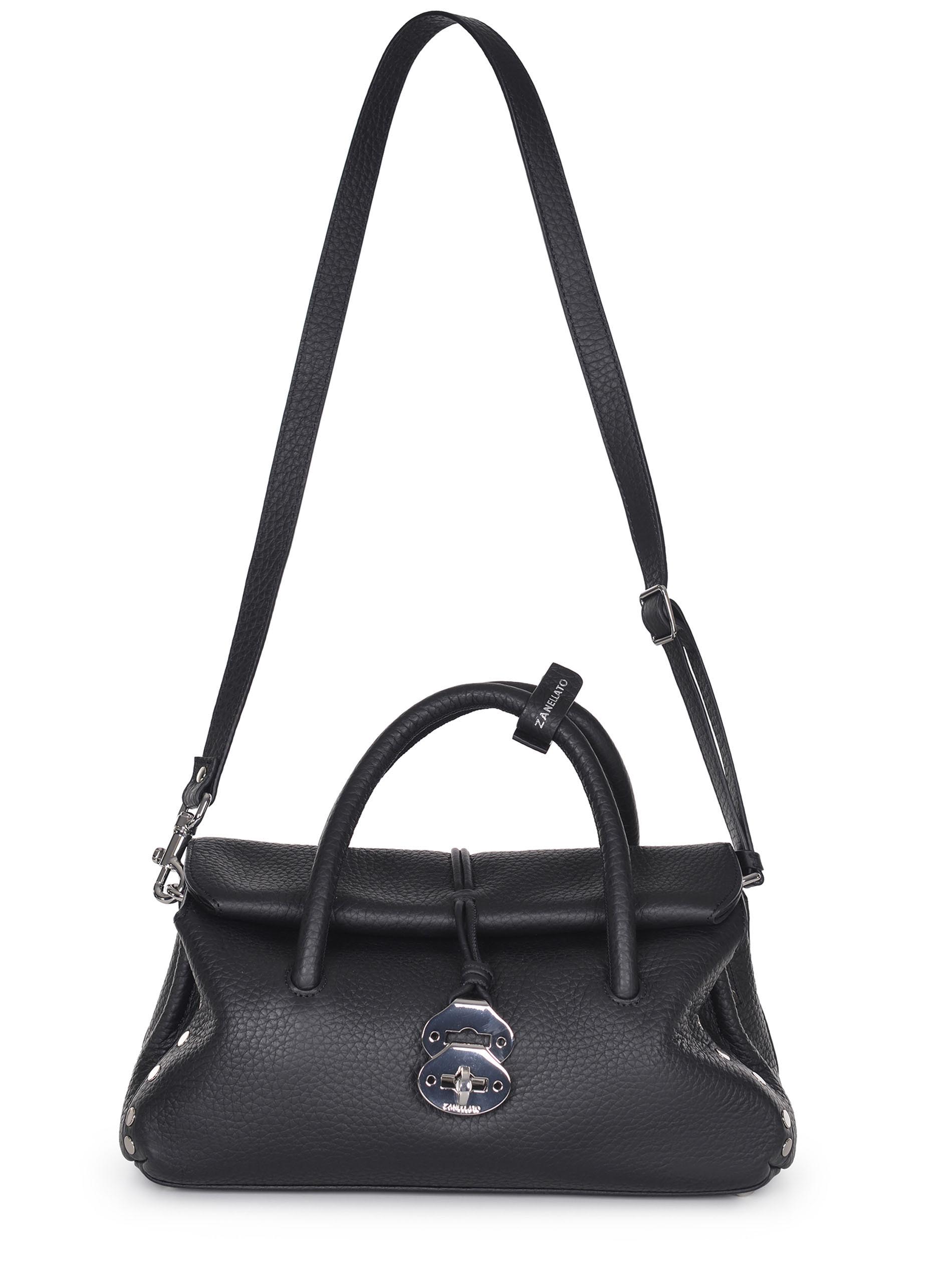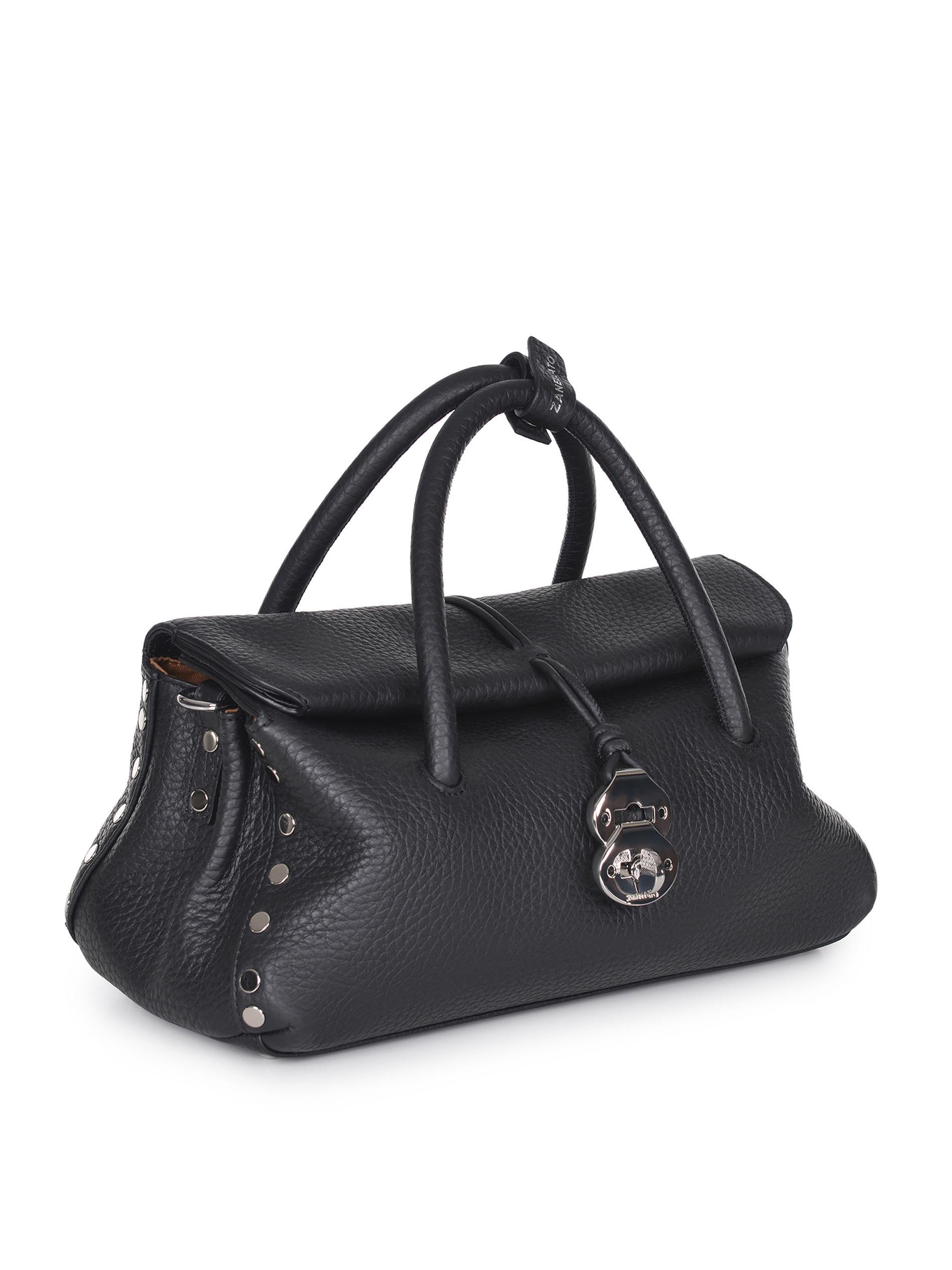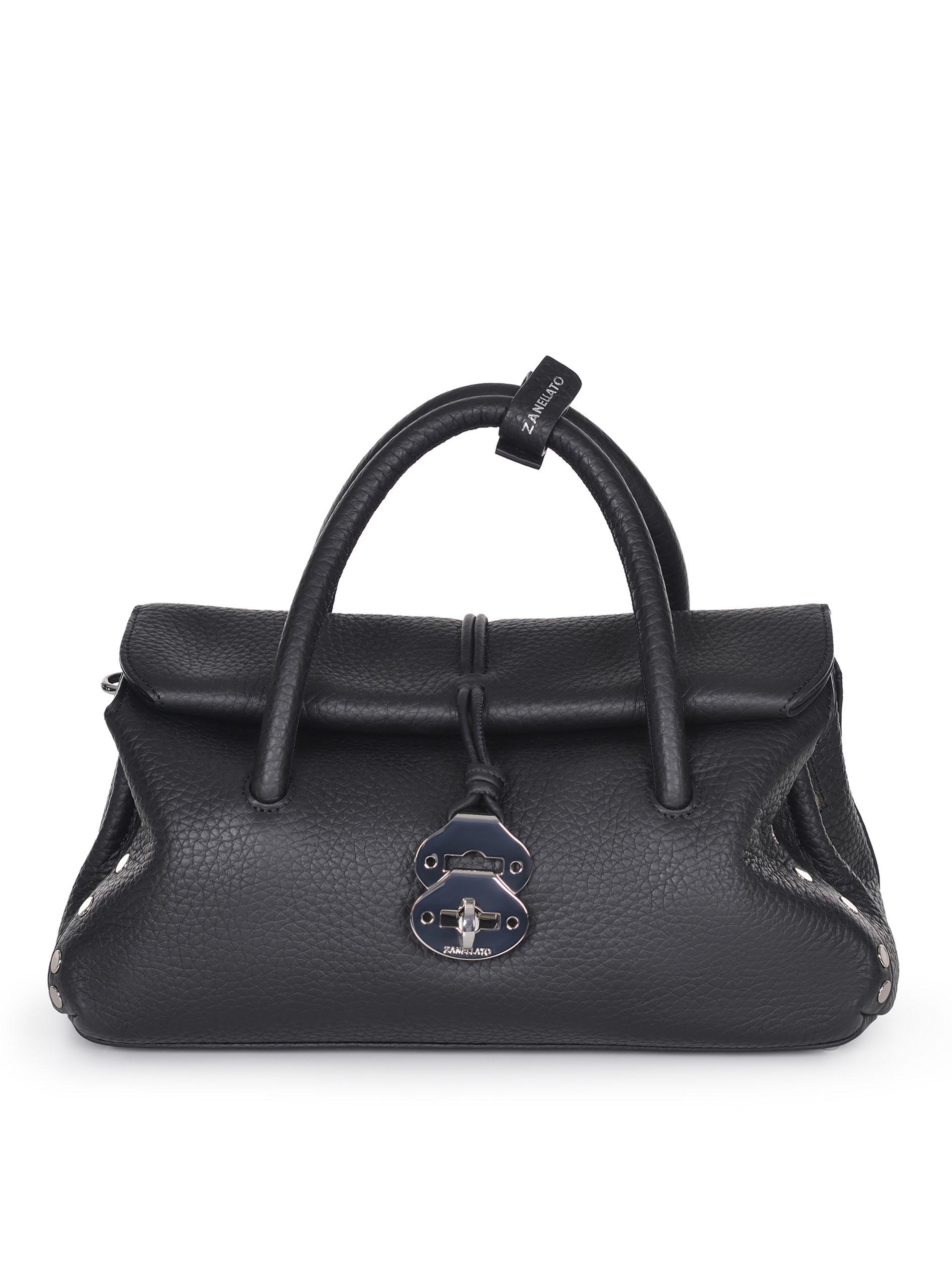 Bag Zanellato "Dotta S" made of hammered leather in Black. Silver metal inserts.