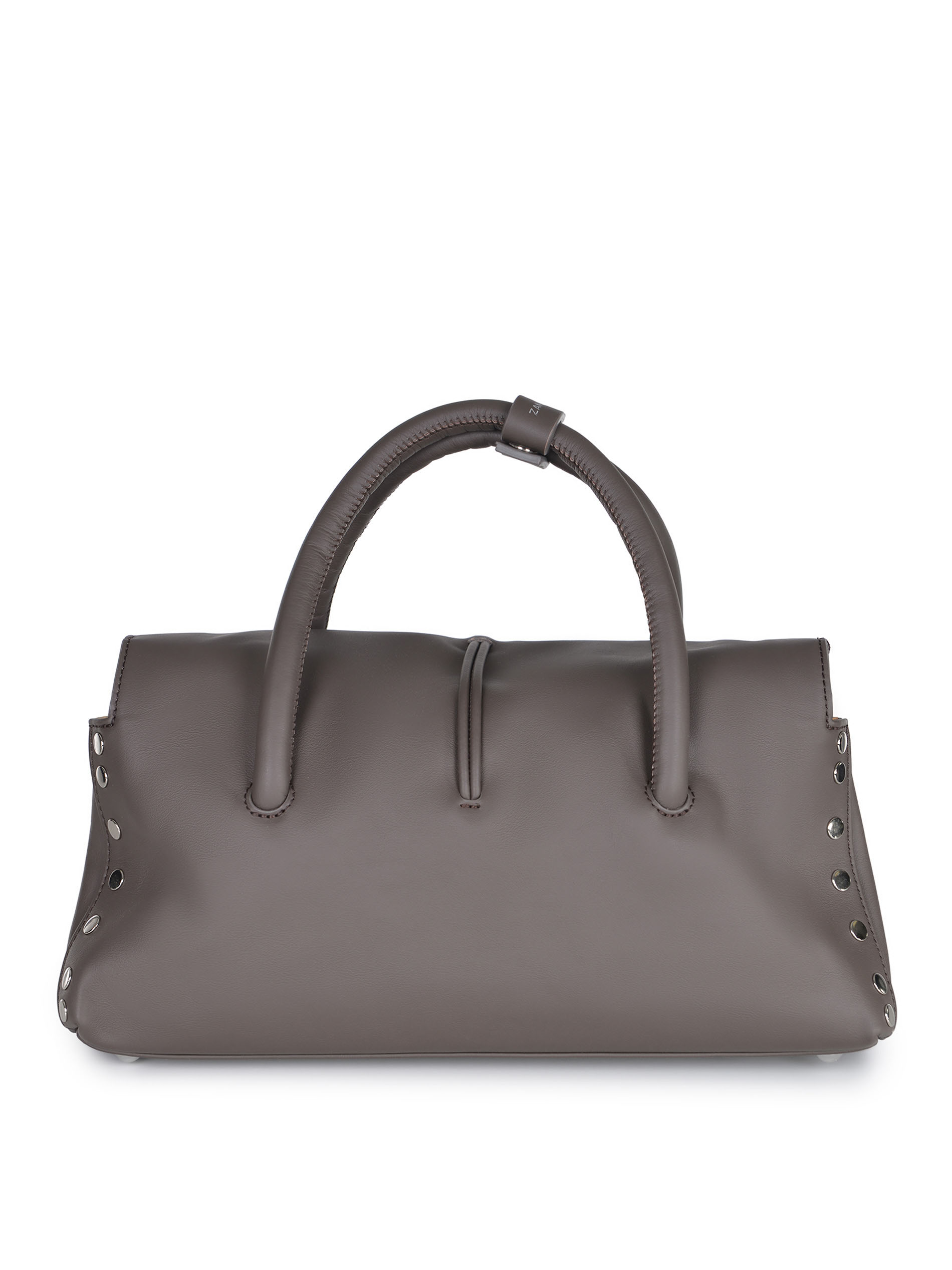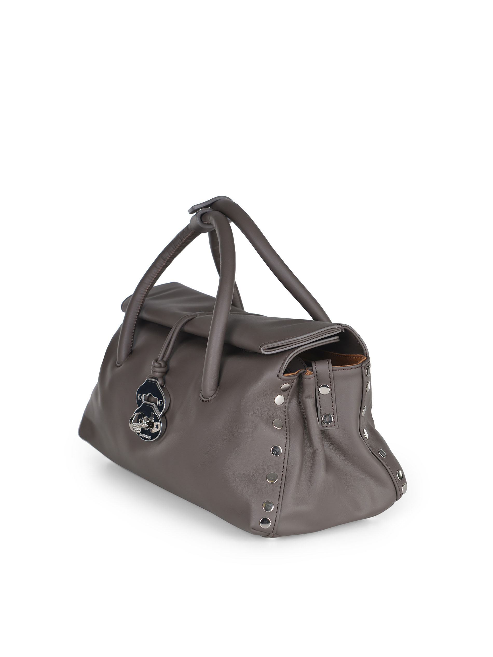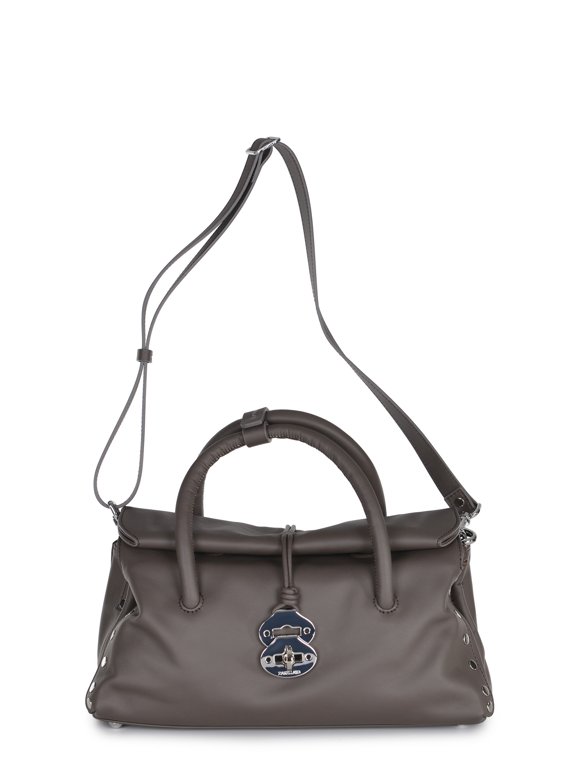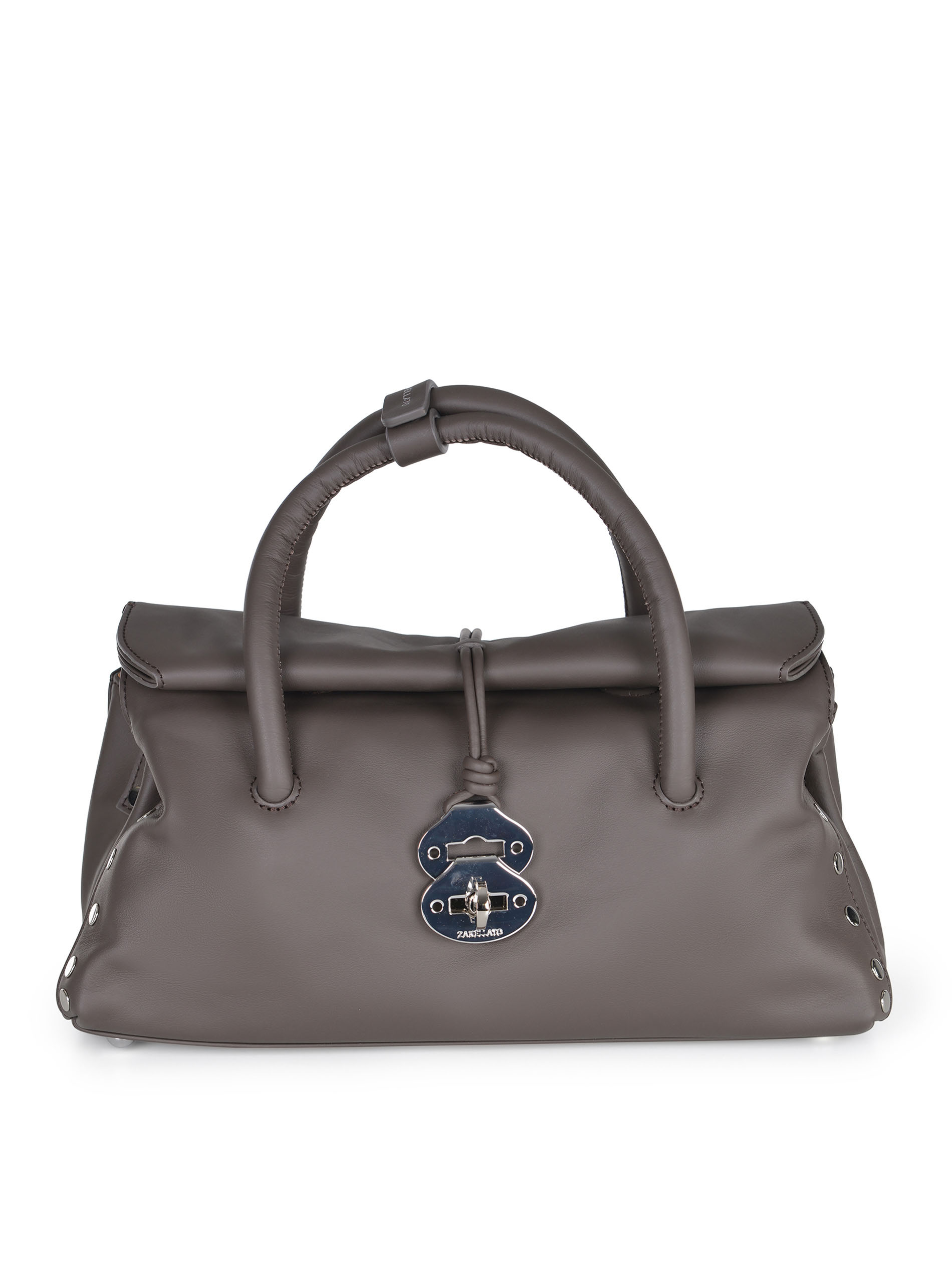 Zanellato "Dotta S" bag made of smooth brown leather. Silver metal accents.