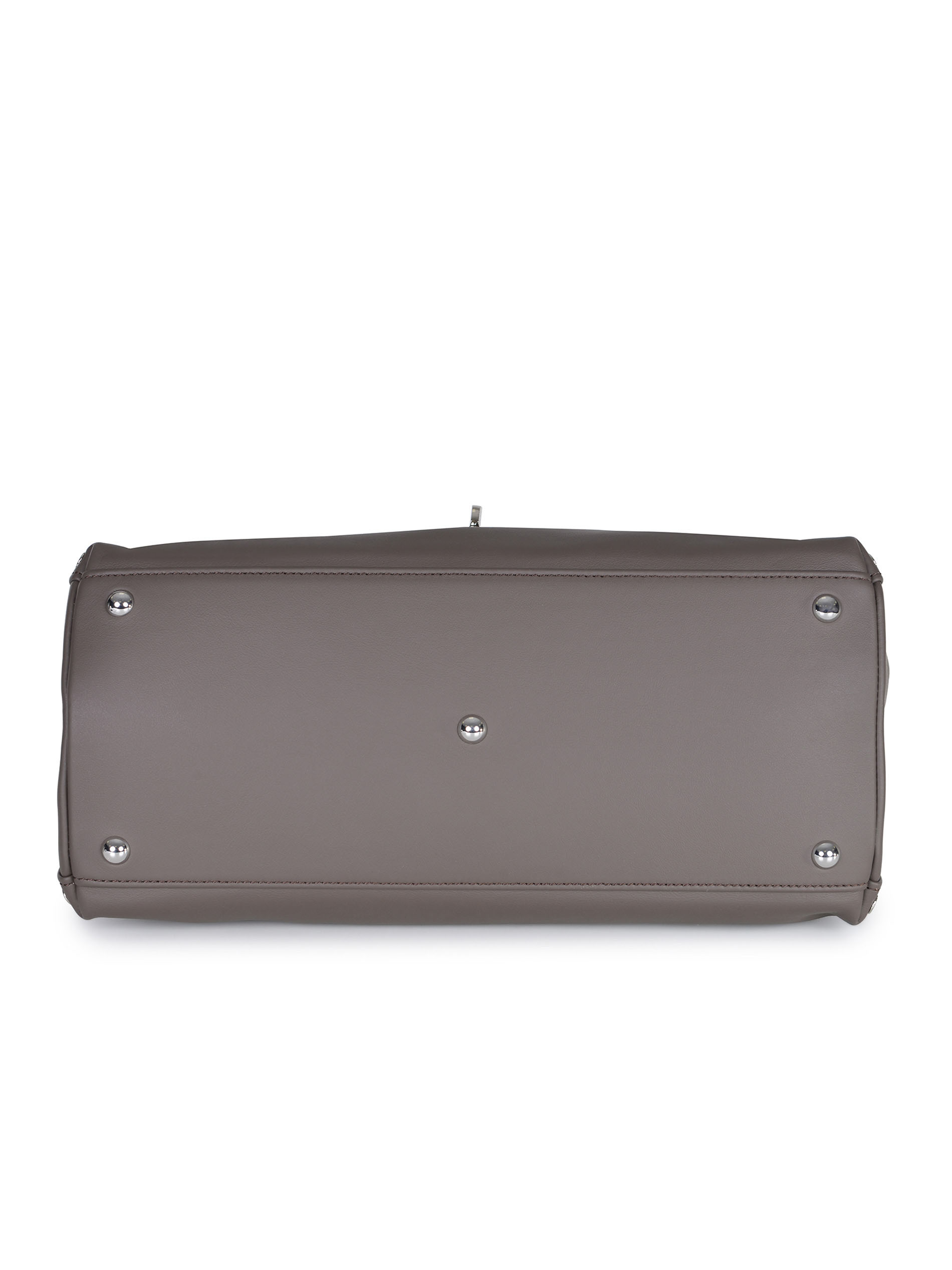 "Stud" detail applied to the sides. Two handles. Magnetic roll-top closure, tubular twist-lock straps. Lined interior.