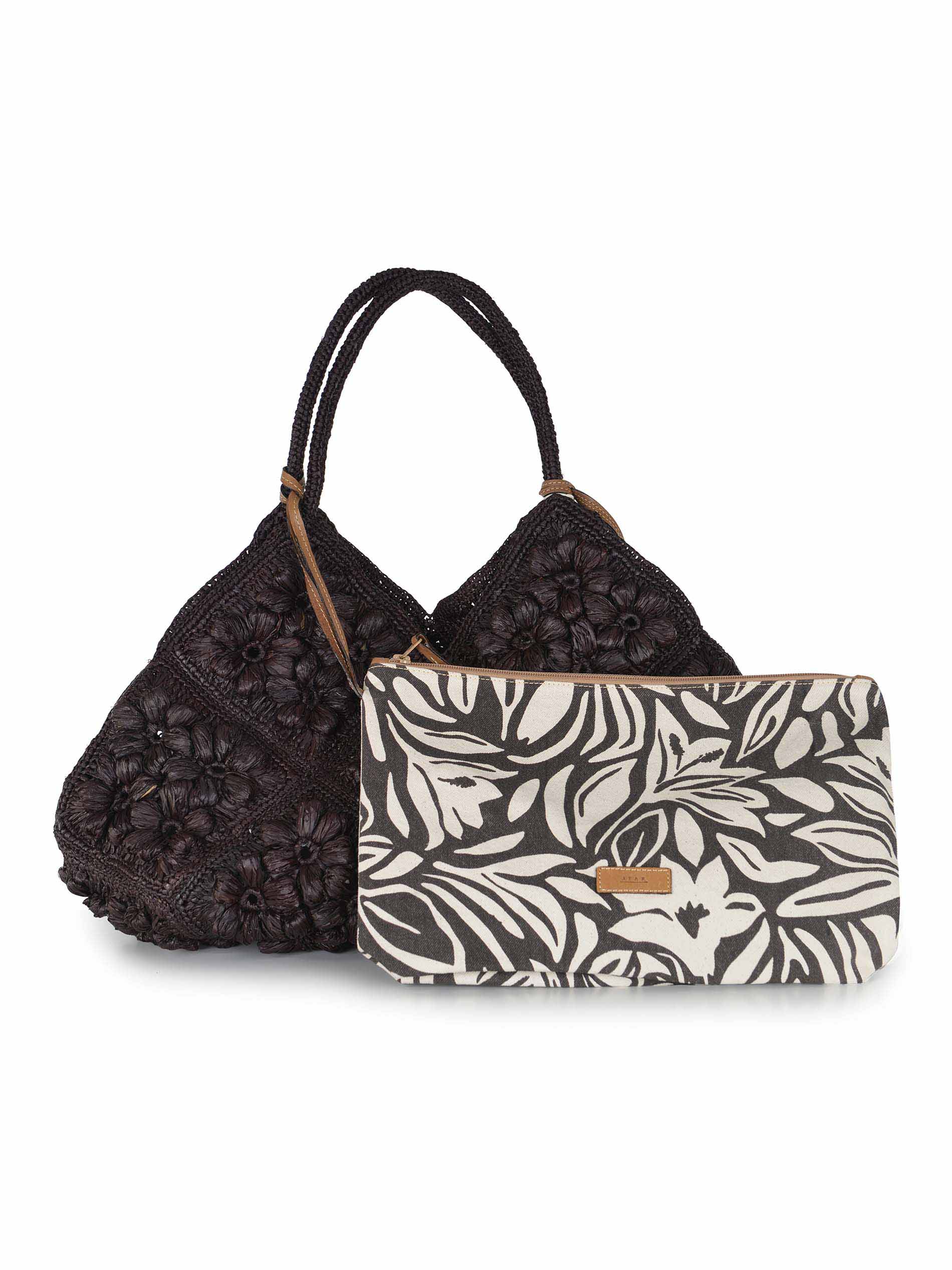Borsa Afar realizzata in rafia di colore Testa di moro.