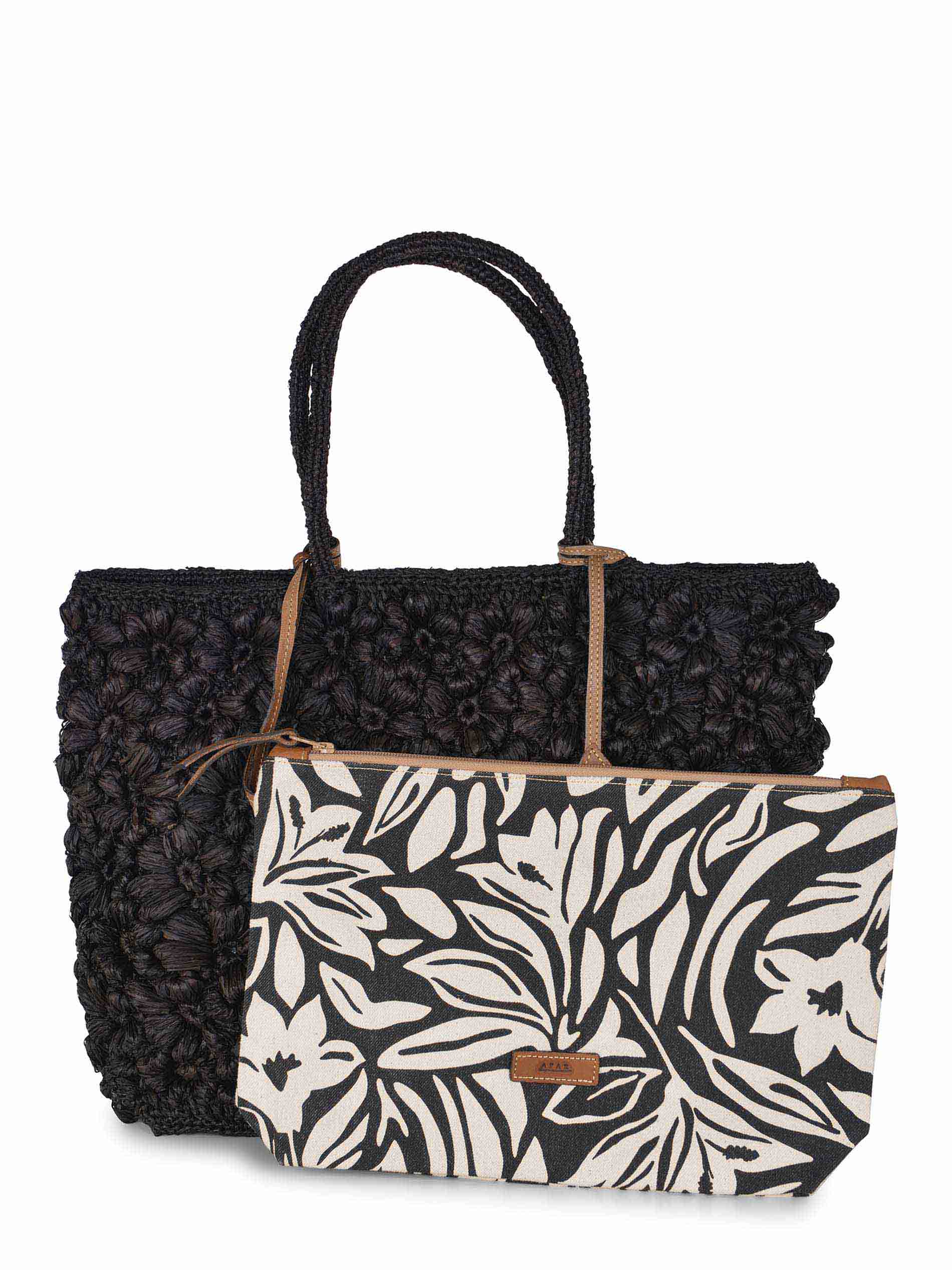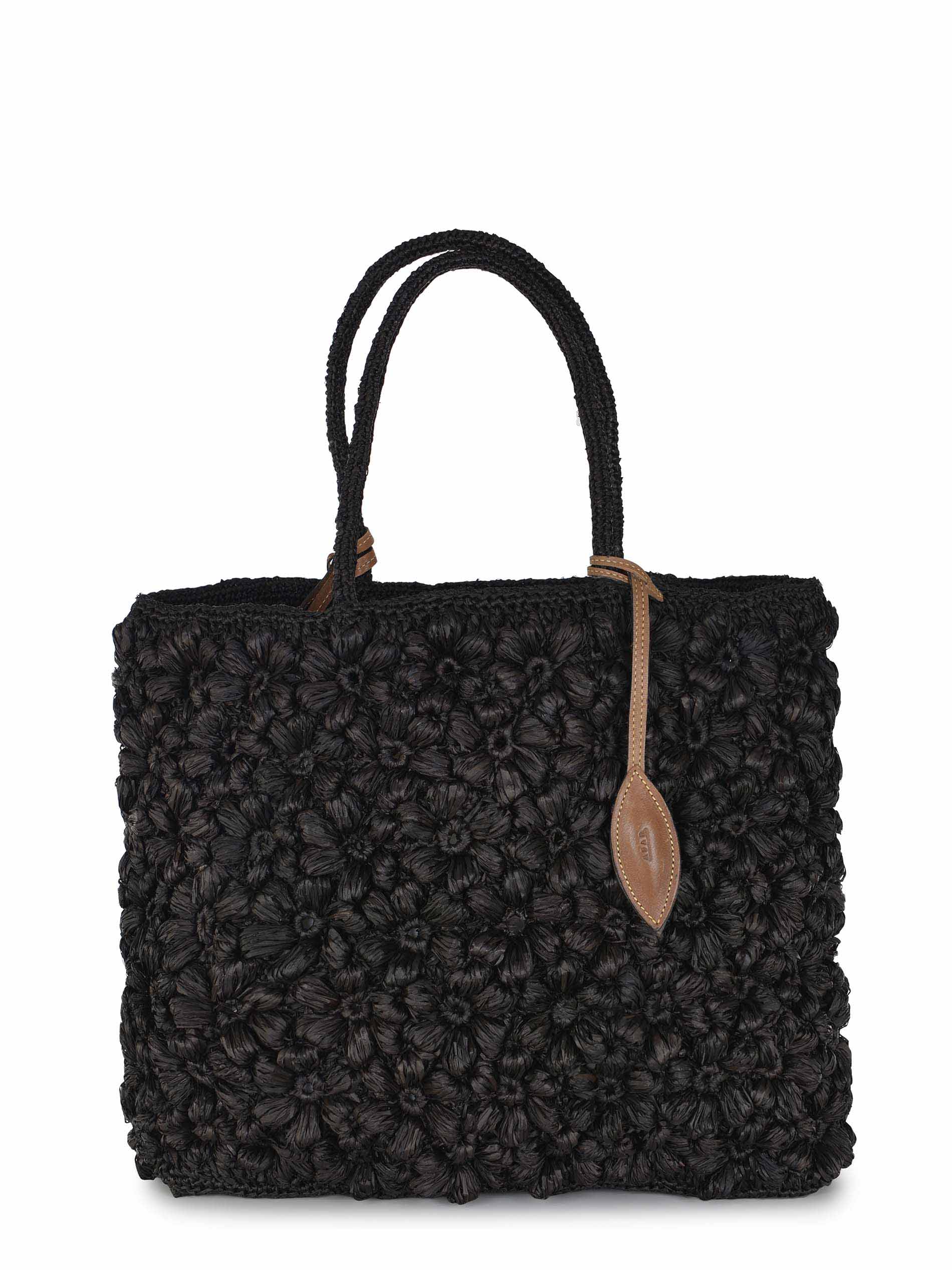 Borsa Afar realizzata in rafia di colore Nero.