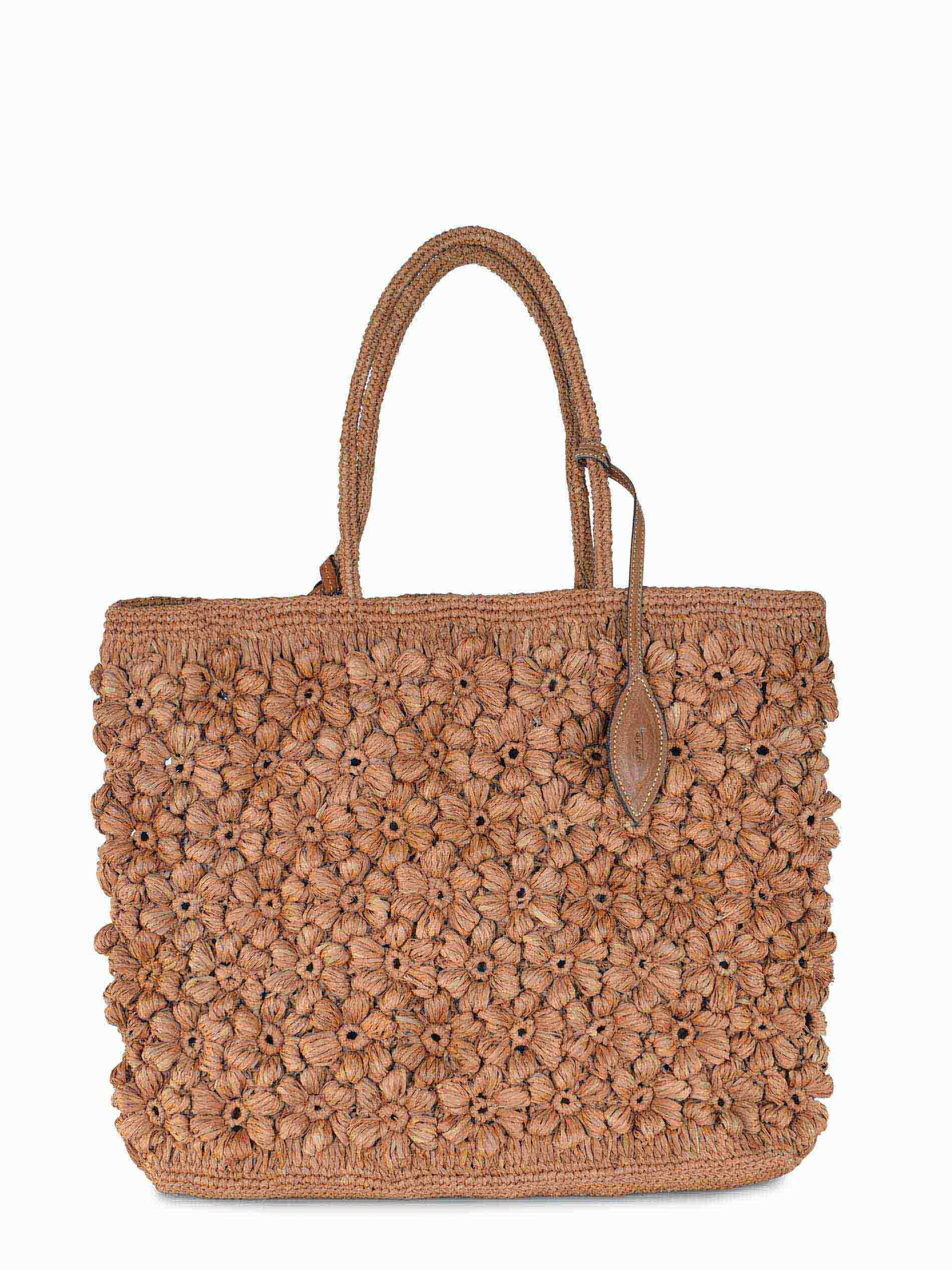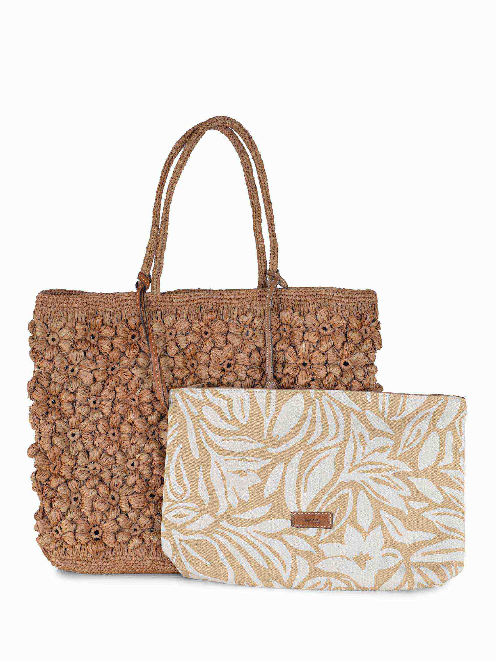 Borsa Afar realizzata in rafia di colore Cognac.