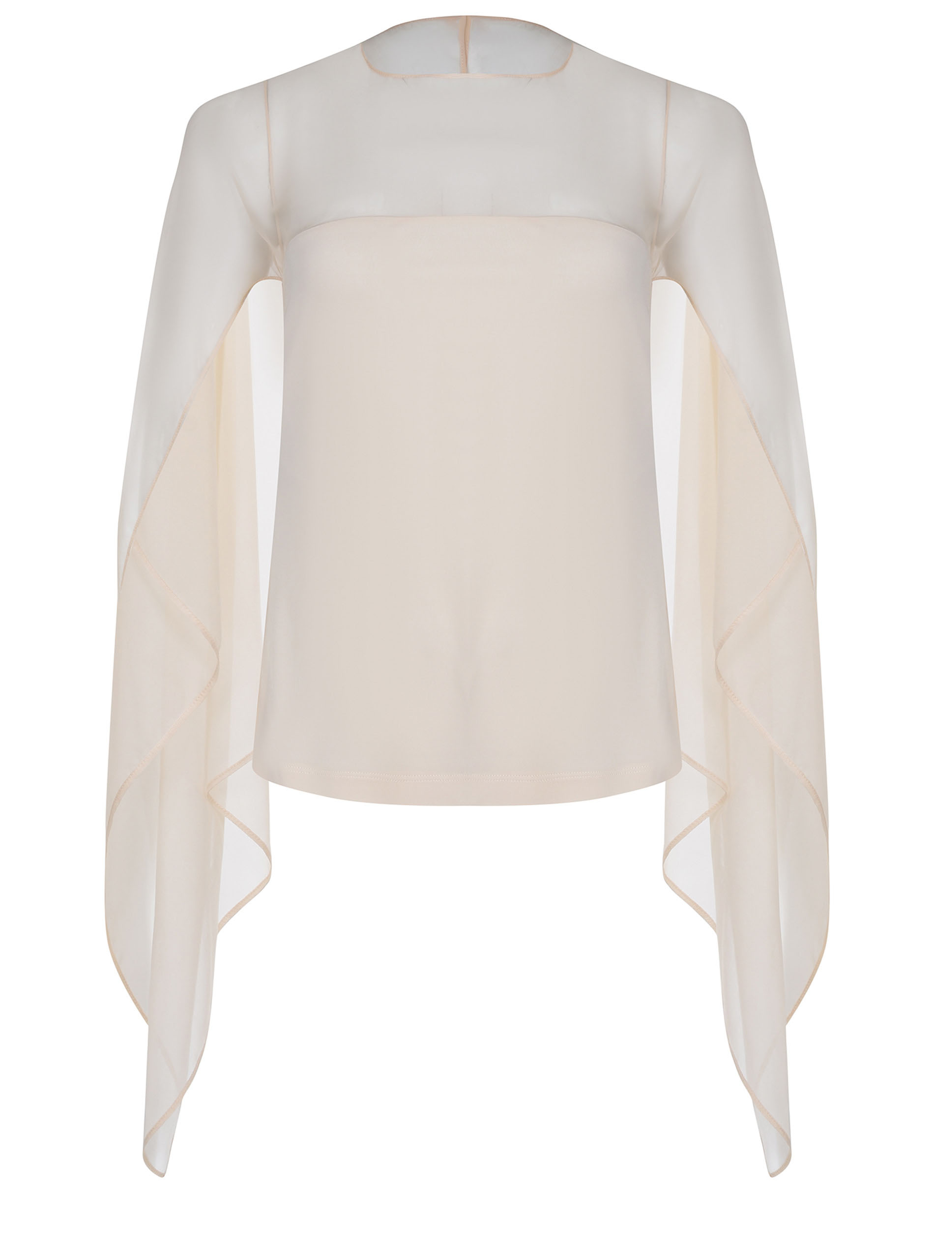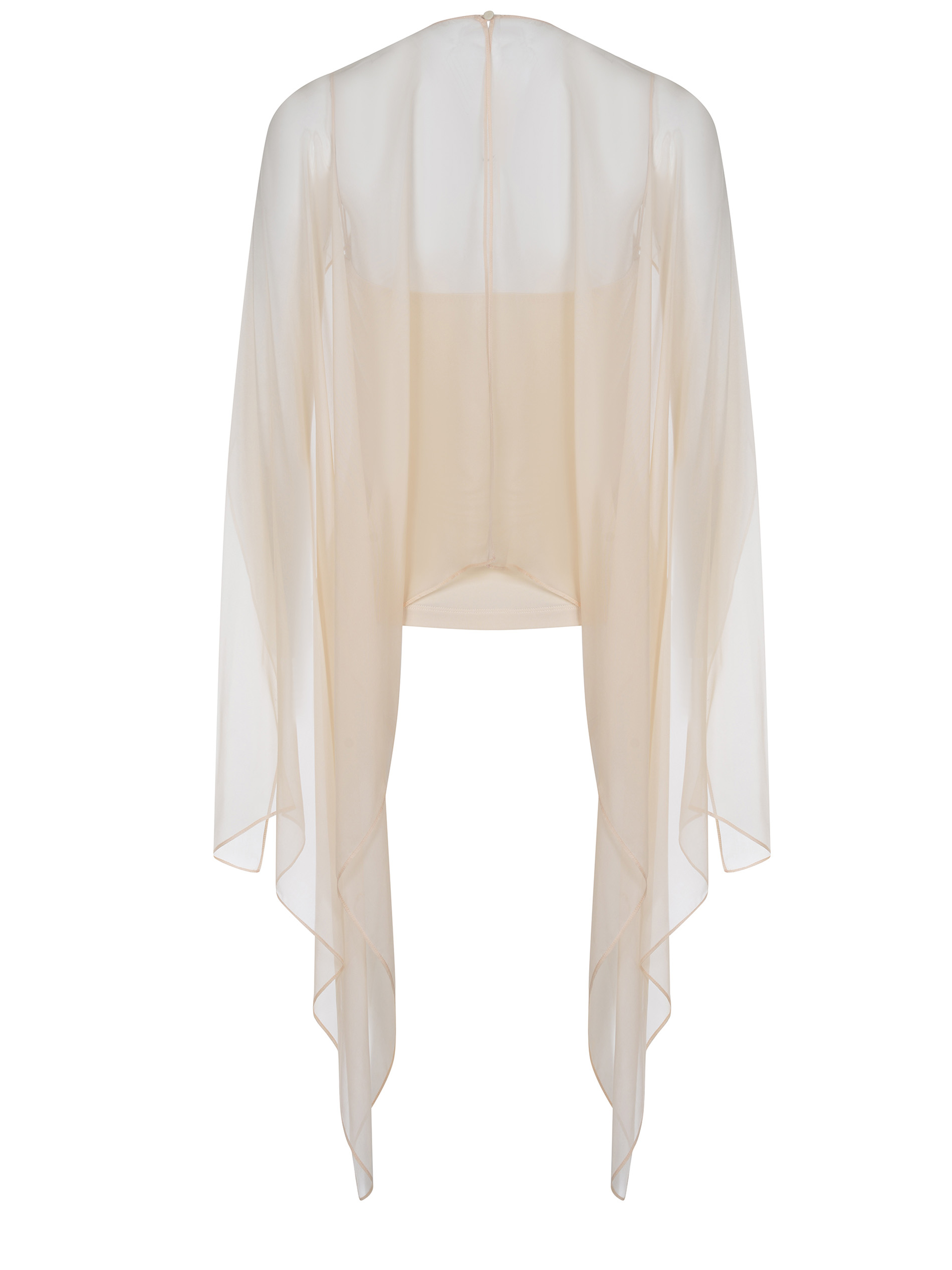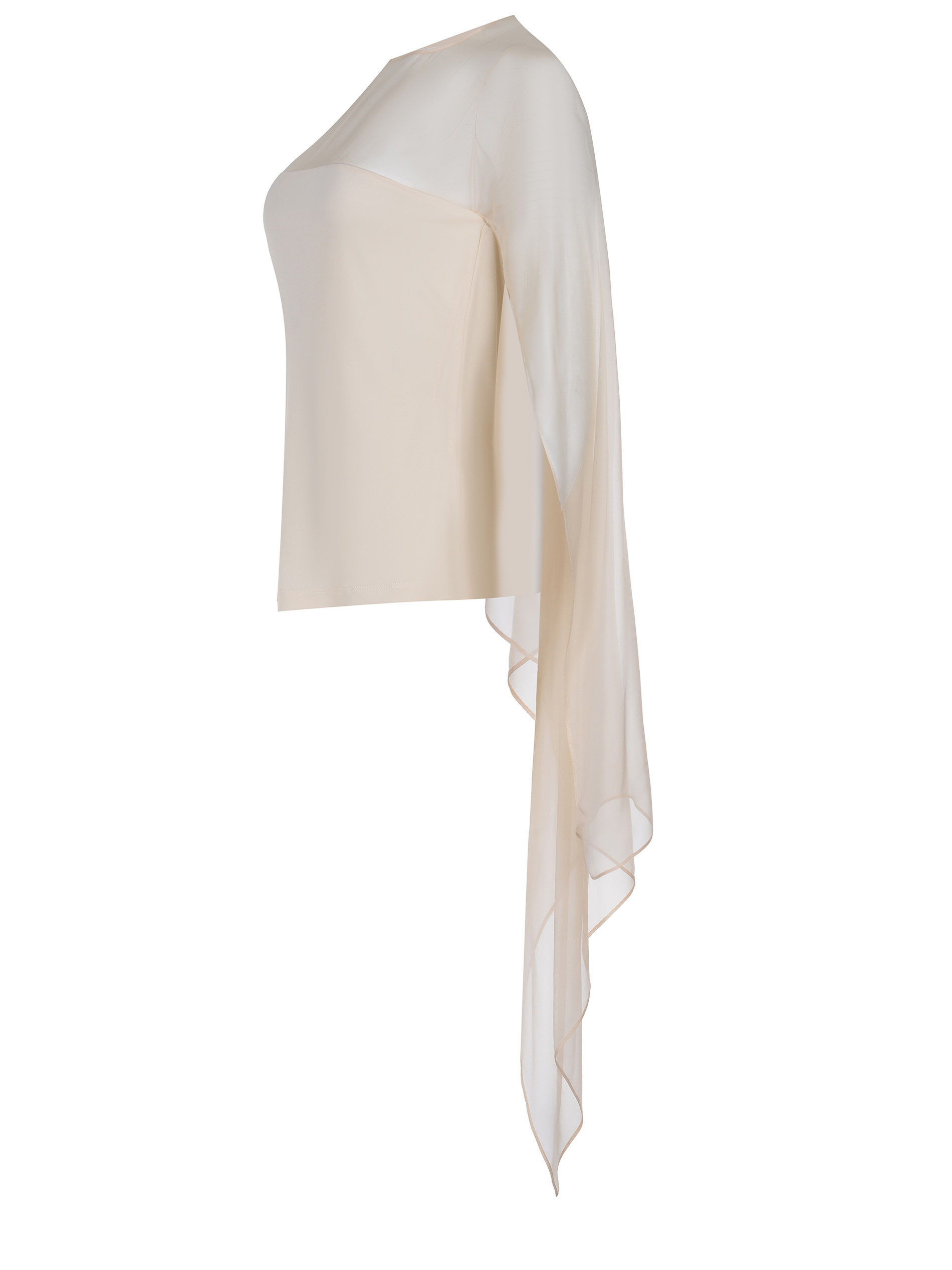 Maniche ampie in chiffon trasparenti asimmetriche sul retro.