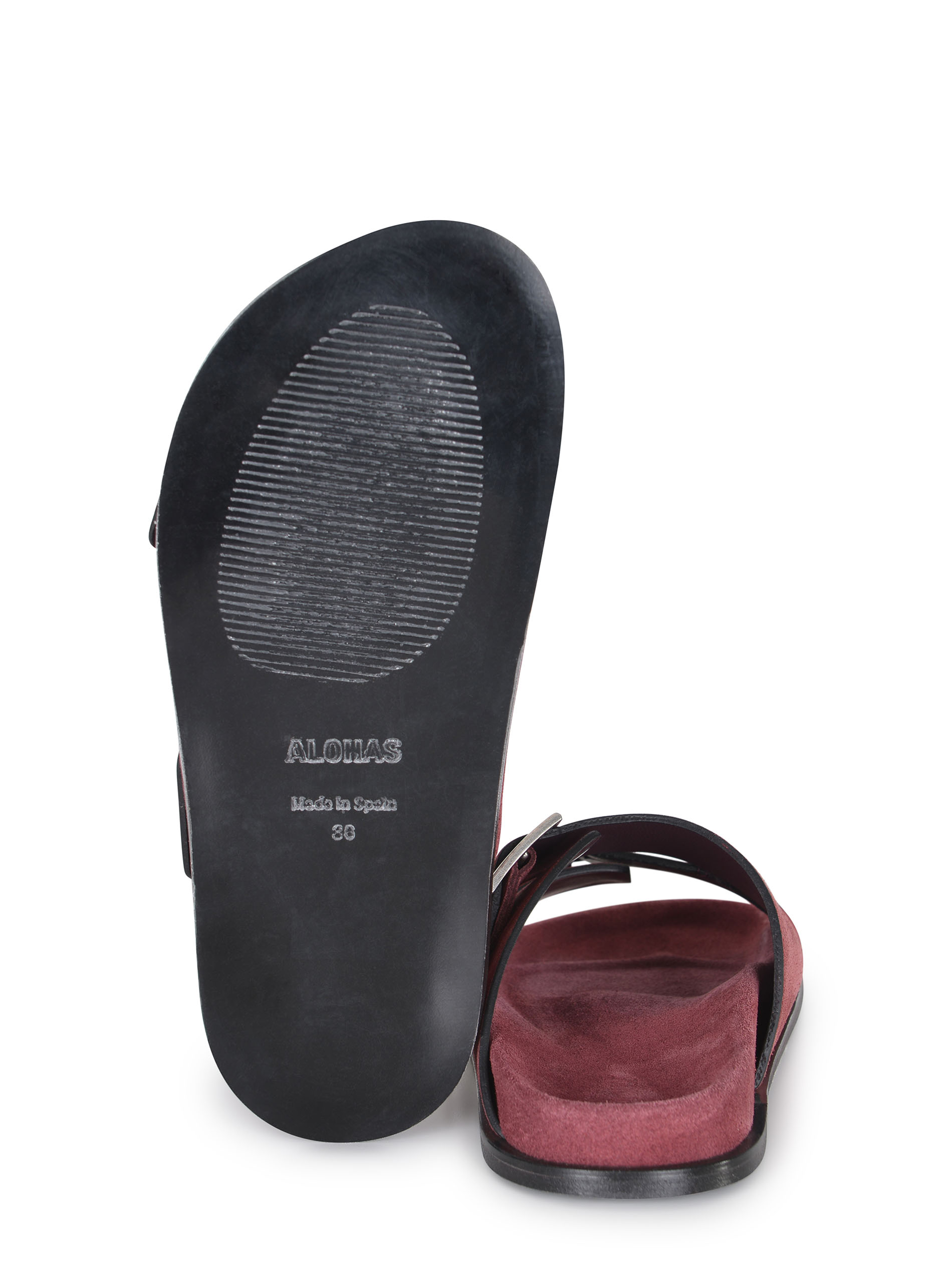 Sandali Alohas realizzati in pelle scamosciata di colore Bordeaux.