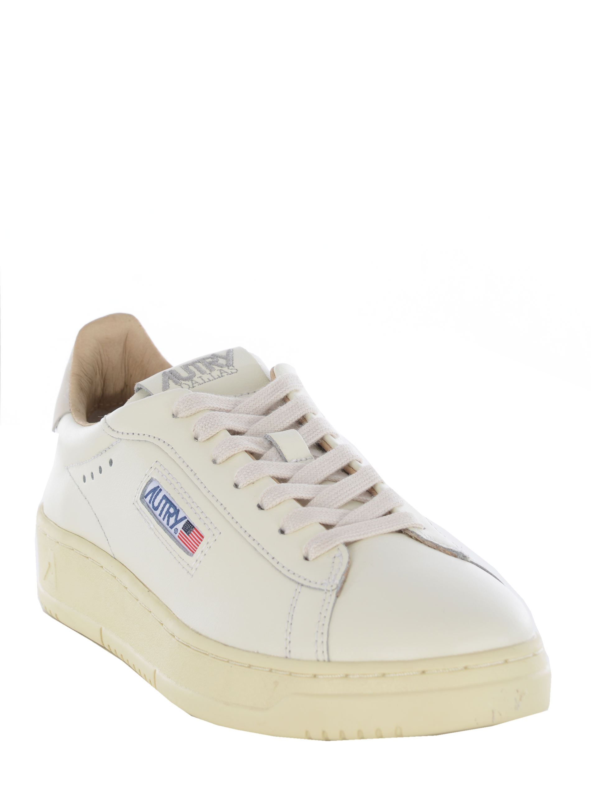 Sneakers Autry "Dallas Low" realizzata in pelle di colore Off White. Collarino imbottito. Punta tonda. Patch logo applicato sulla linguetta. Stringata.