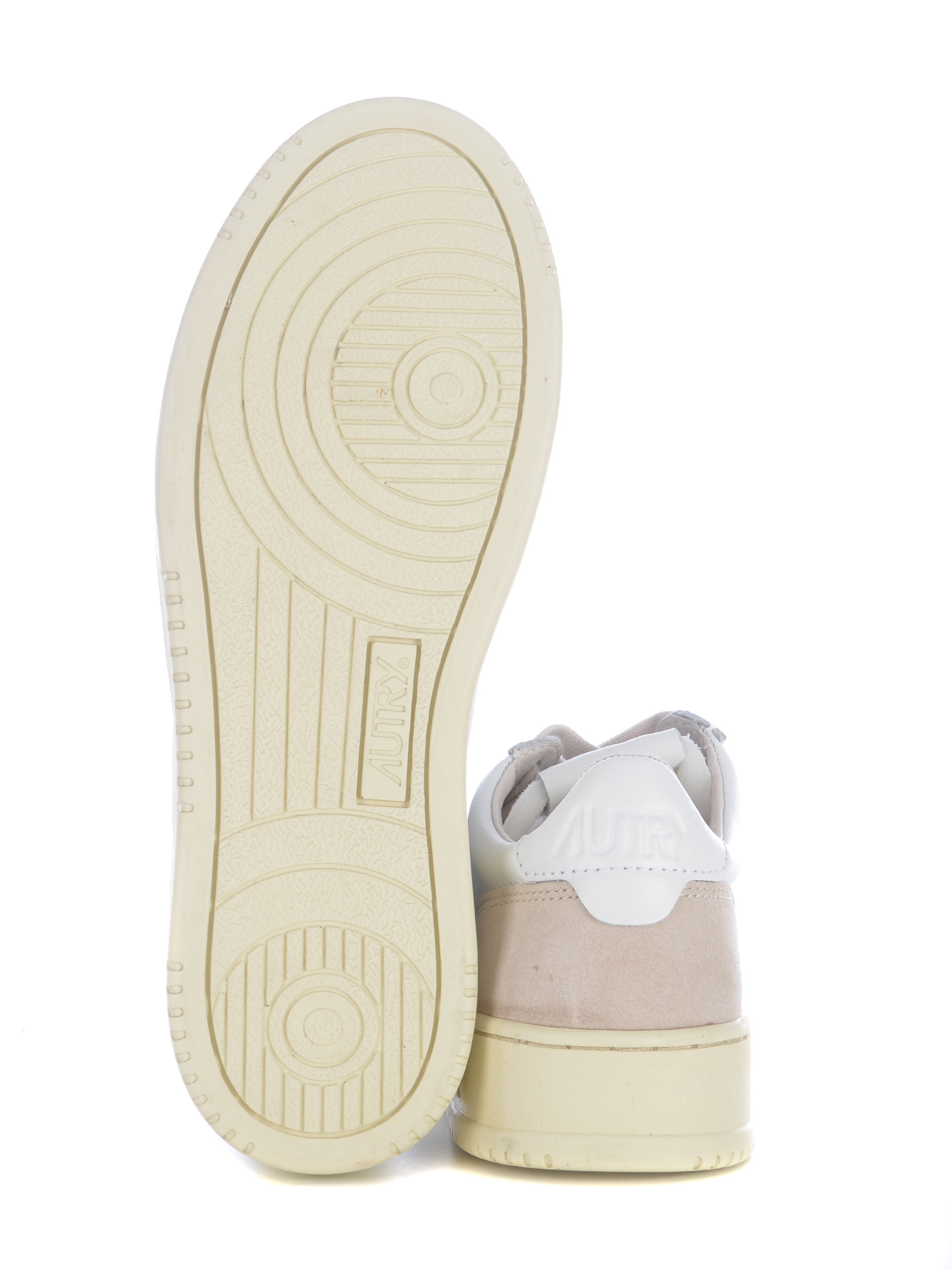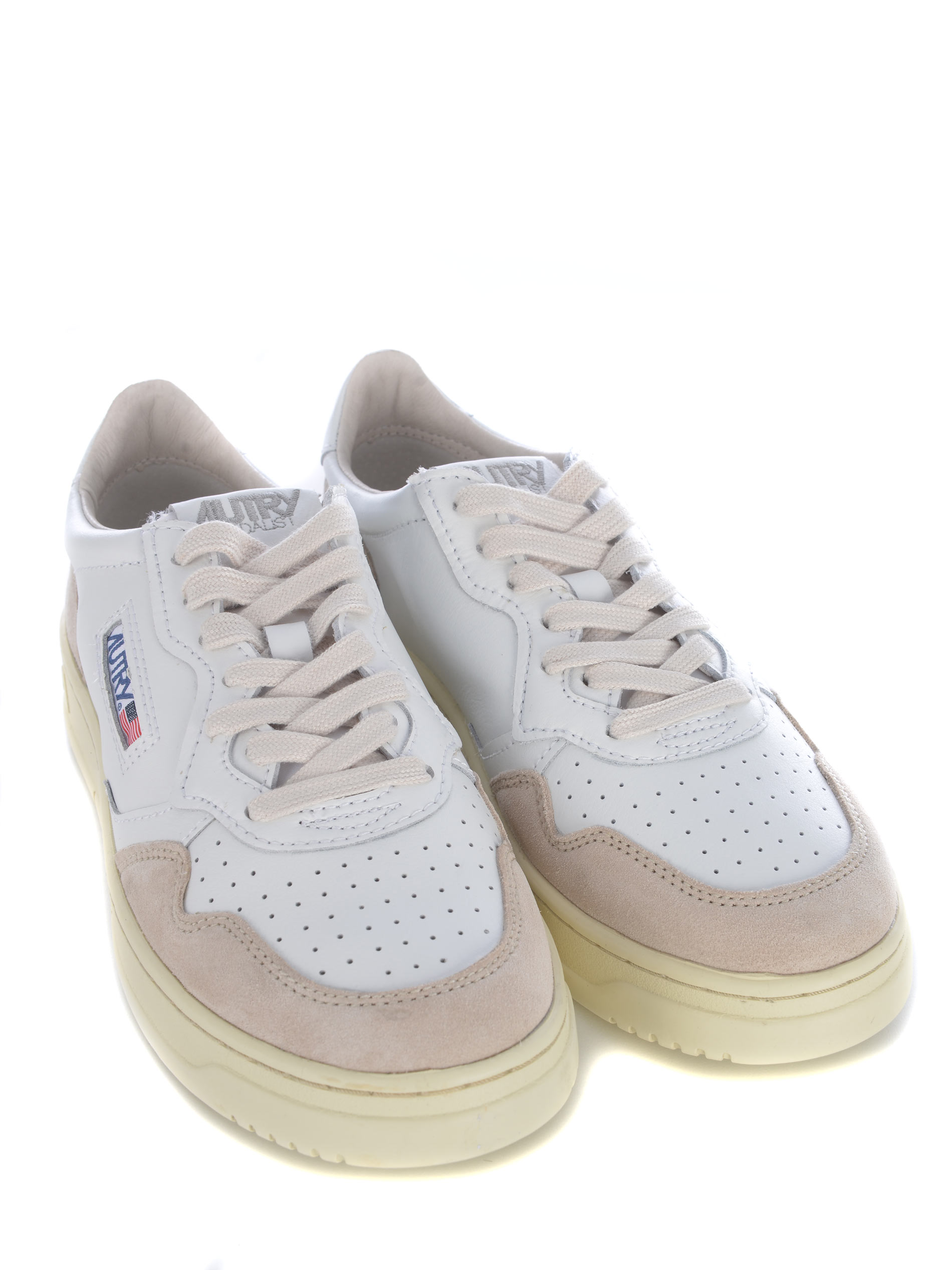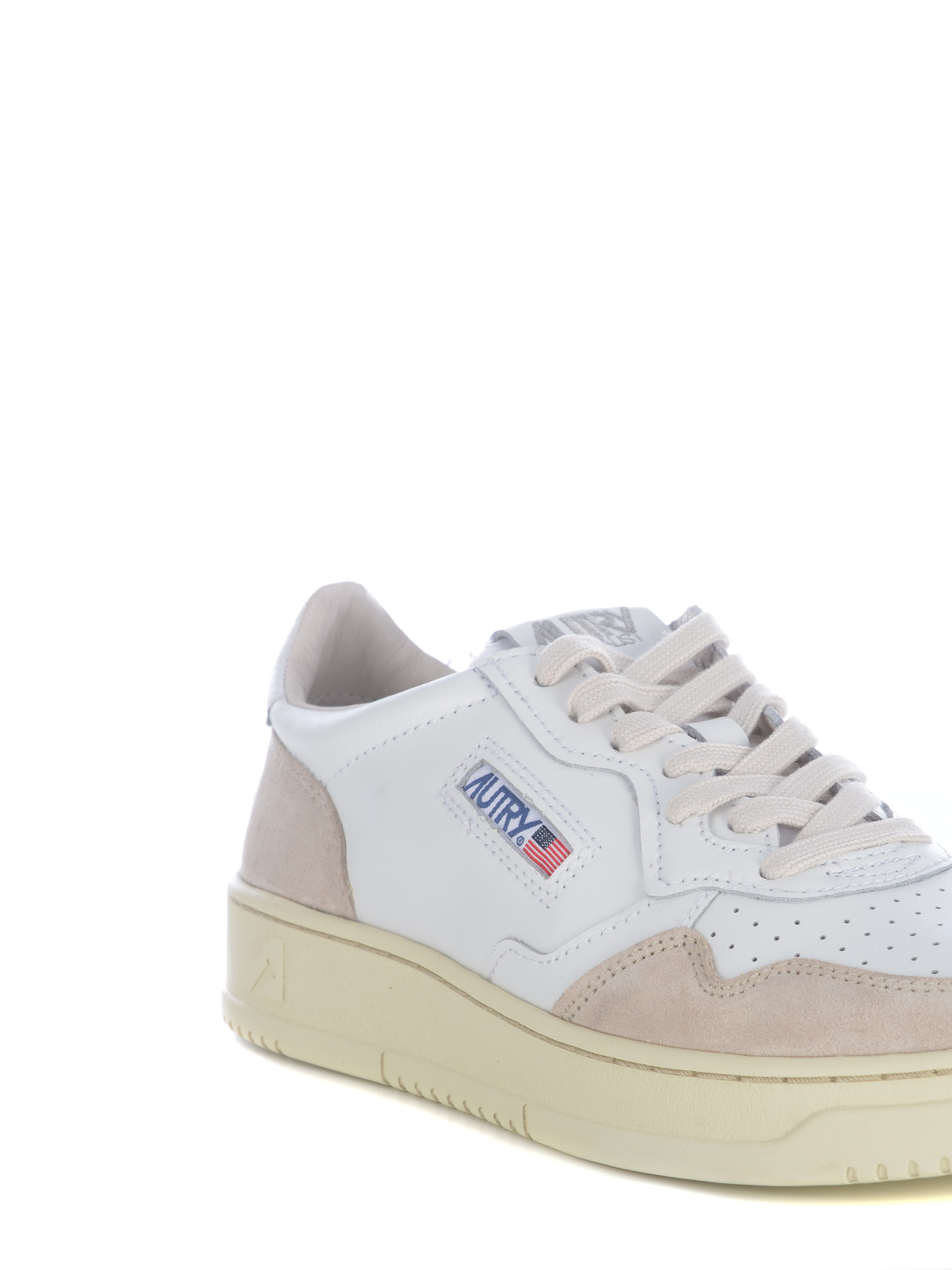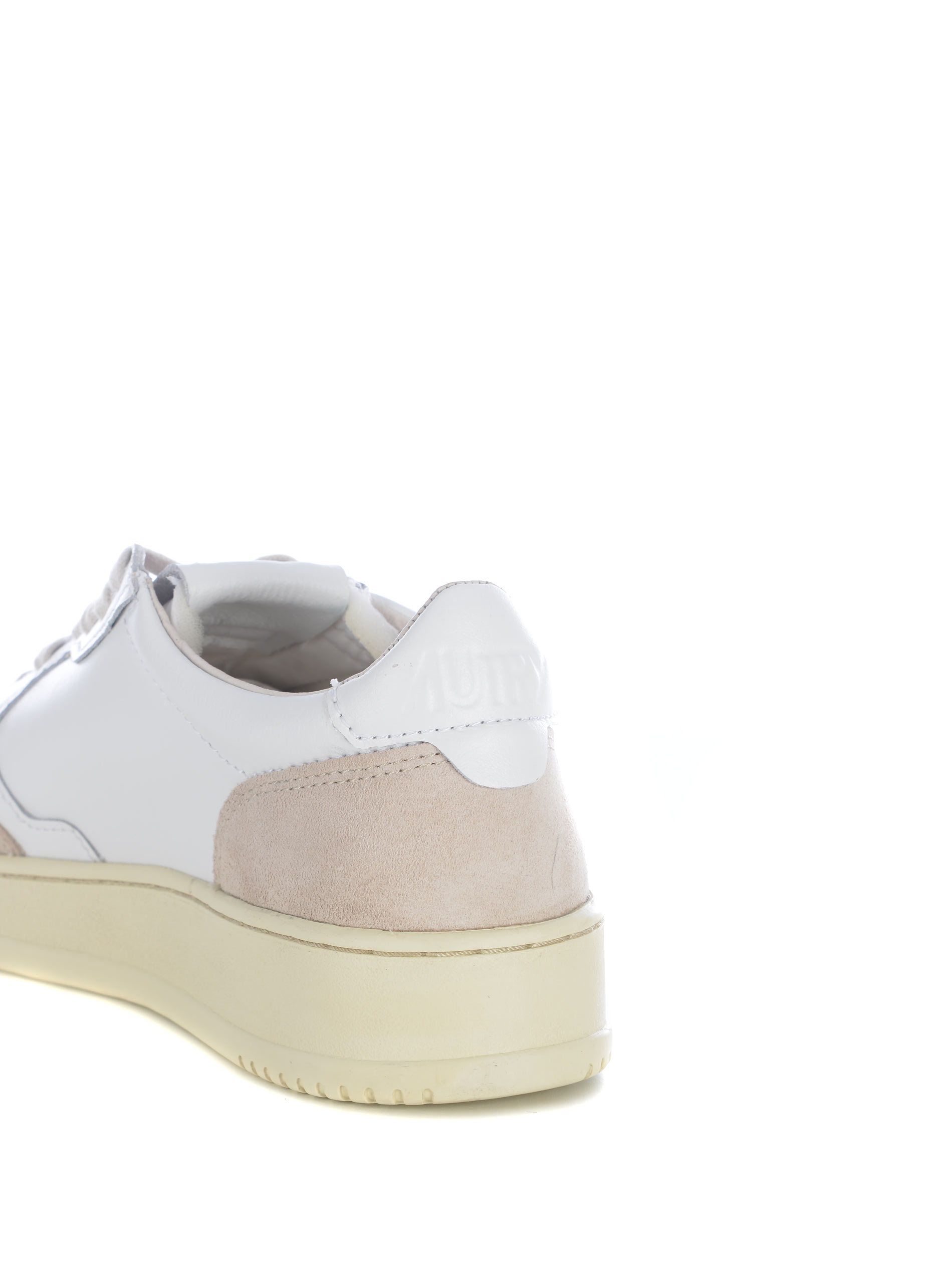 Sneakers Autry "Medalist Low" realizzata in pelle di colore Bianco. Inserti in pelle scamosciata.