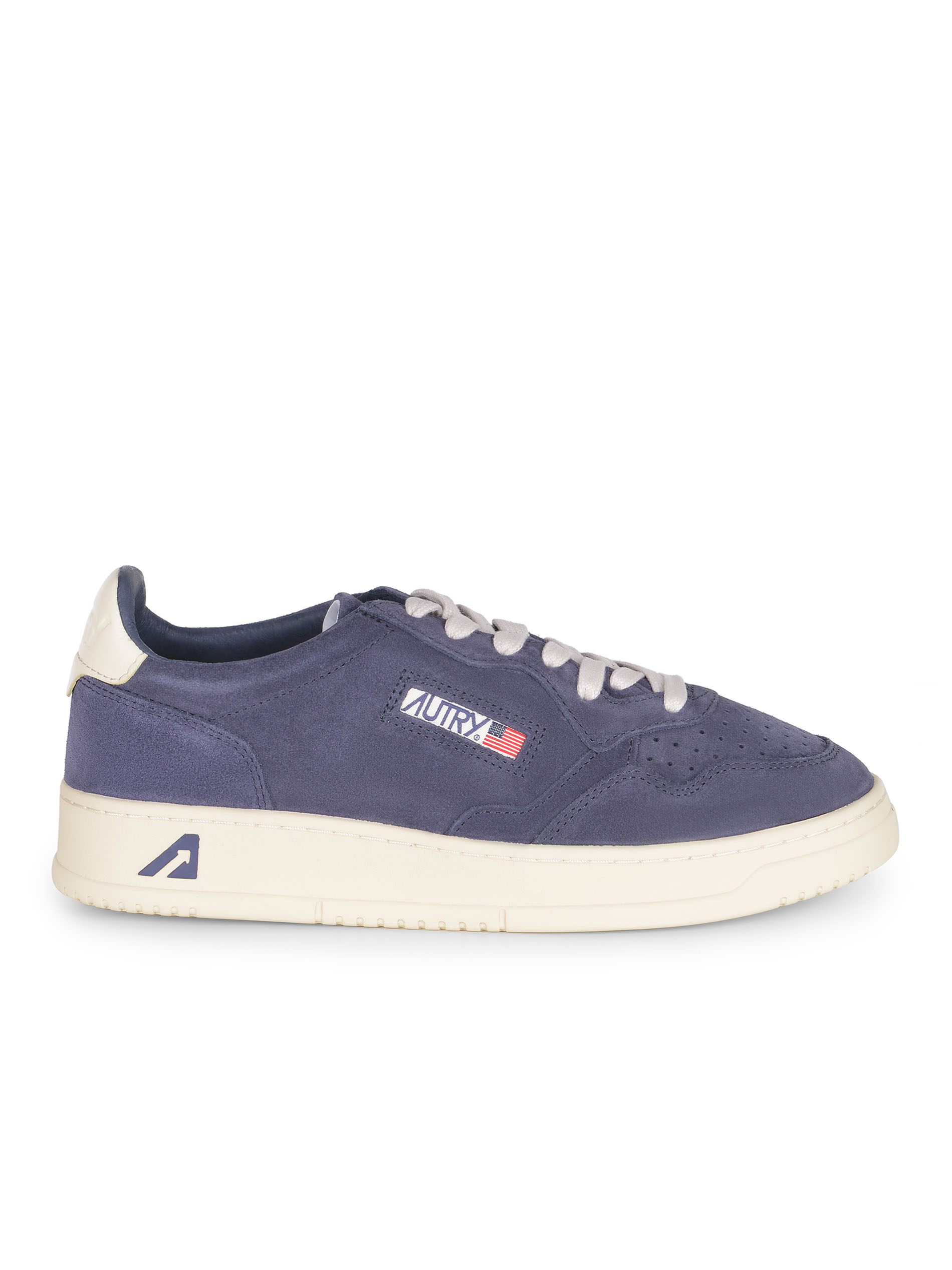 Sneakers Autry "Medalist Low" realizzata in pelle scamosciata di colore Blu notte.