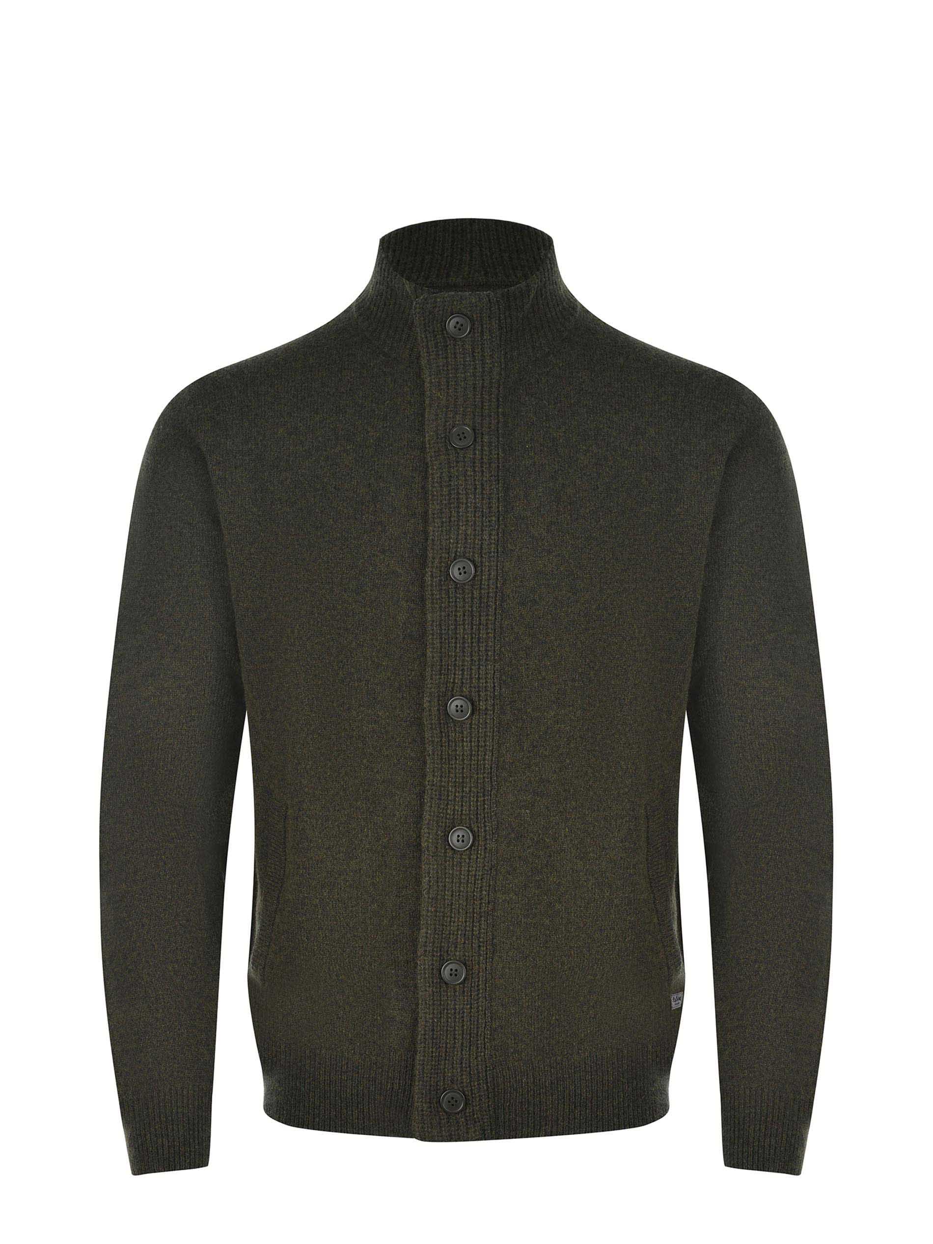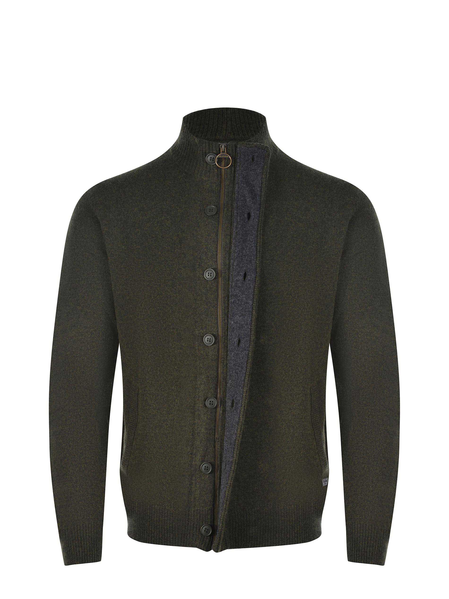 Cradigan Barbour in lana Verde militare. Collo alto.