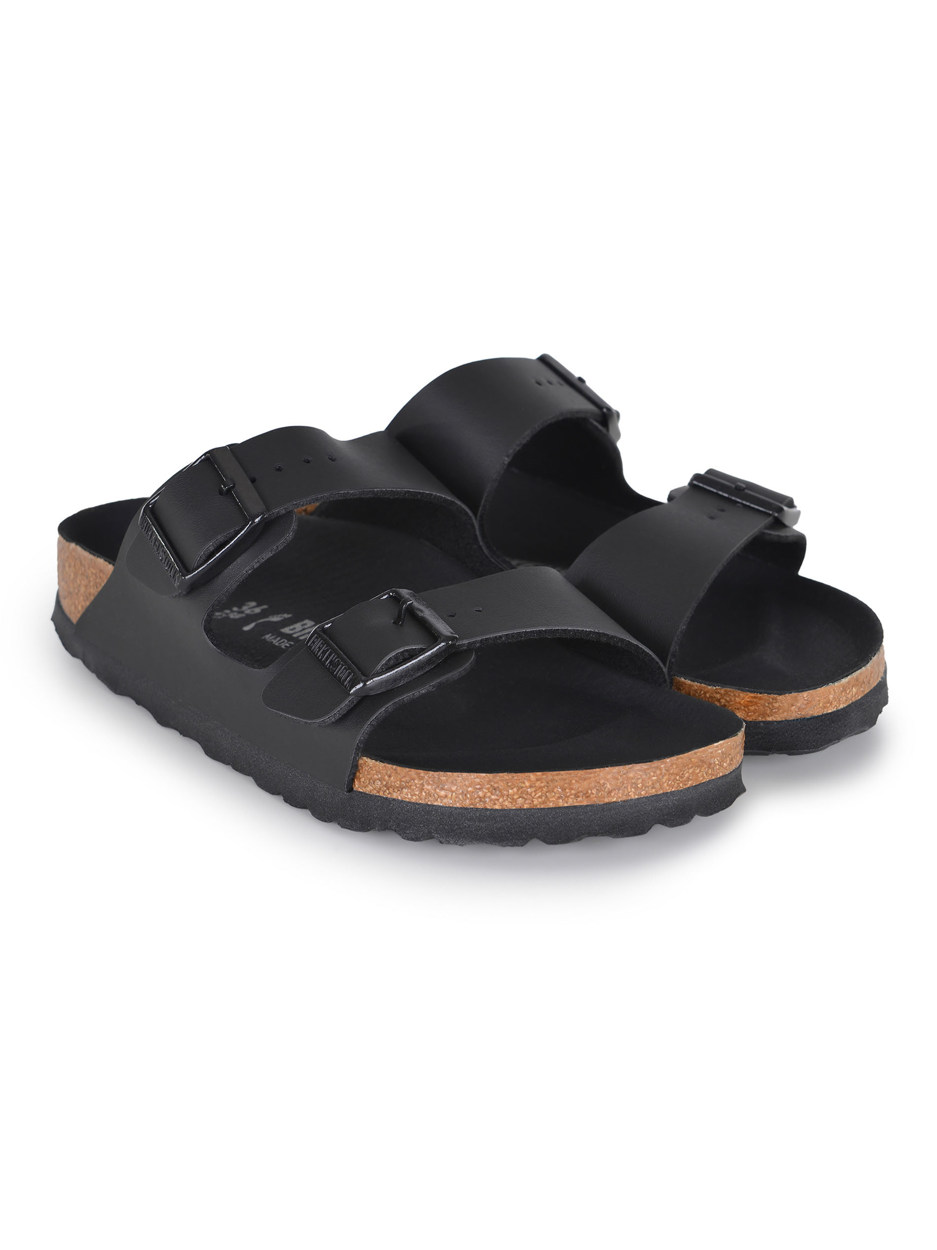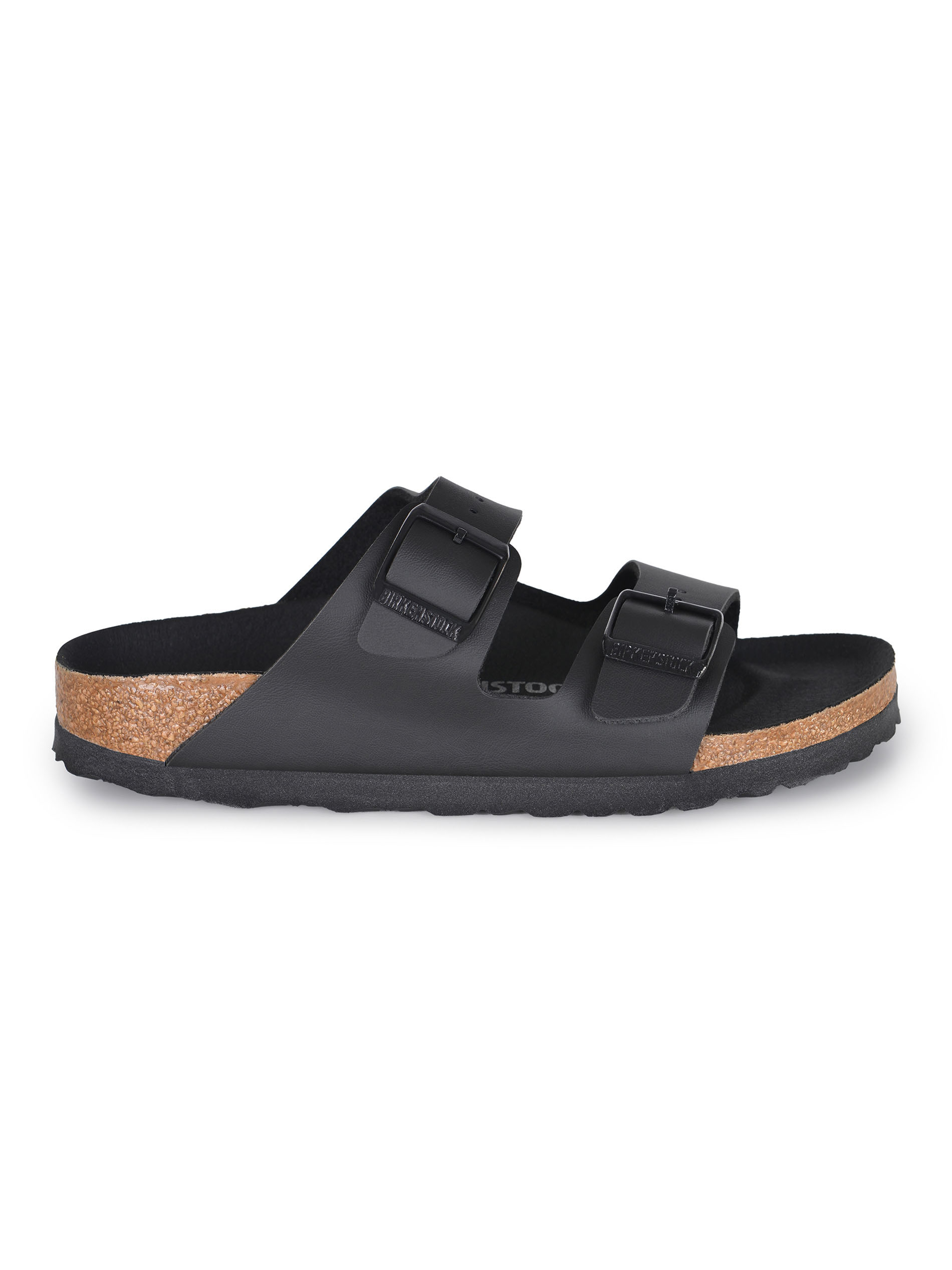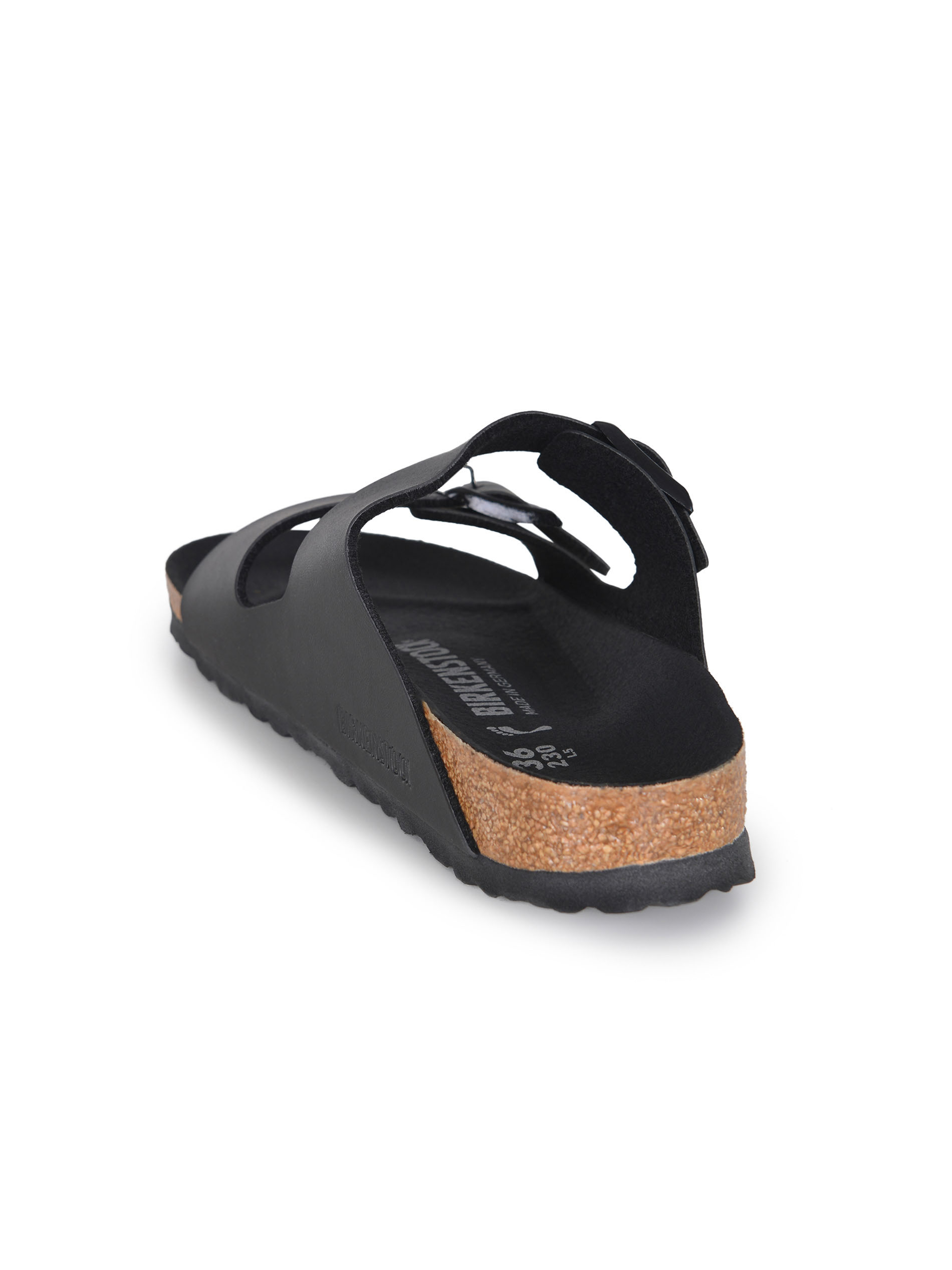 Pantofole Birkenstock "Arizona Triples" in eco pelle Birko-flor di colore Nero.