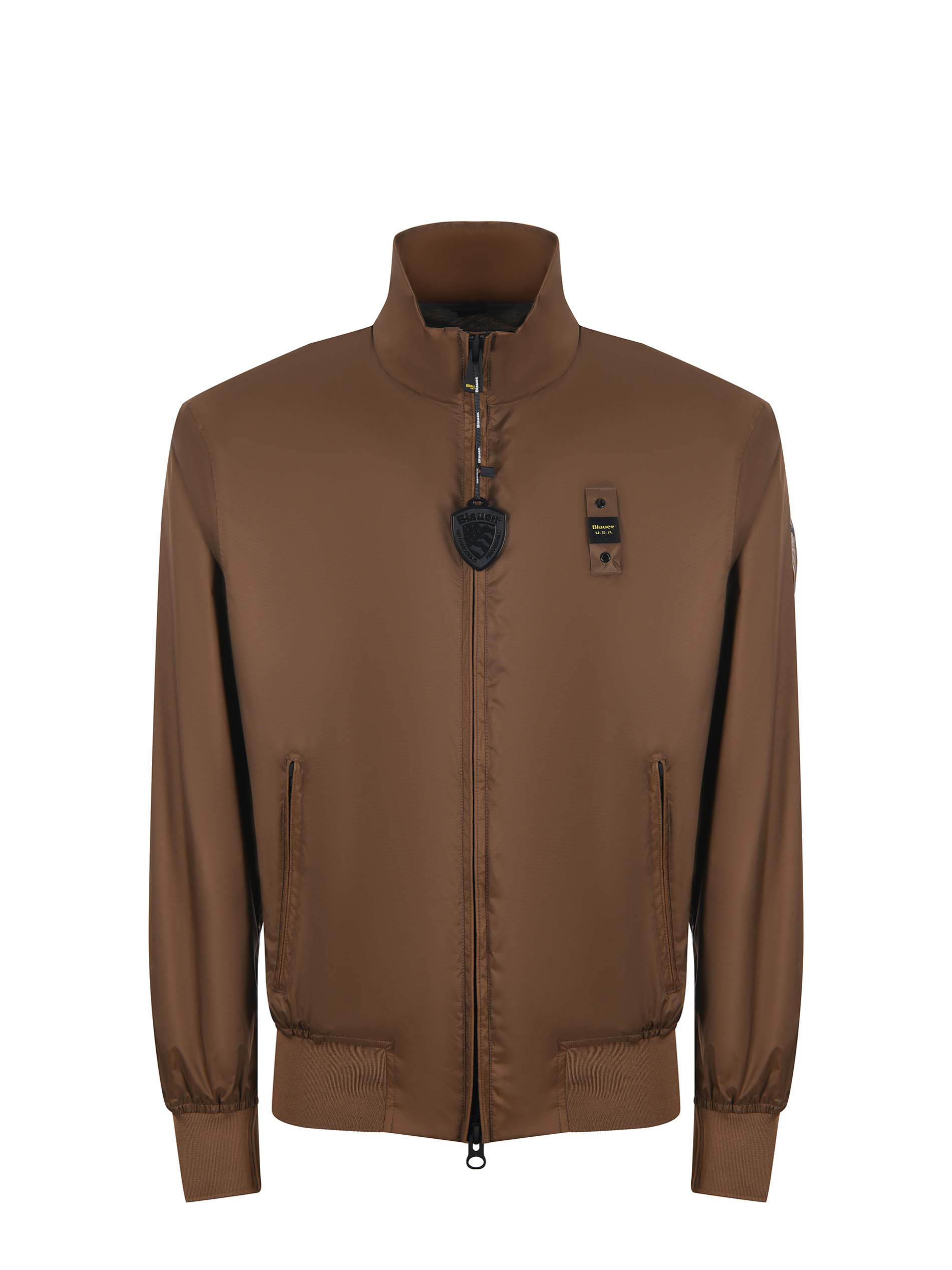 Giubbotto Blauer in nylon Marrone. Collo alto con interno in maglia a costine. Tasche con zip. Tasca interna. Polsi e fondo a costine. Chiusura con zip doppio cursore. Patch logo sulla manica sinistra. Fodera in maglina a contrasto.