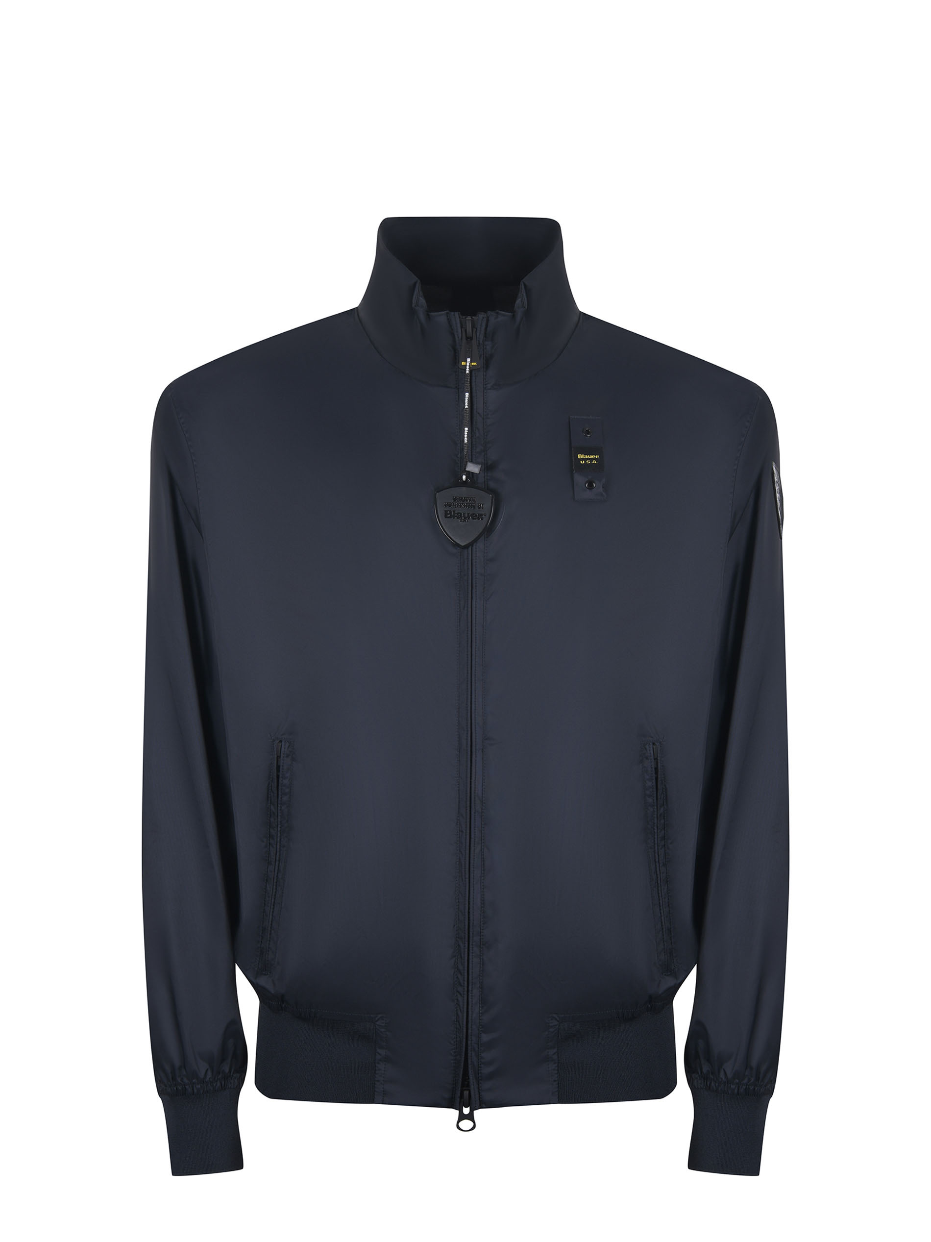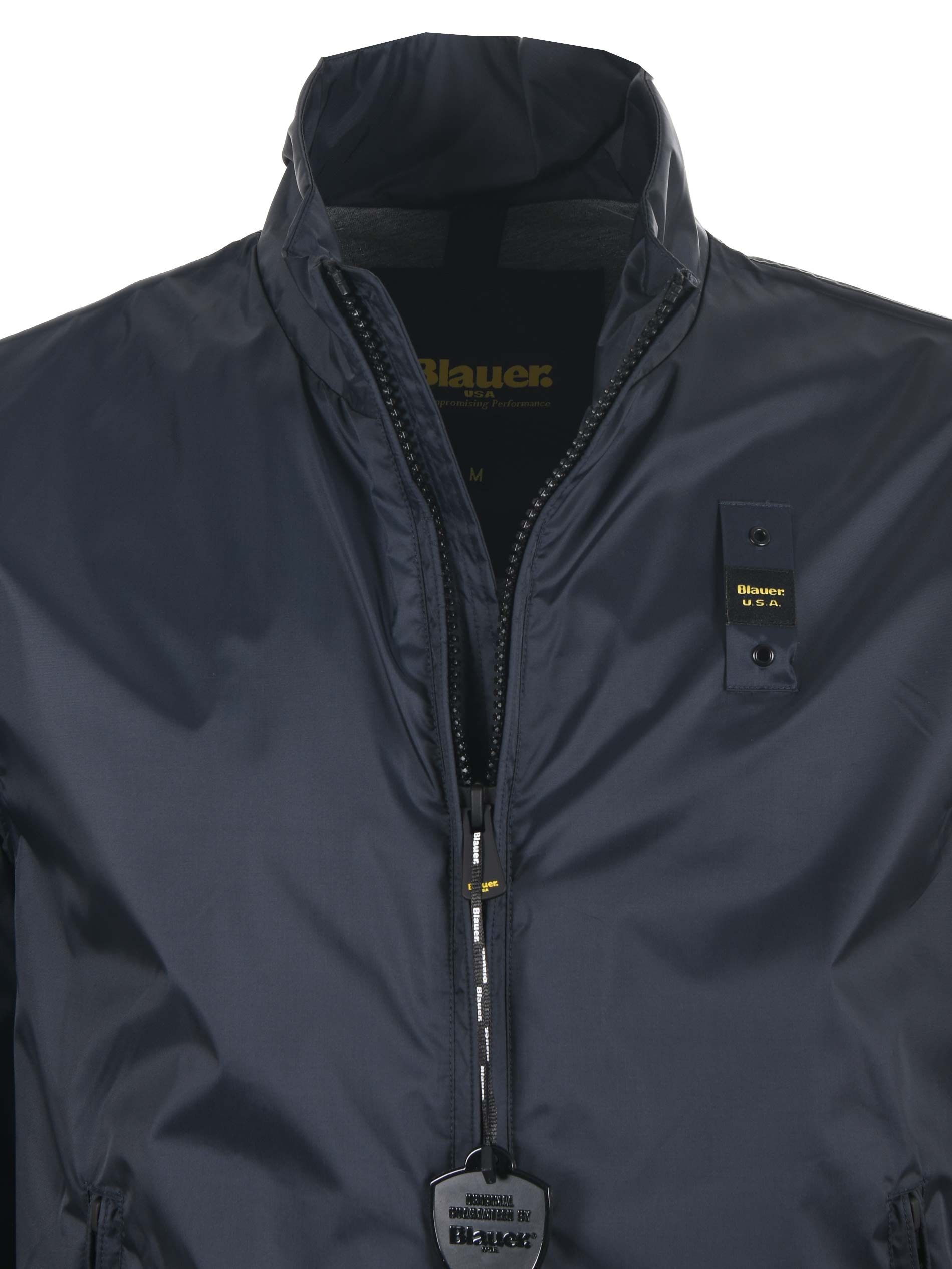 Giubbotto Blauer in nylon Blu scuro. Collo alto con interno in maglia a costine. Tasche con zip. Tasca interna. Polsi e fondo a costine. Chiusura con zip doppio cursore. Patch logo sulla manica sinistra. Fodera in maglina a contrasto.