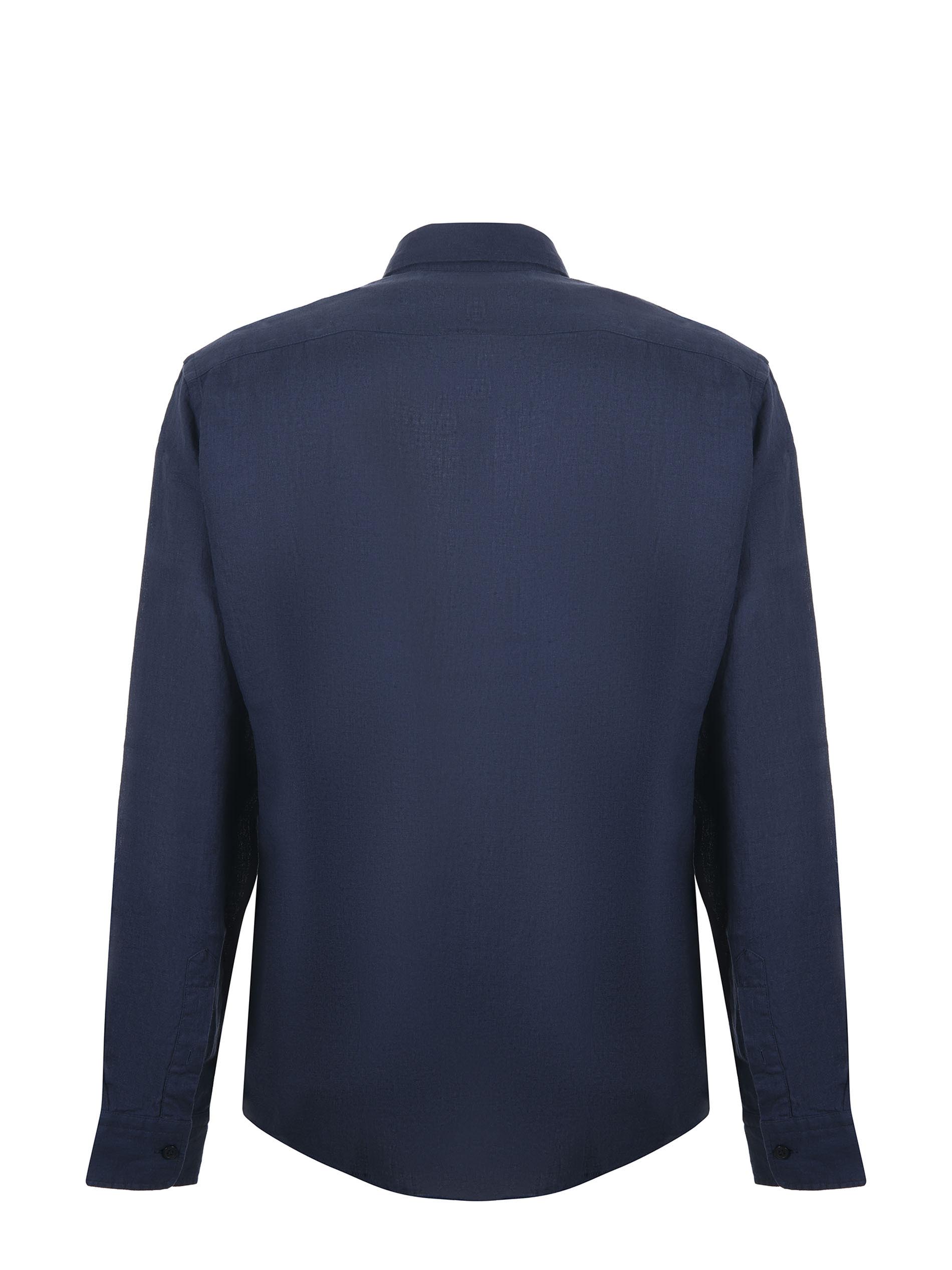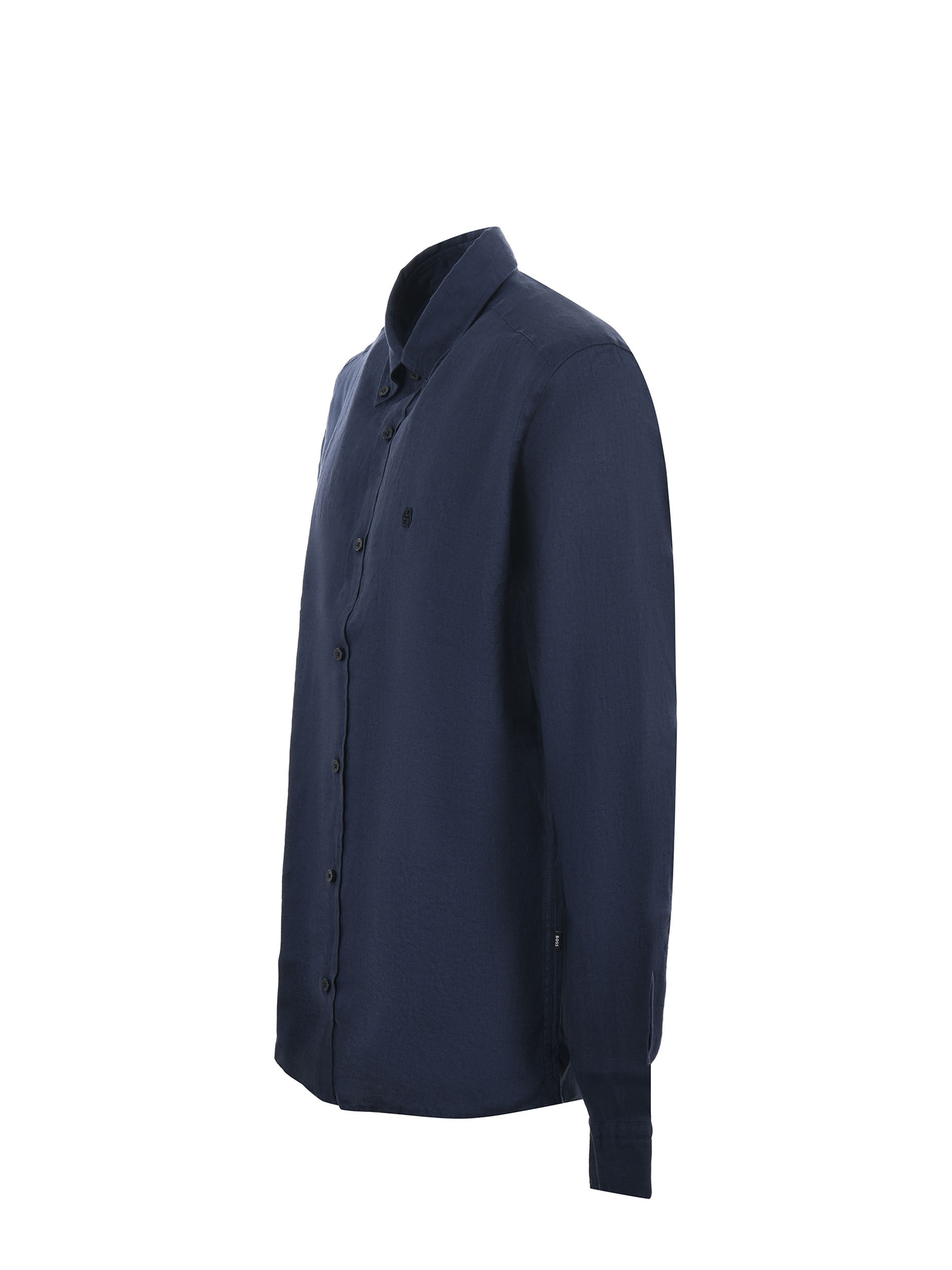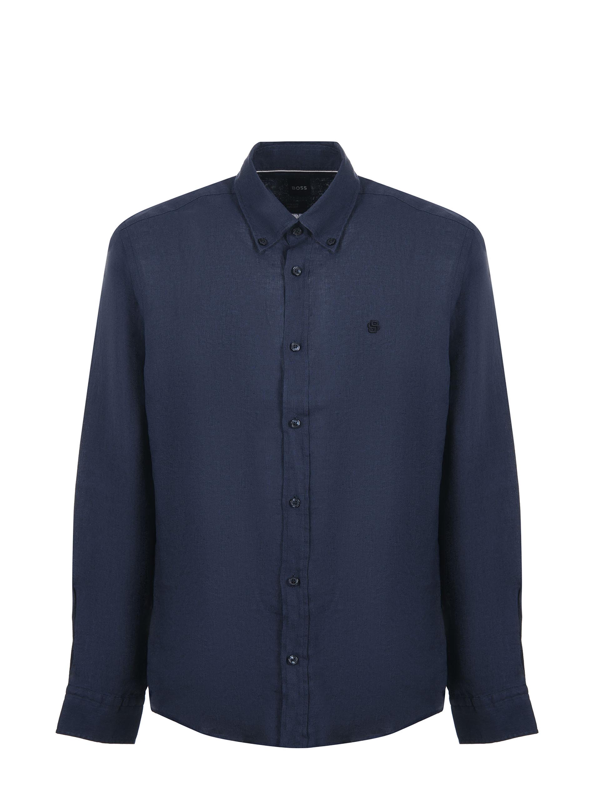 Camicia Boss in lino Blu scuro. Colletto classico. manica lunga. Polsi con bottone. Chiusura con bottoni. Regular fit.