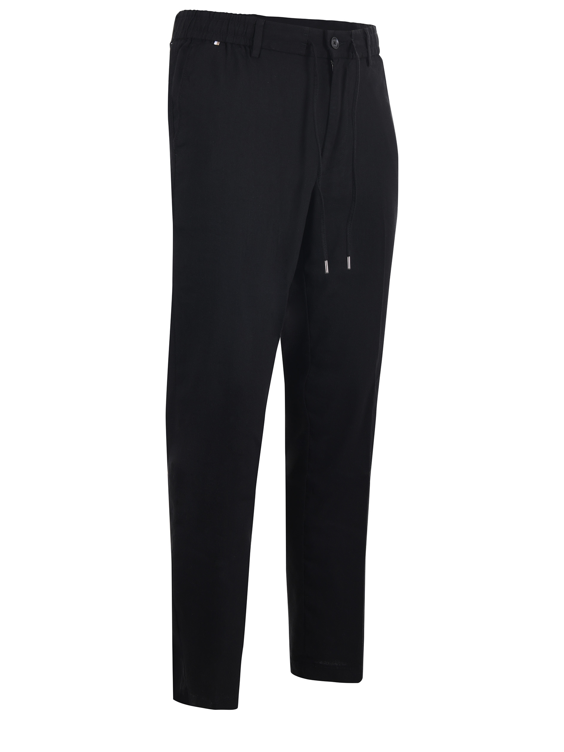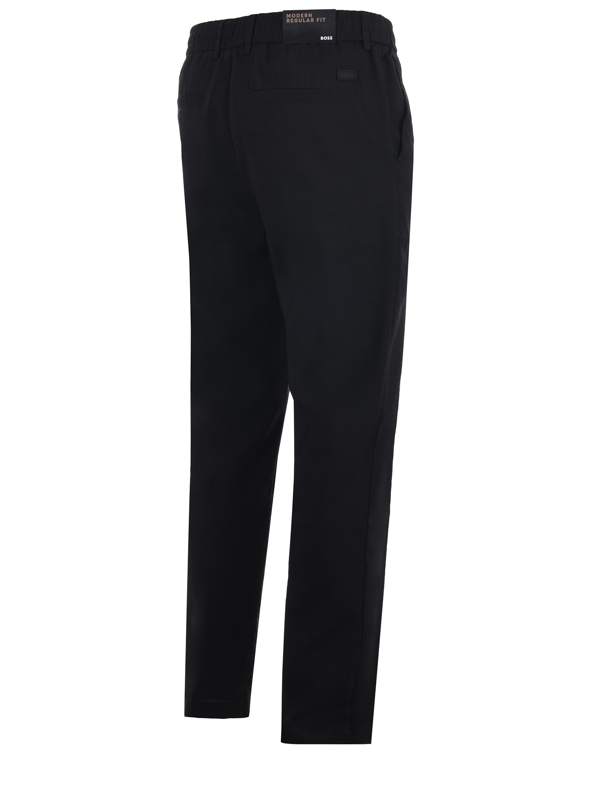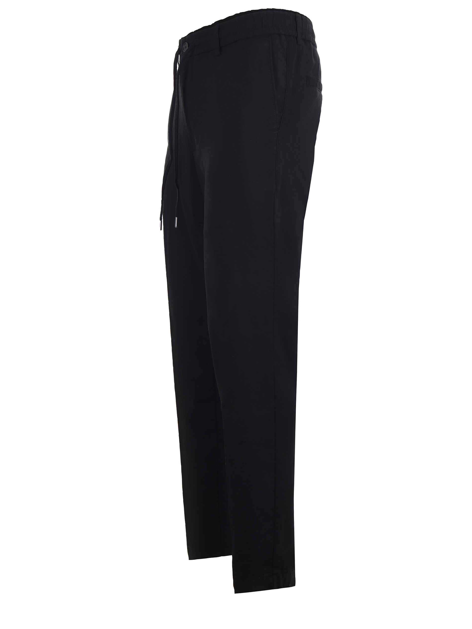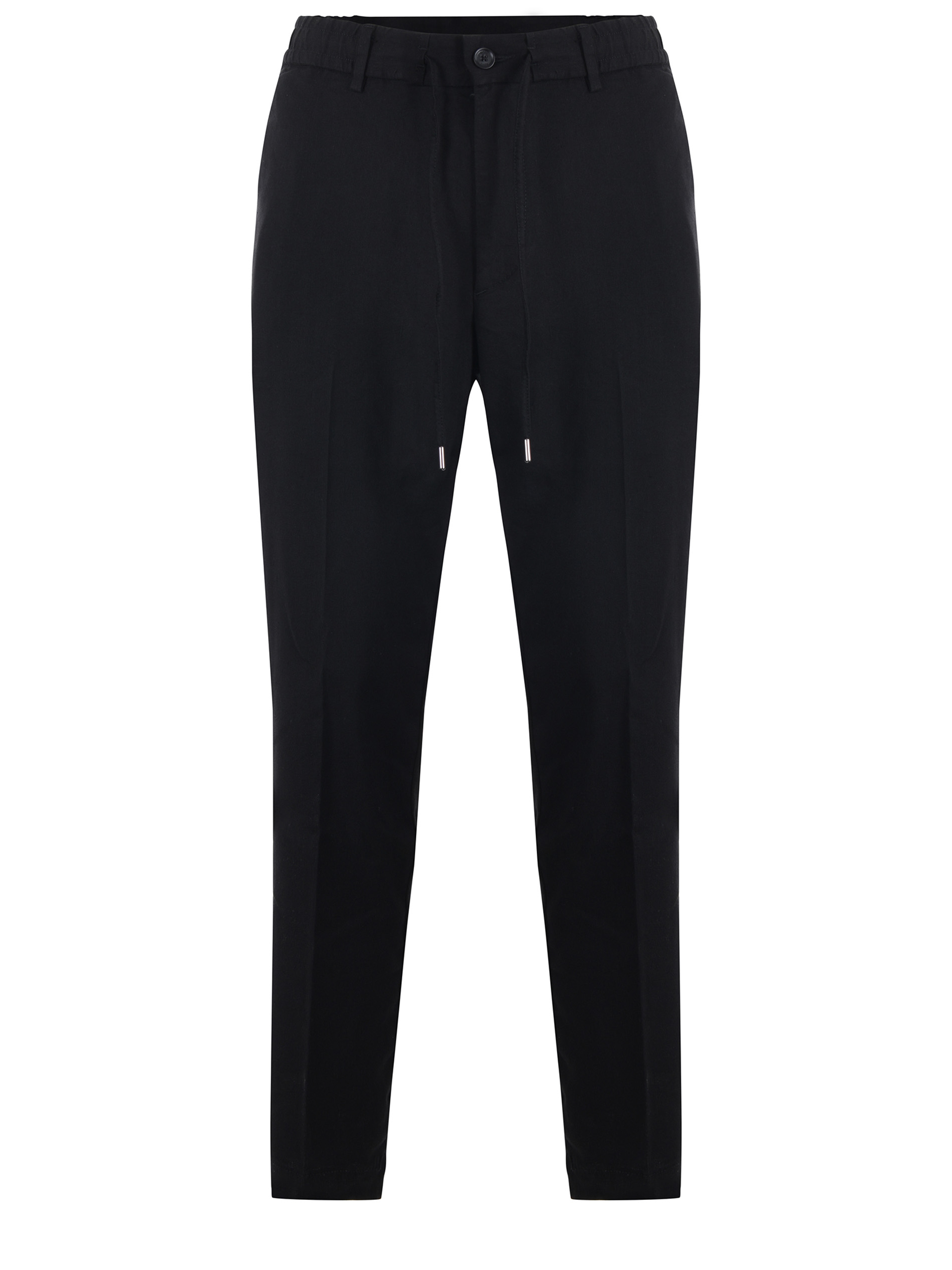 Pantaloni Boss in misto lino Nero. Elastico in vita con coulisse. Tasche america. Tasche a filo sul retro. Chiusura con zip e bottone.