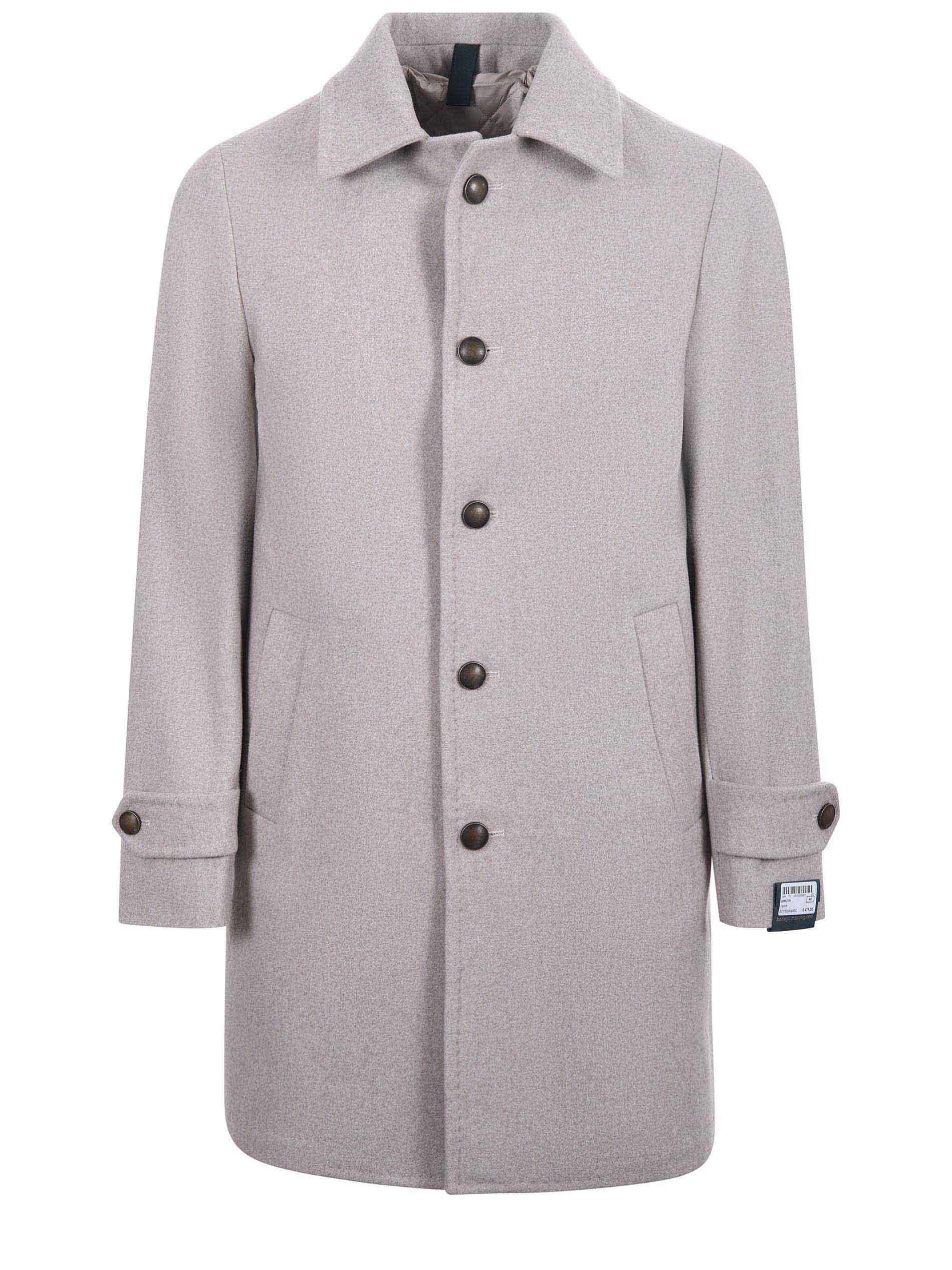 Cappotto Bottega Marchigiana in lana color Tortora. Foderato con trapunta removibile. Colletto classico. Tasche inserite. Chiusura con bottoni. Polsi con bottone. Spacco sul retro.