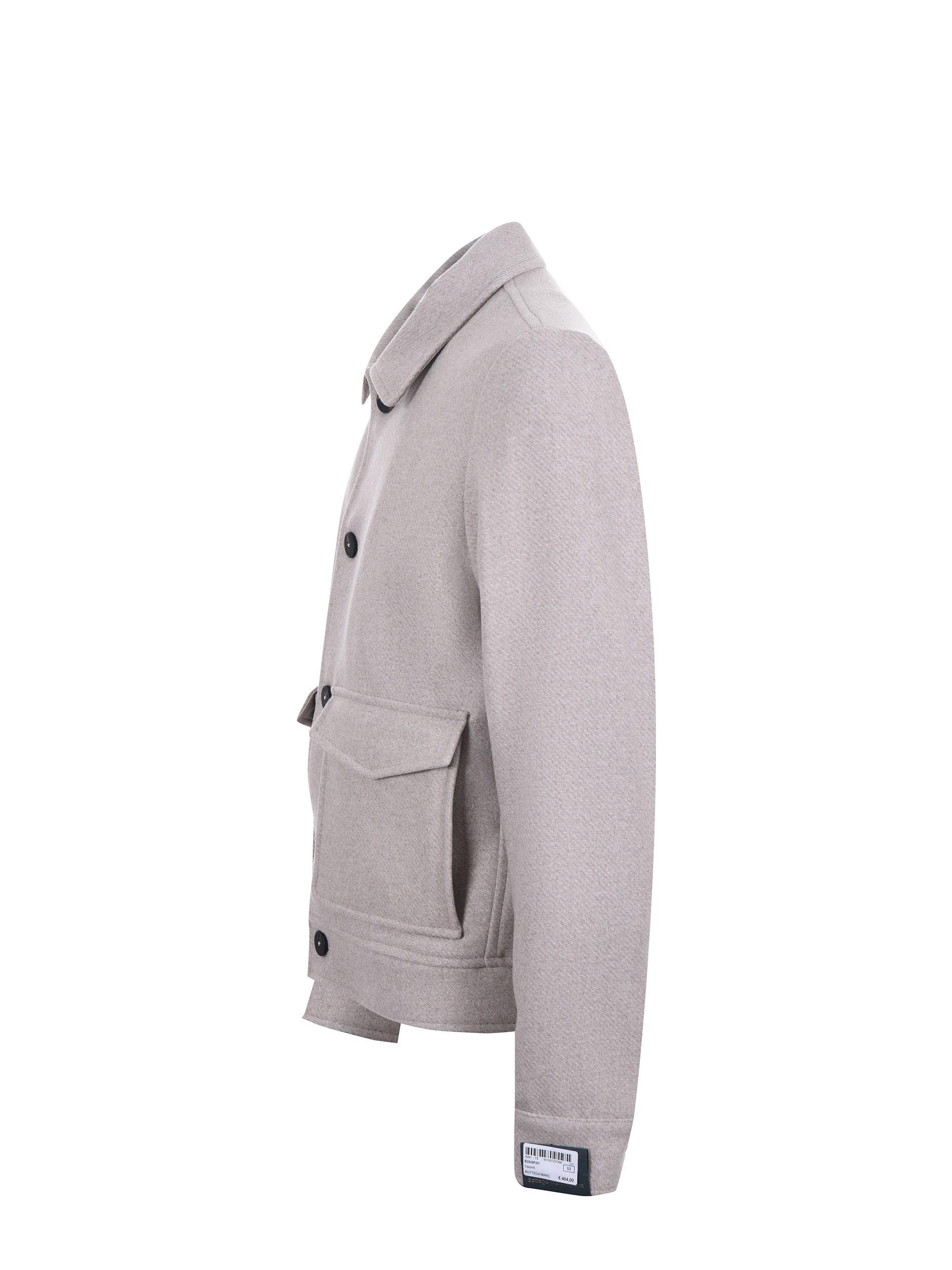 Giubbotto Bottega Marchigiana in twill di lana Beige. Foderato. Non imbottito. Colletto classico. Tasche con pattina e bottone. Chiusura con bottoni. Polsi con bottone.