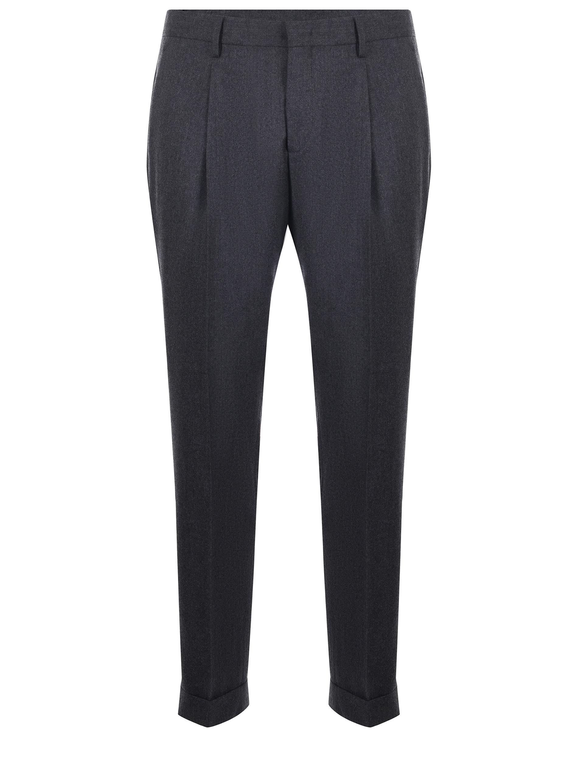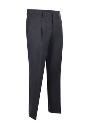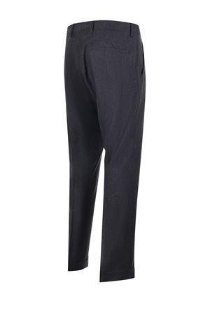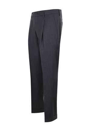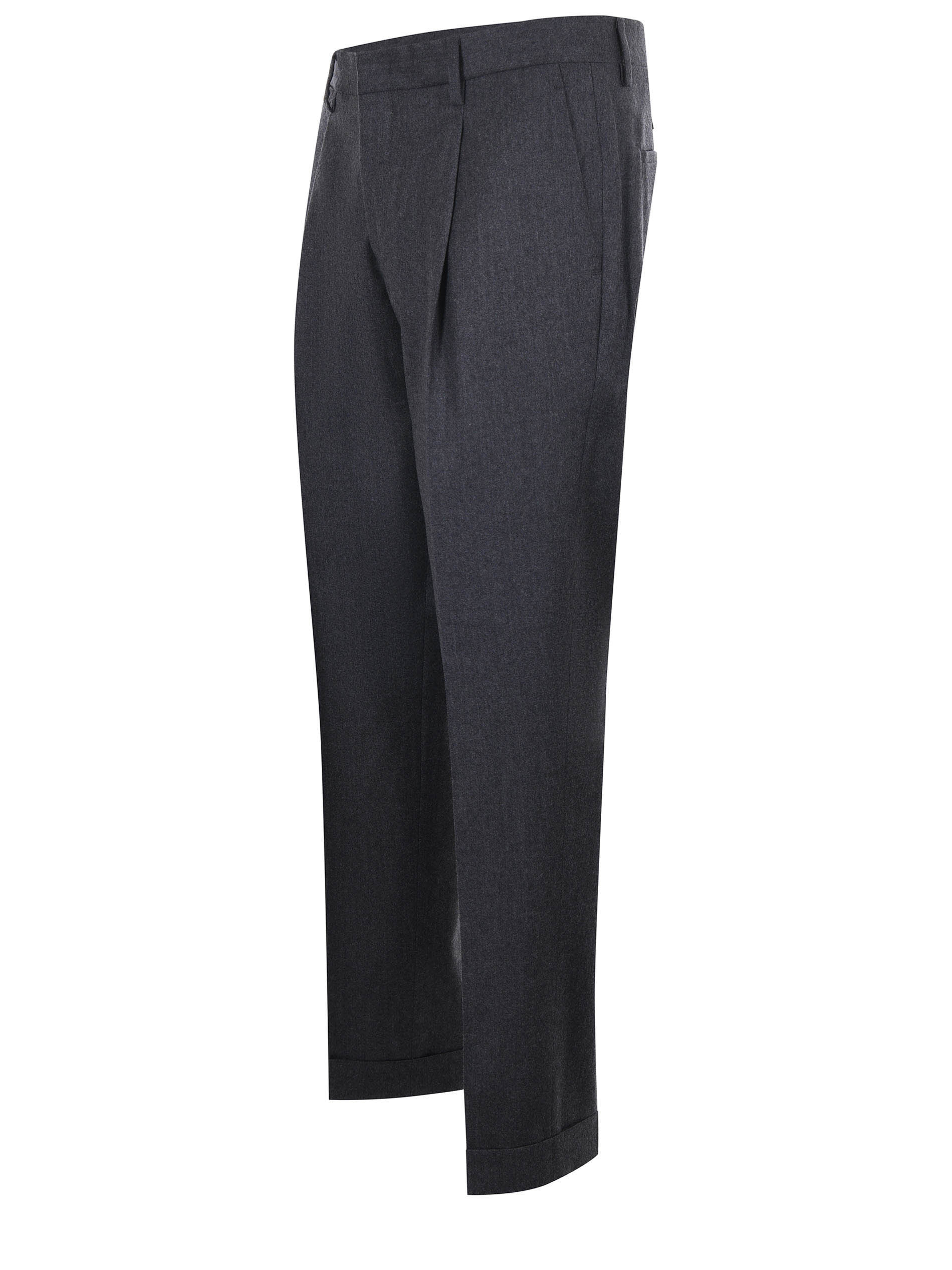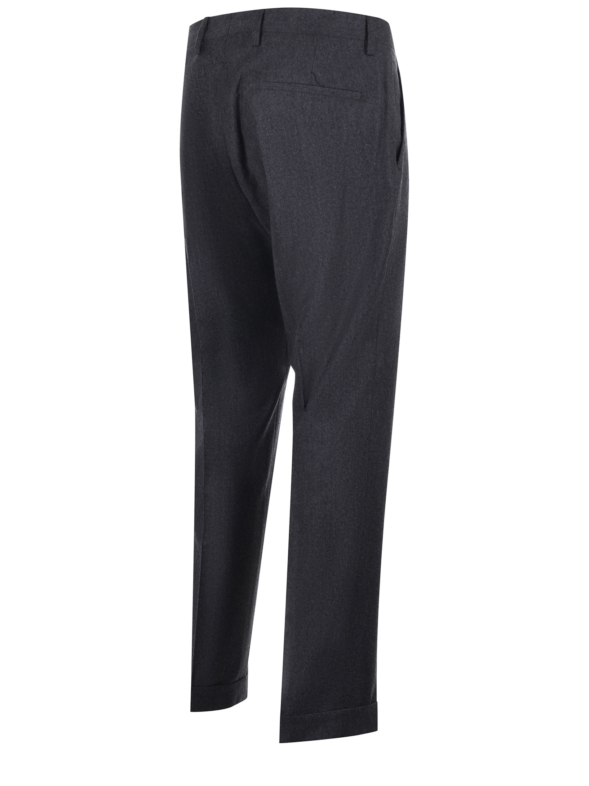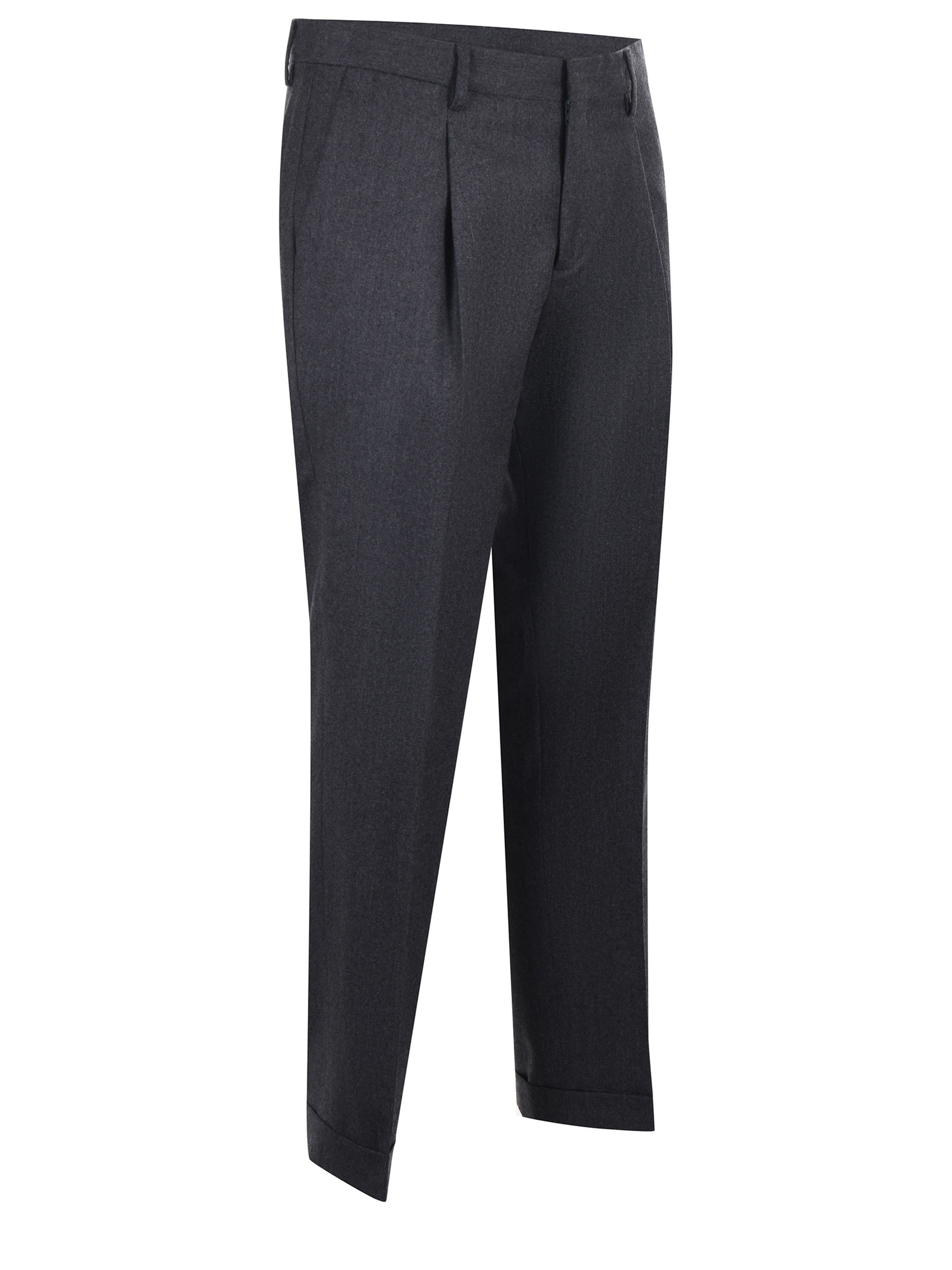 Pantaloni Brigia in lana e cashmere Grigio scuro. Pinces frontali. Passanti per cintura. Tasche america. Tasche a filo sul retro. Risvolto alto cucito al fondo.