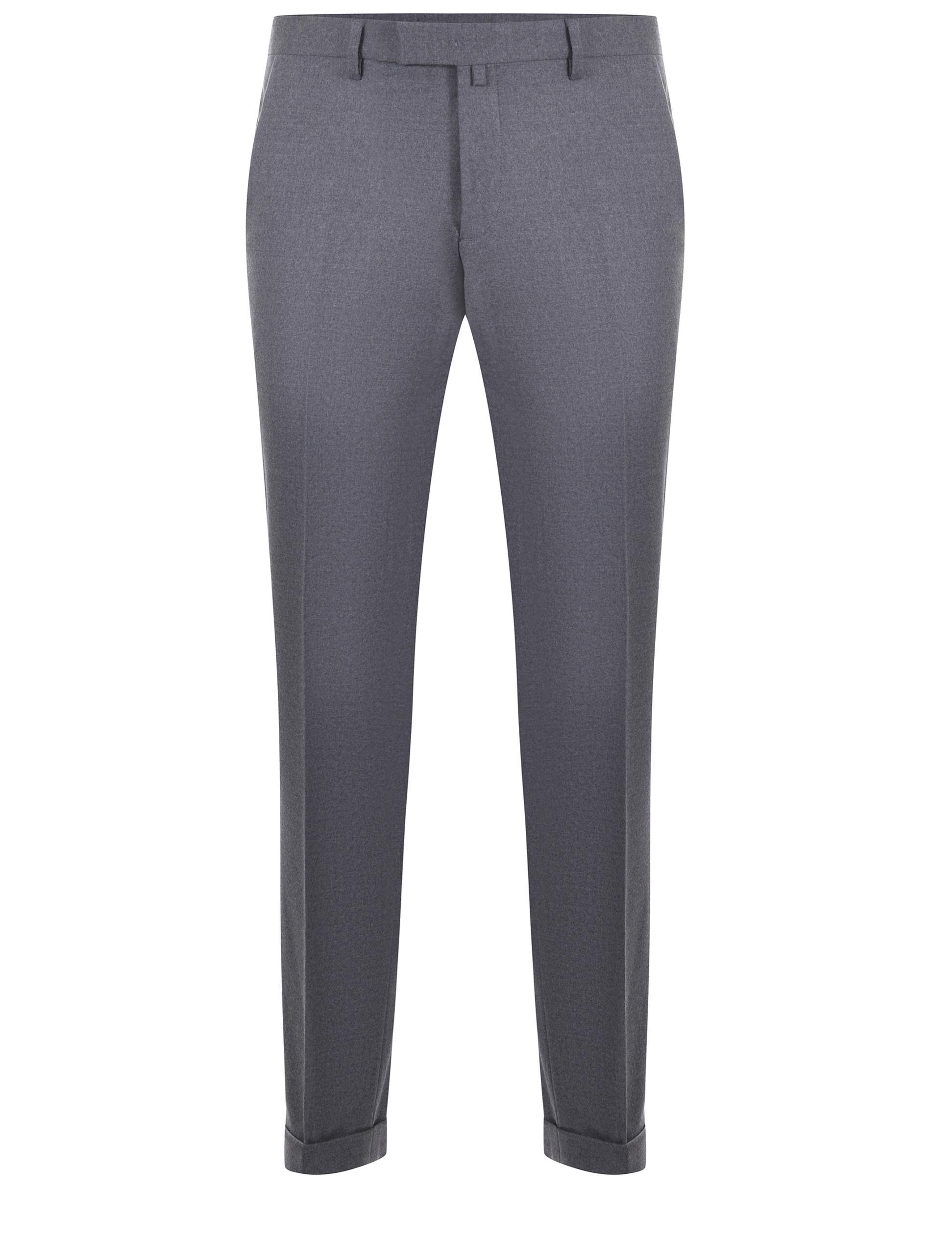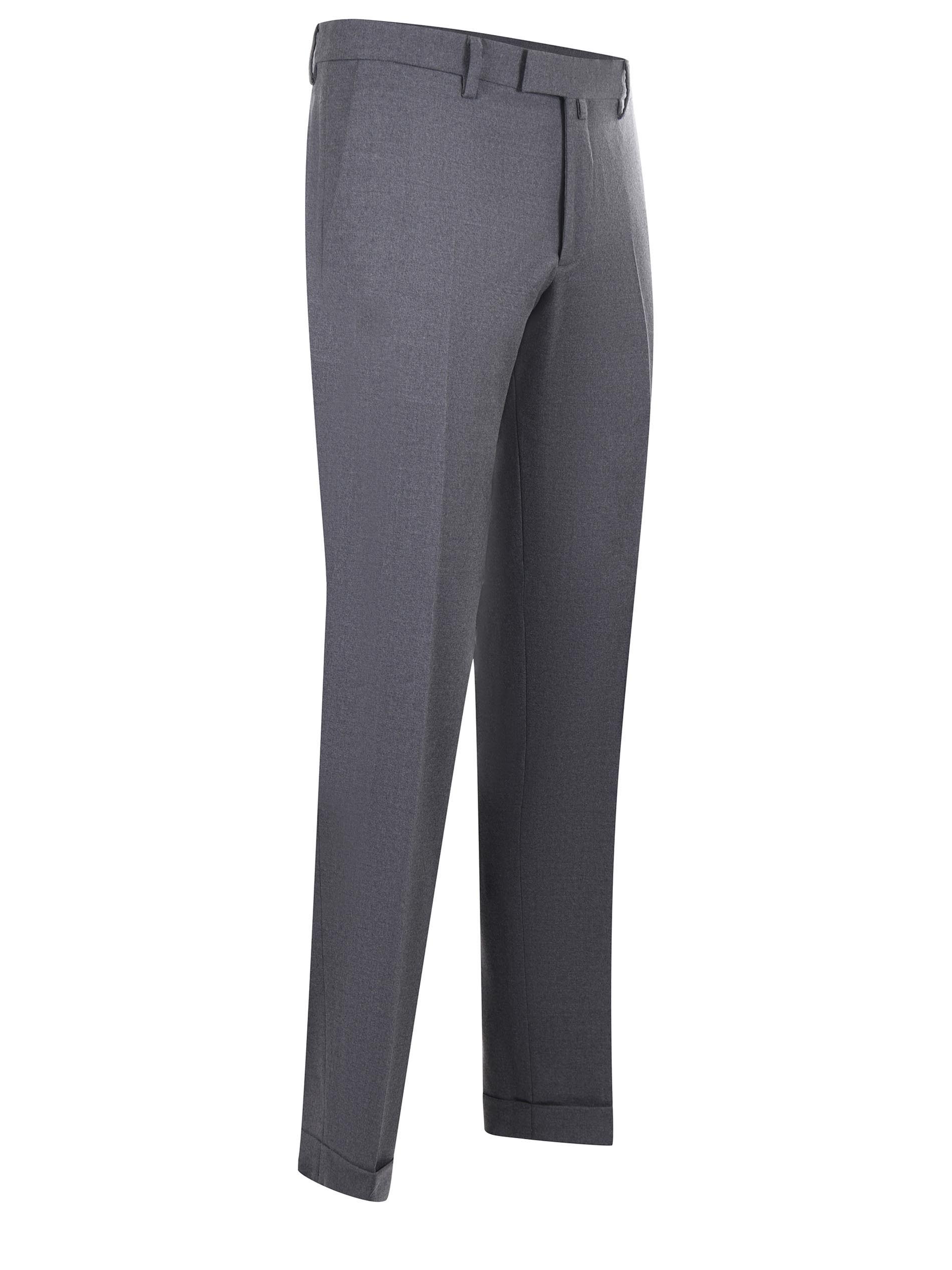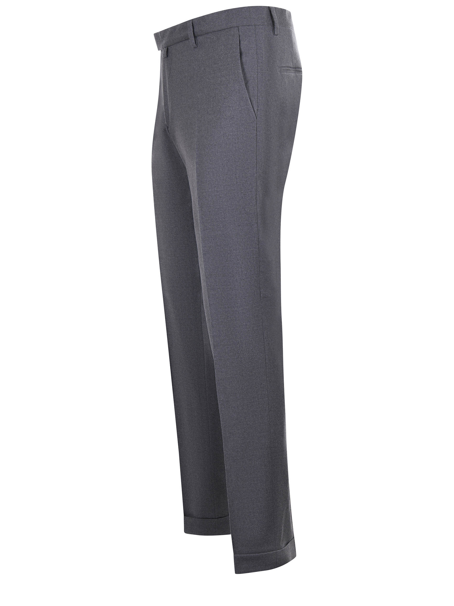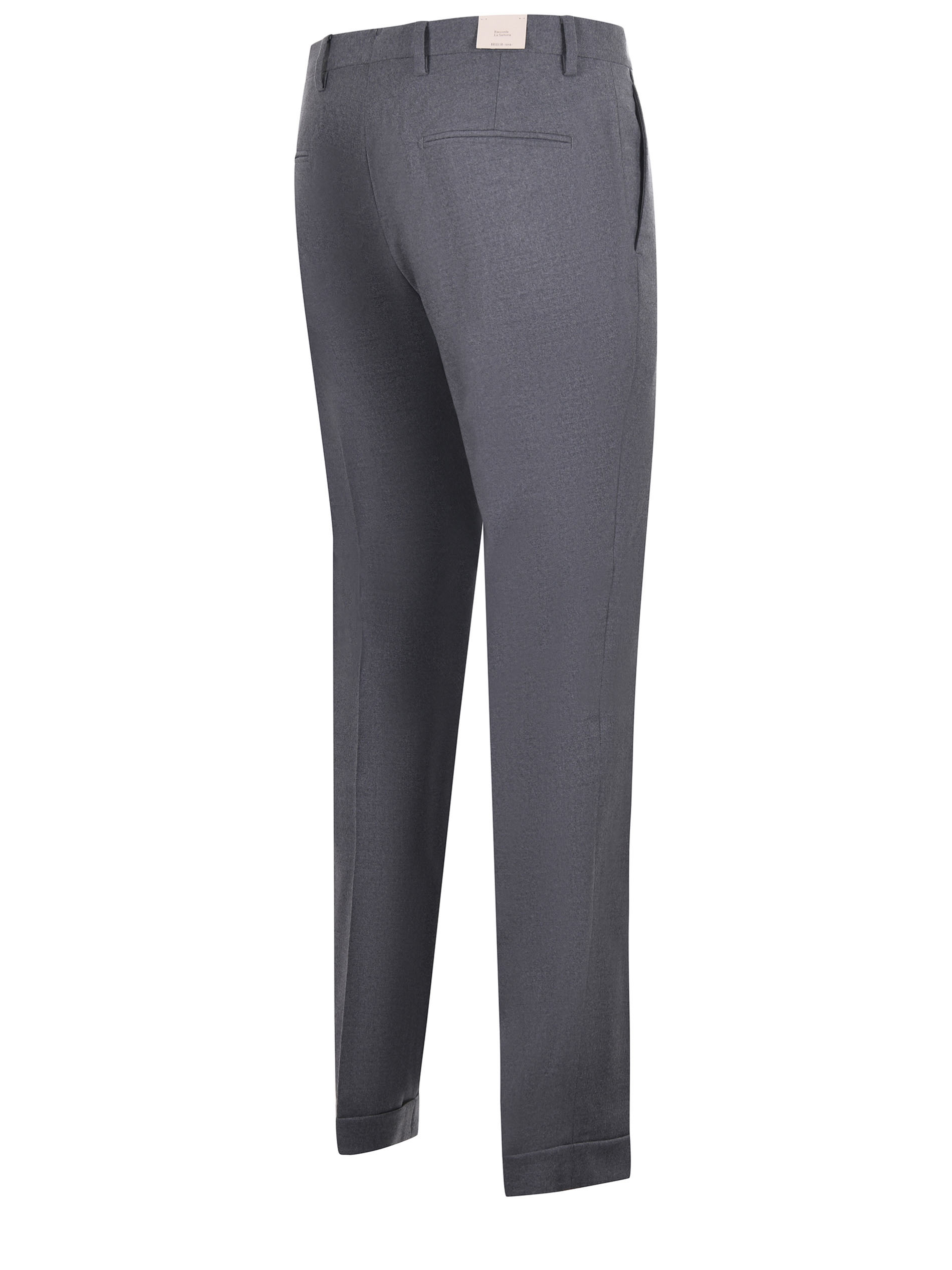 Pantaloni Briglia in lana pettinata Grigio scuro. Passanti per cintura. Chiusura con bottone e zip. Tasche laterali. Tasche a filo con bottone sul retro. Risvolto alto cucito al fondo