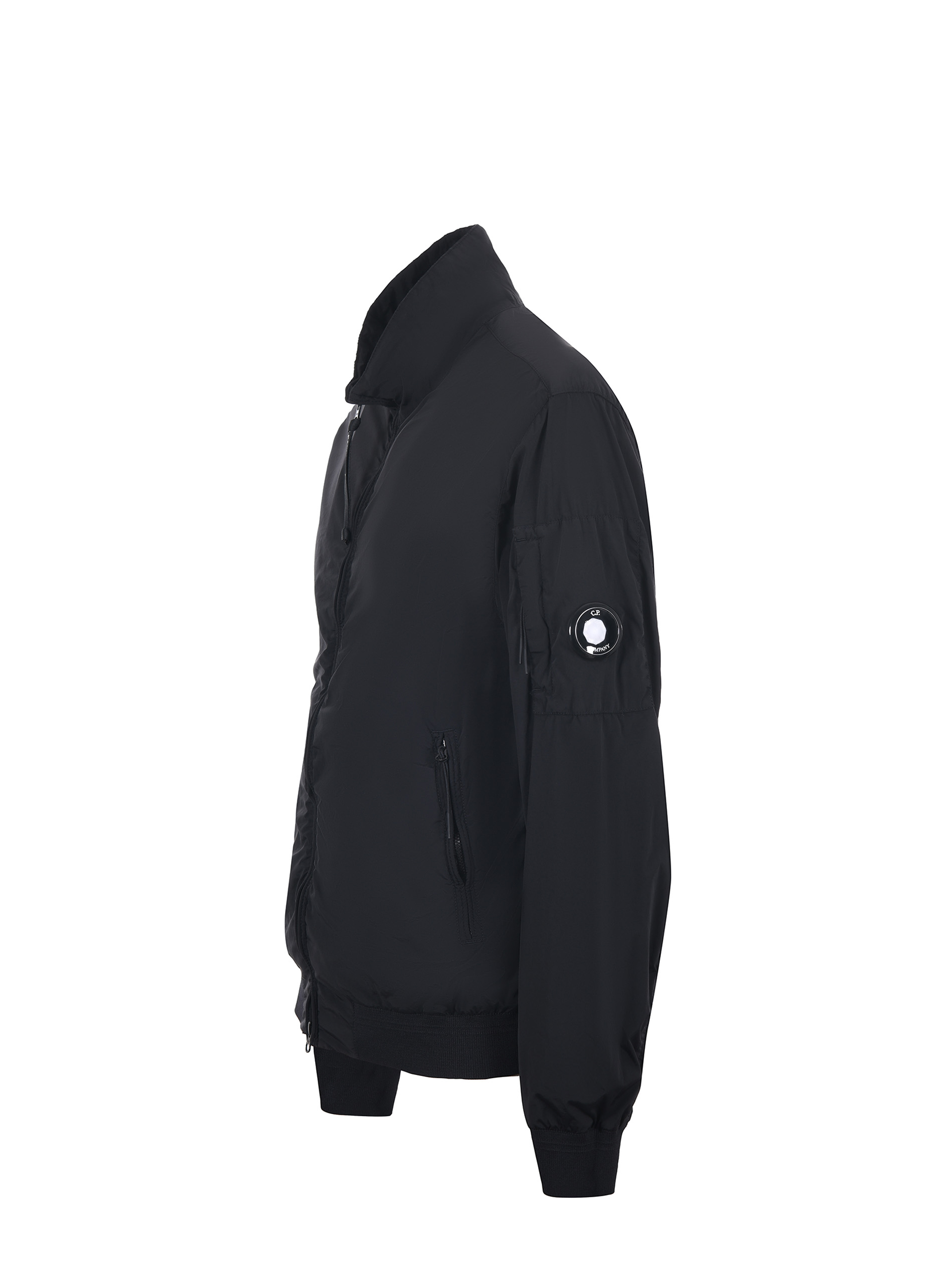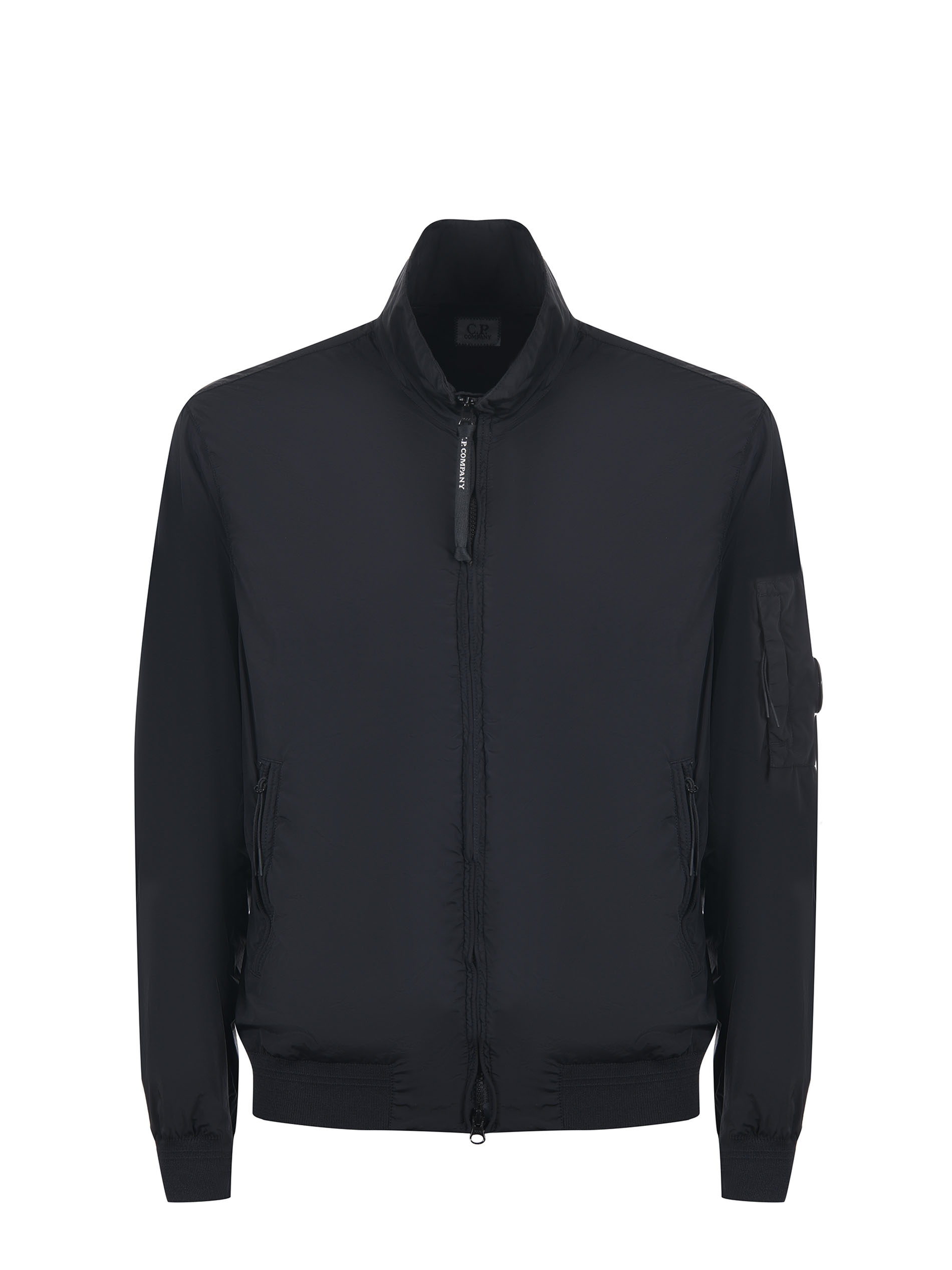 Giubbotto C.P. Company in nylon stretch Nero. Collo alto. Tasche alte con zip. Tasca sulla manica destra con goggle lent. Polsi e fondo a costine. Chiusura con zip doppio cursore. Sfoderato.