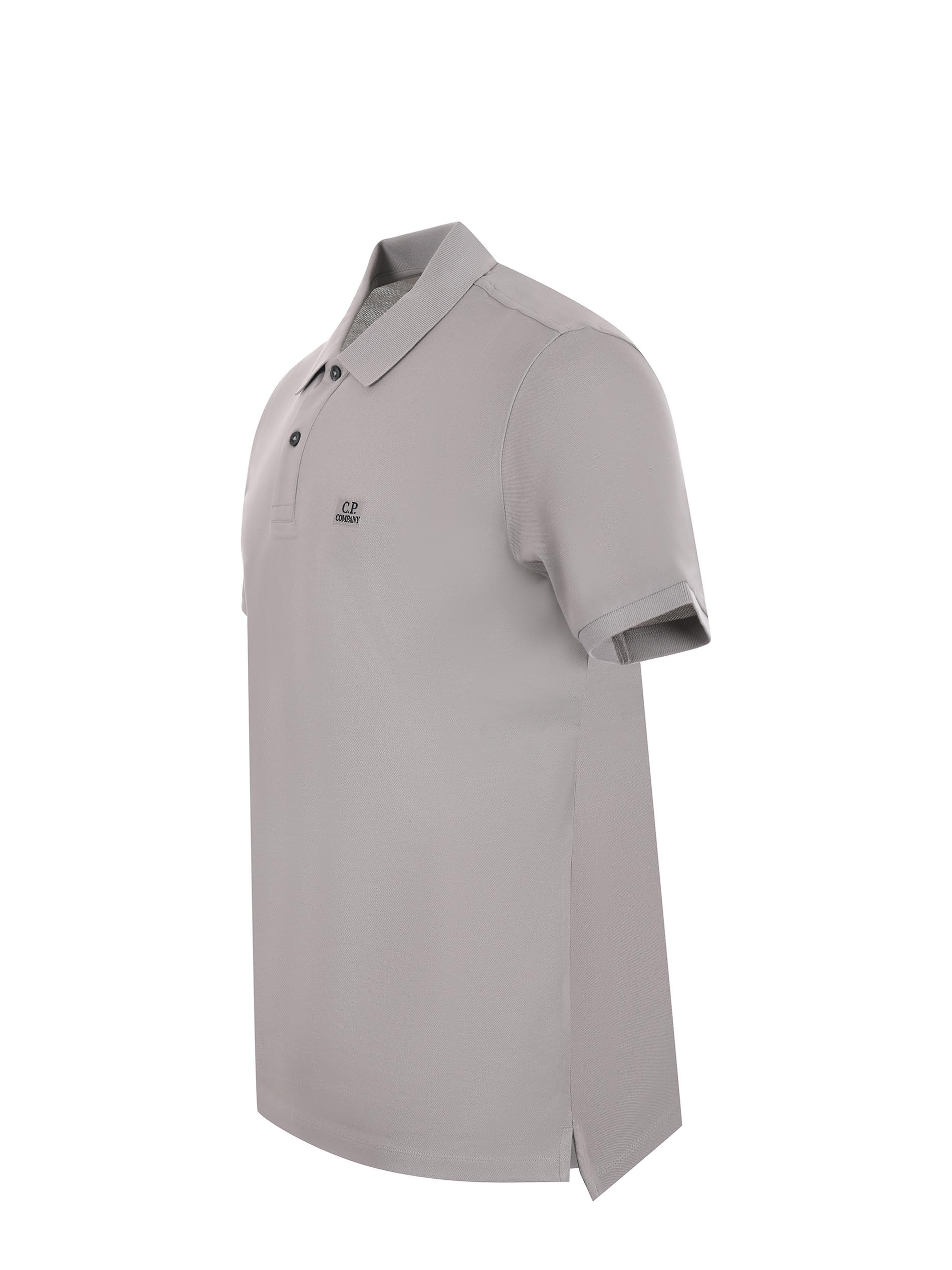 Polo C.P. Company in piqué di cotone color Mastice. Colletto a costine. Maniche corte. Chiusura con due bottoni. Lettering ricamato sul petto. Spacchetti ai lati. Slim fit.