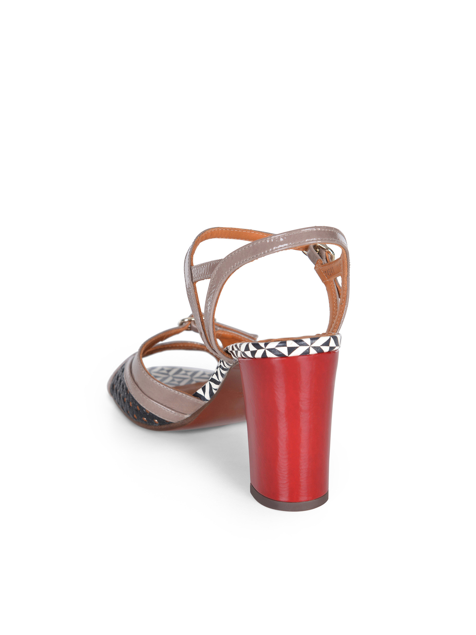 Dettaglio con fibbia sul davanti e laterali traforati.