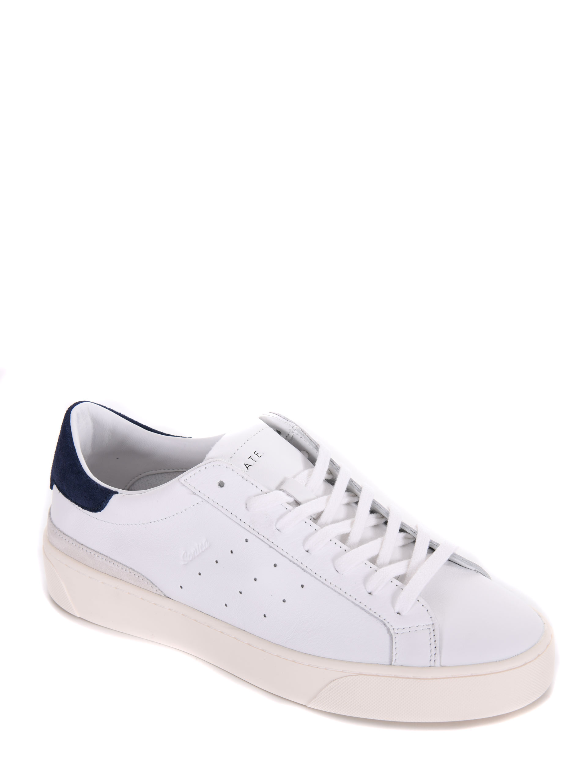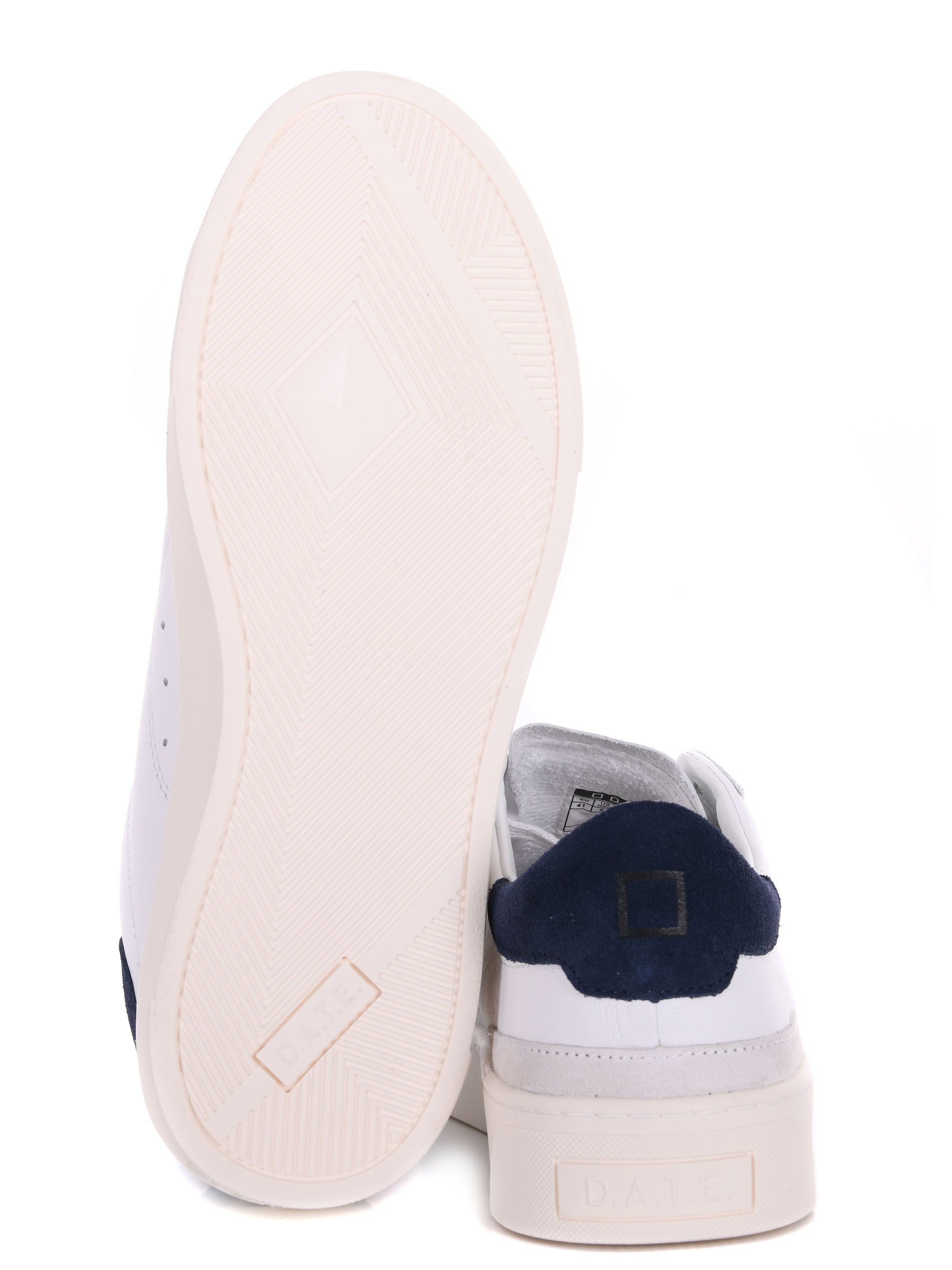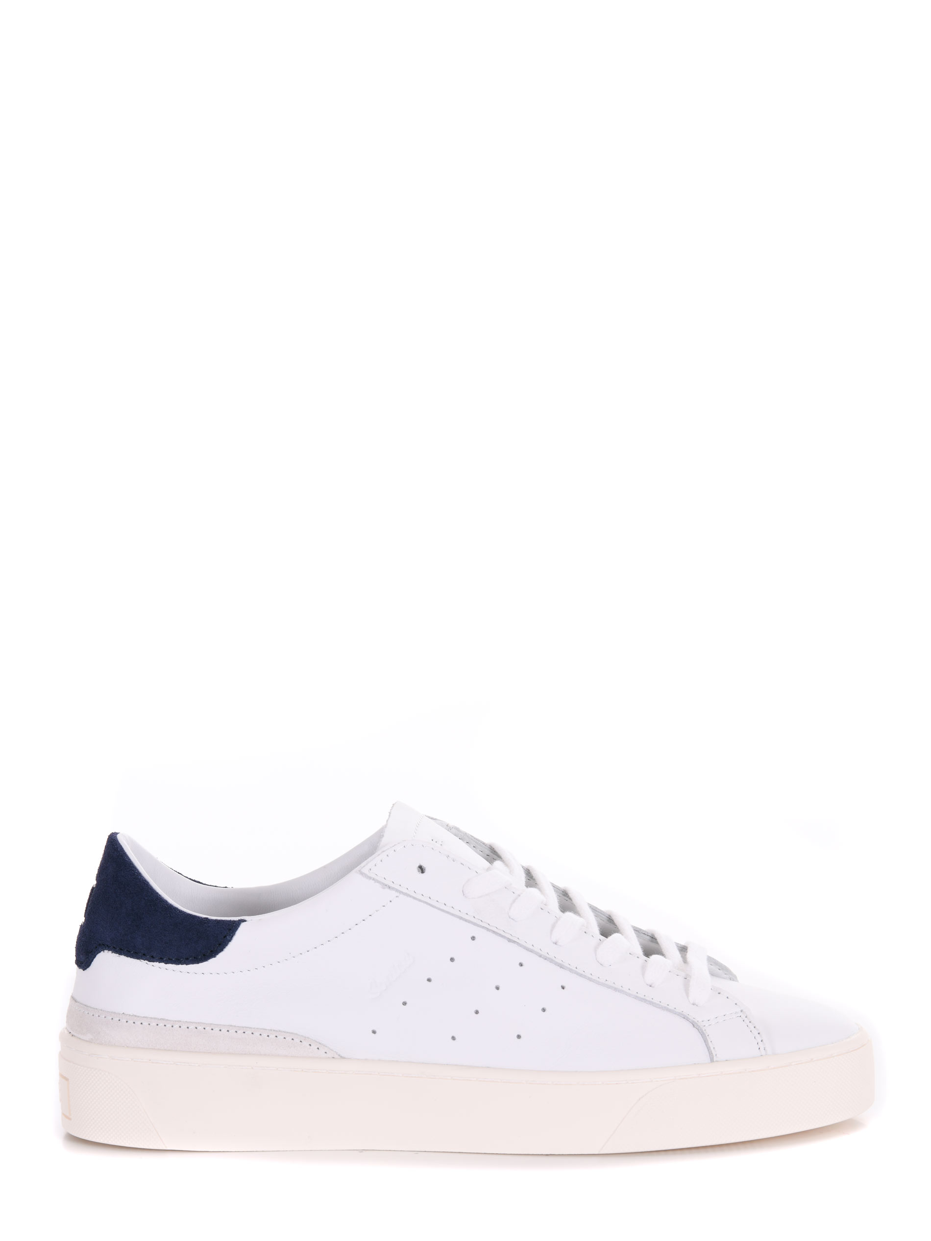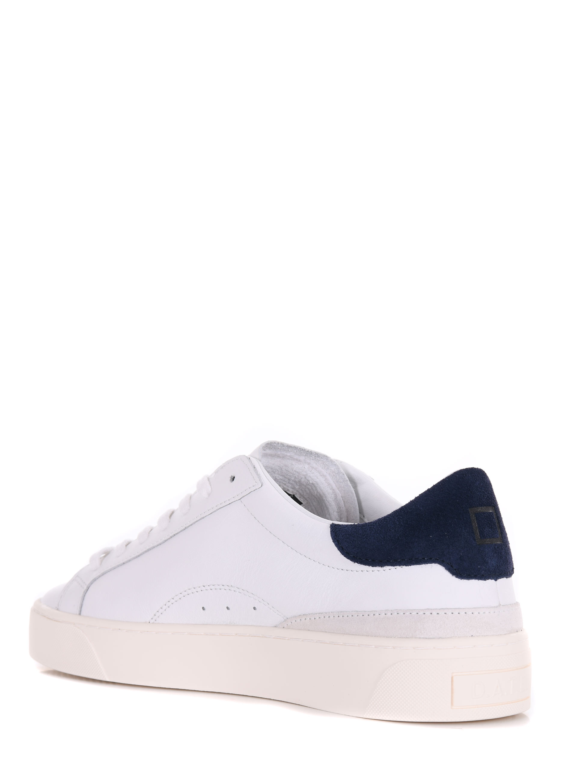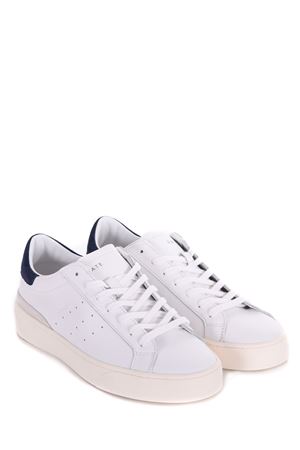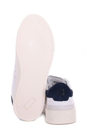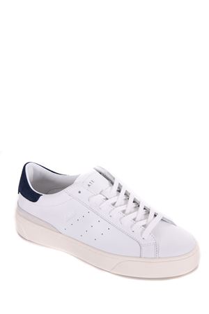 Sneakers uomo D.A.T.E. in pelle Bianca. Stringate. Inserto in camoscio Blu sul retro. Linguetta con logo. Logo impresso sulla linguetta. Suola 30 mm in gomma.