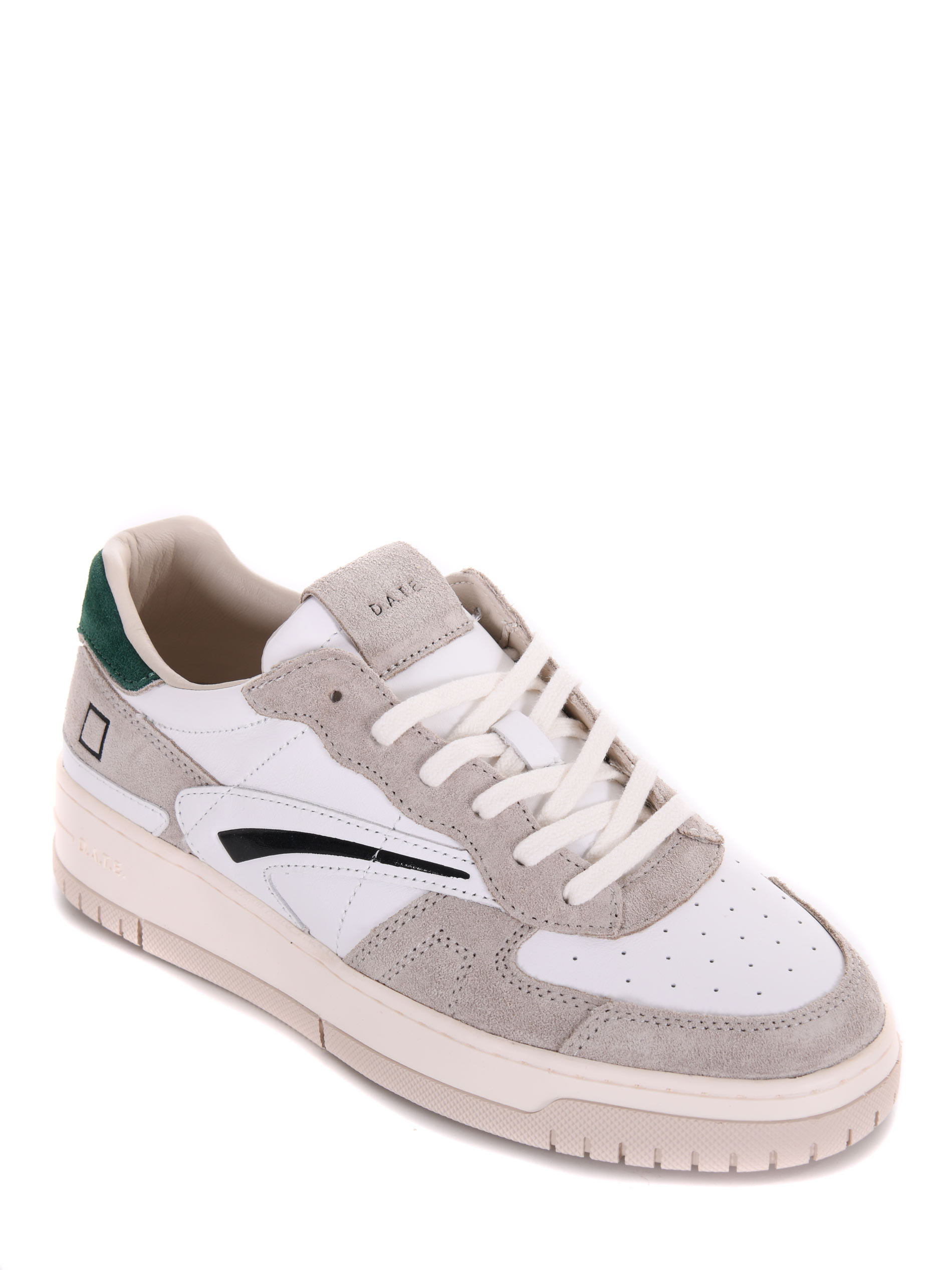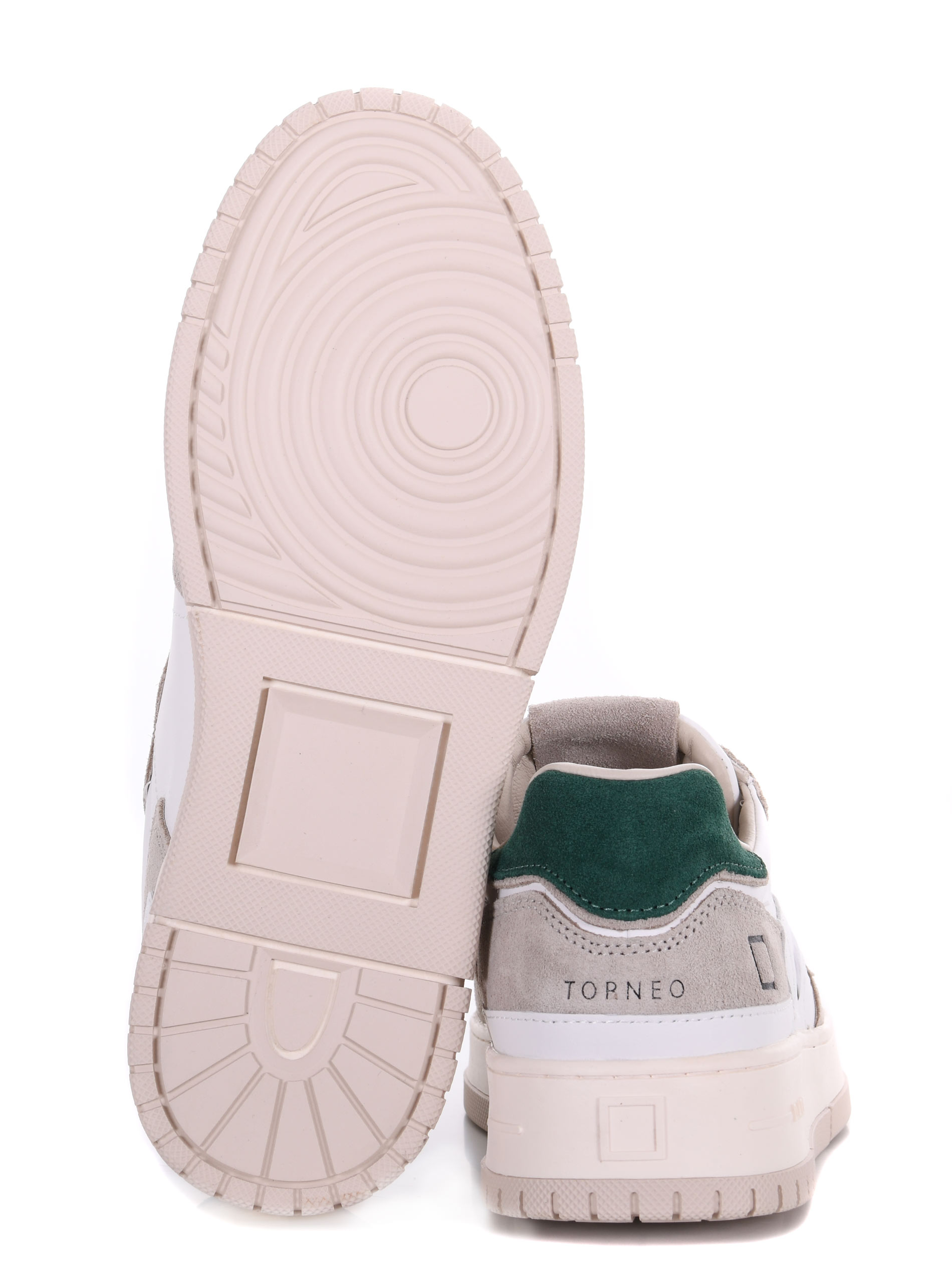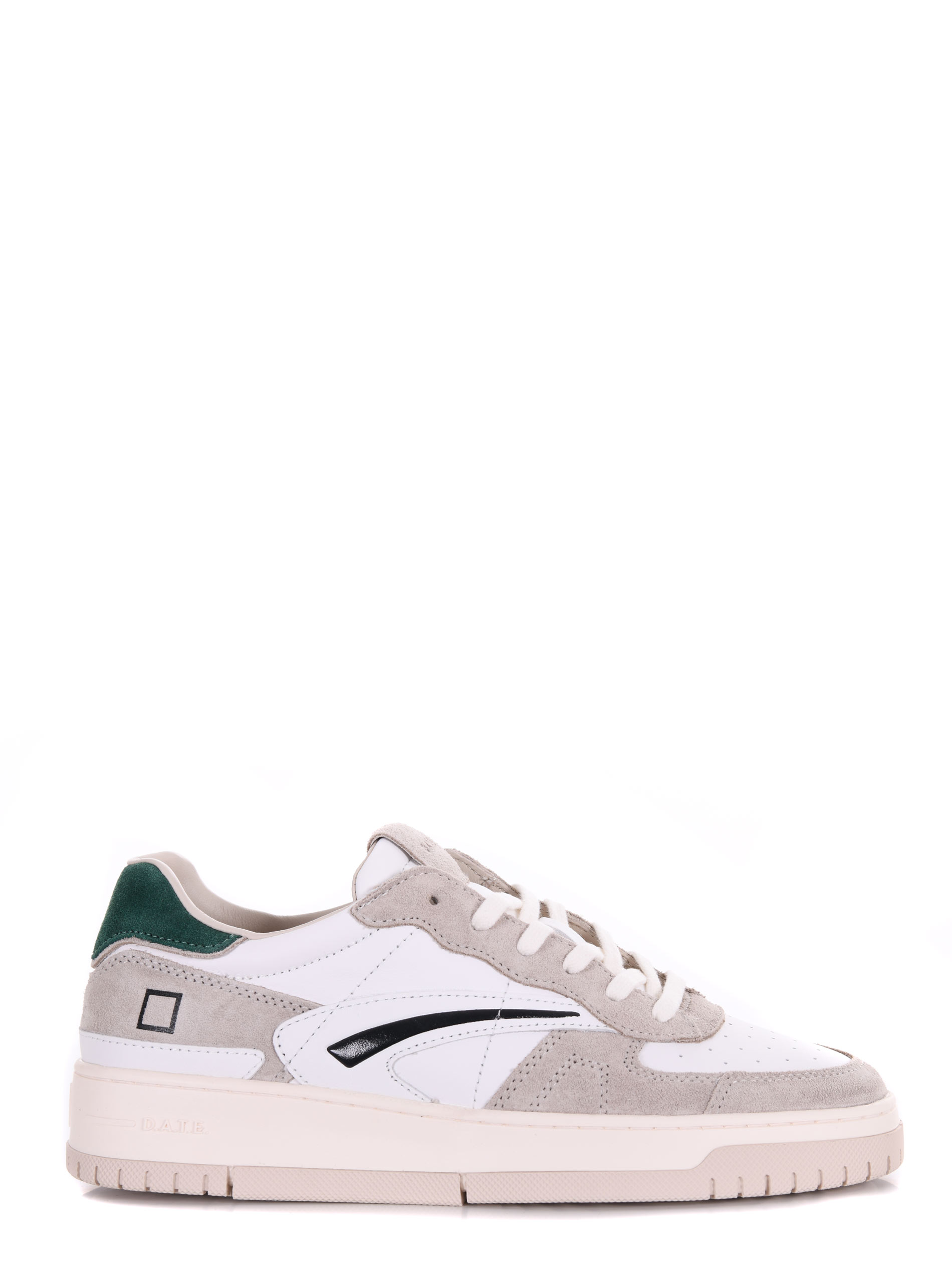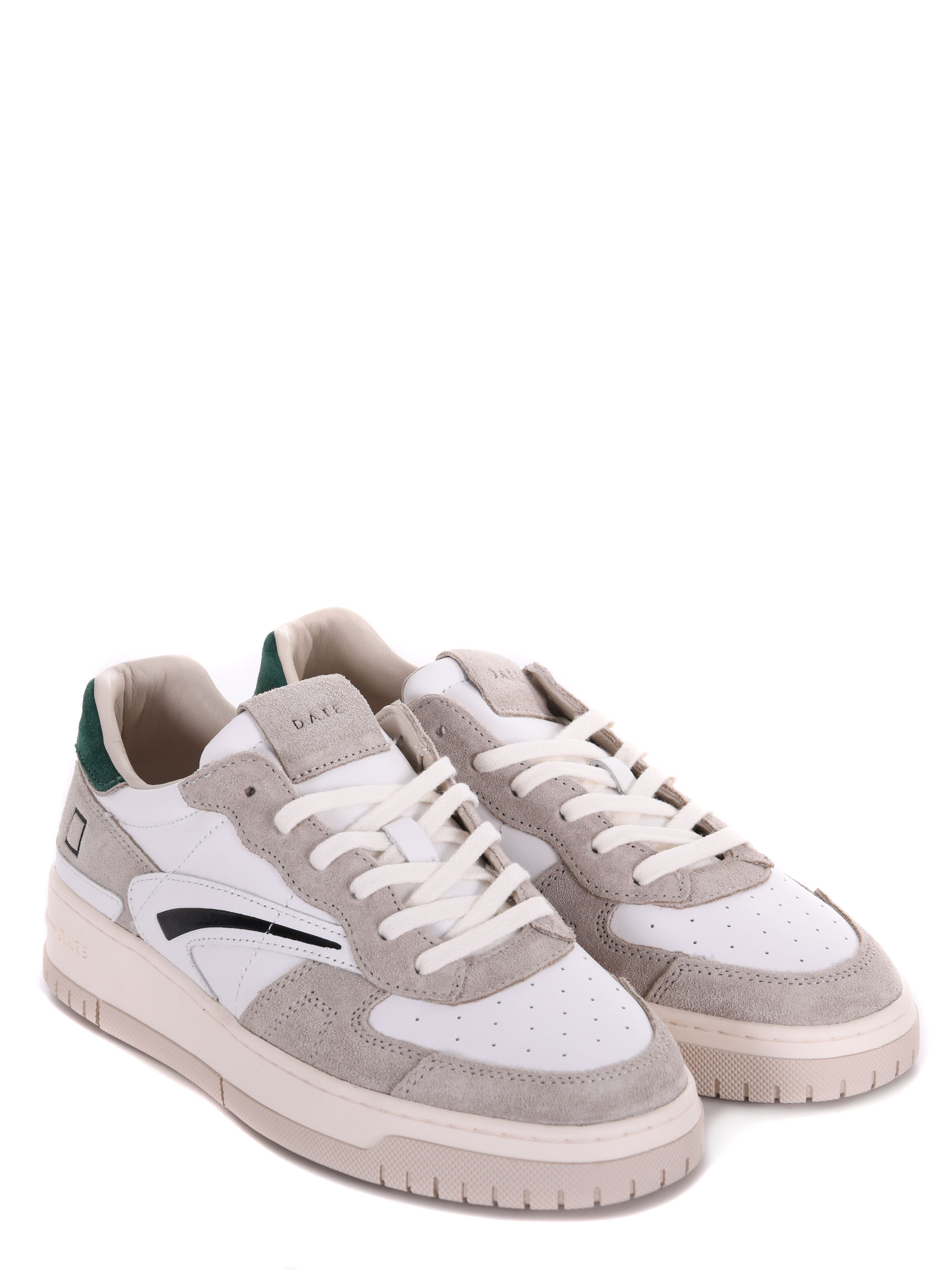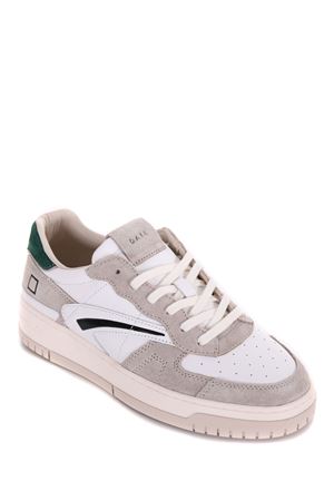 Sneakers uomo D.A.T.E. in pelle e camoscio Bianco/Beige. Punta traforata. Dettagli stampati. Inserti a contrasto verde. Stringate. Logo impresso sulla linguetta. Suola 40 mm in gomma.