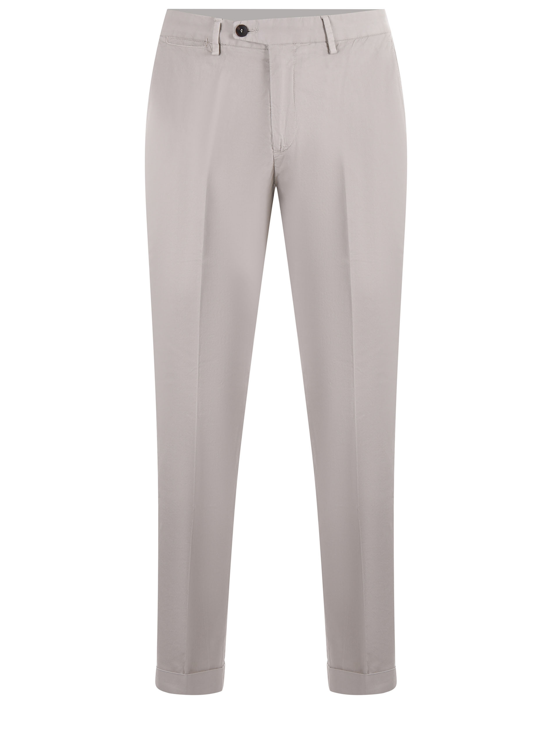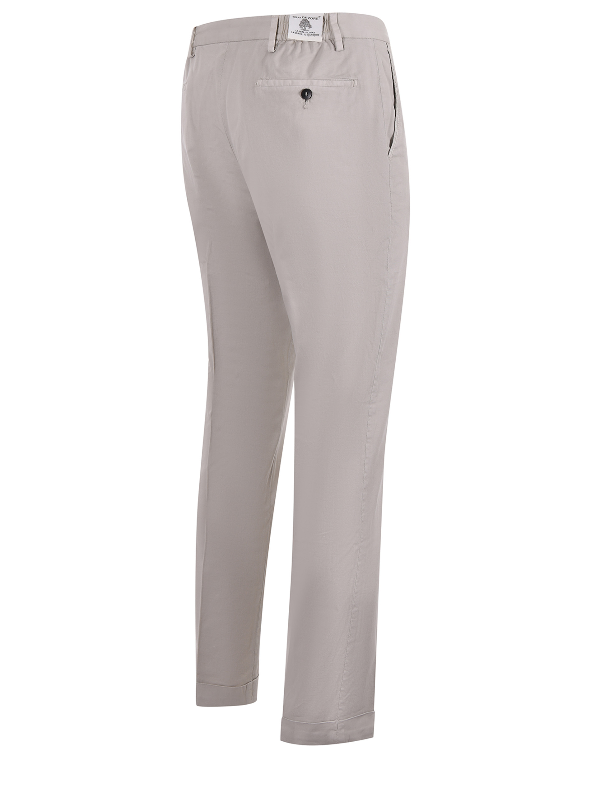 Pantaloni Devore in tessuto leggero di cotone, seta e cashmere stretch color Sabbia. Tasche america. Tasche posteriori a filo con bottone. Gamba dritta. Risvolto 35 mm cucito al fondo. Chiusura con zip e gancio.
