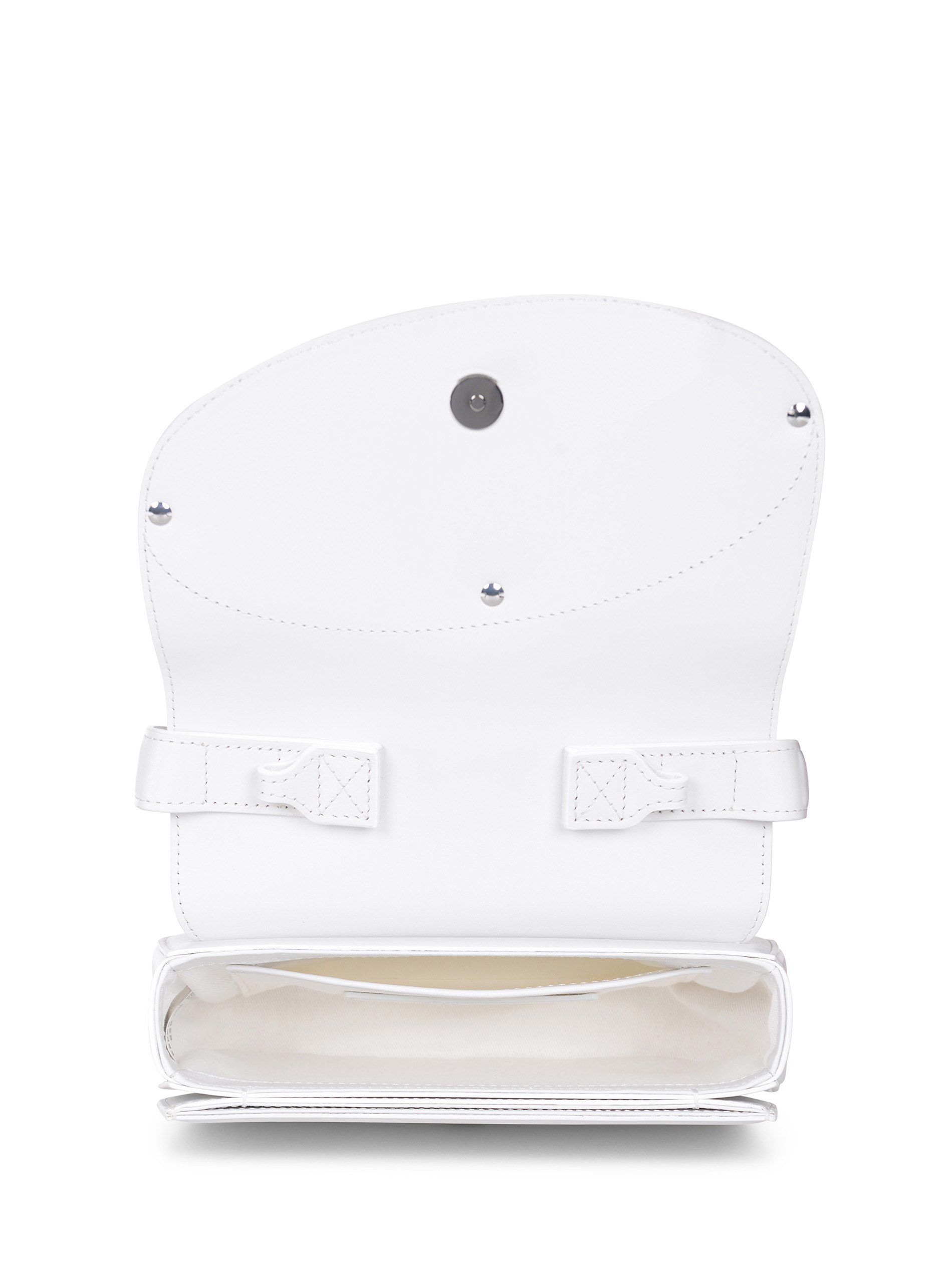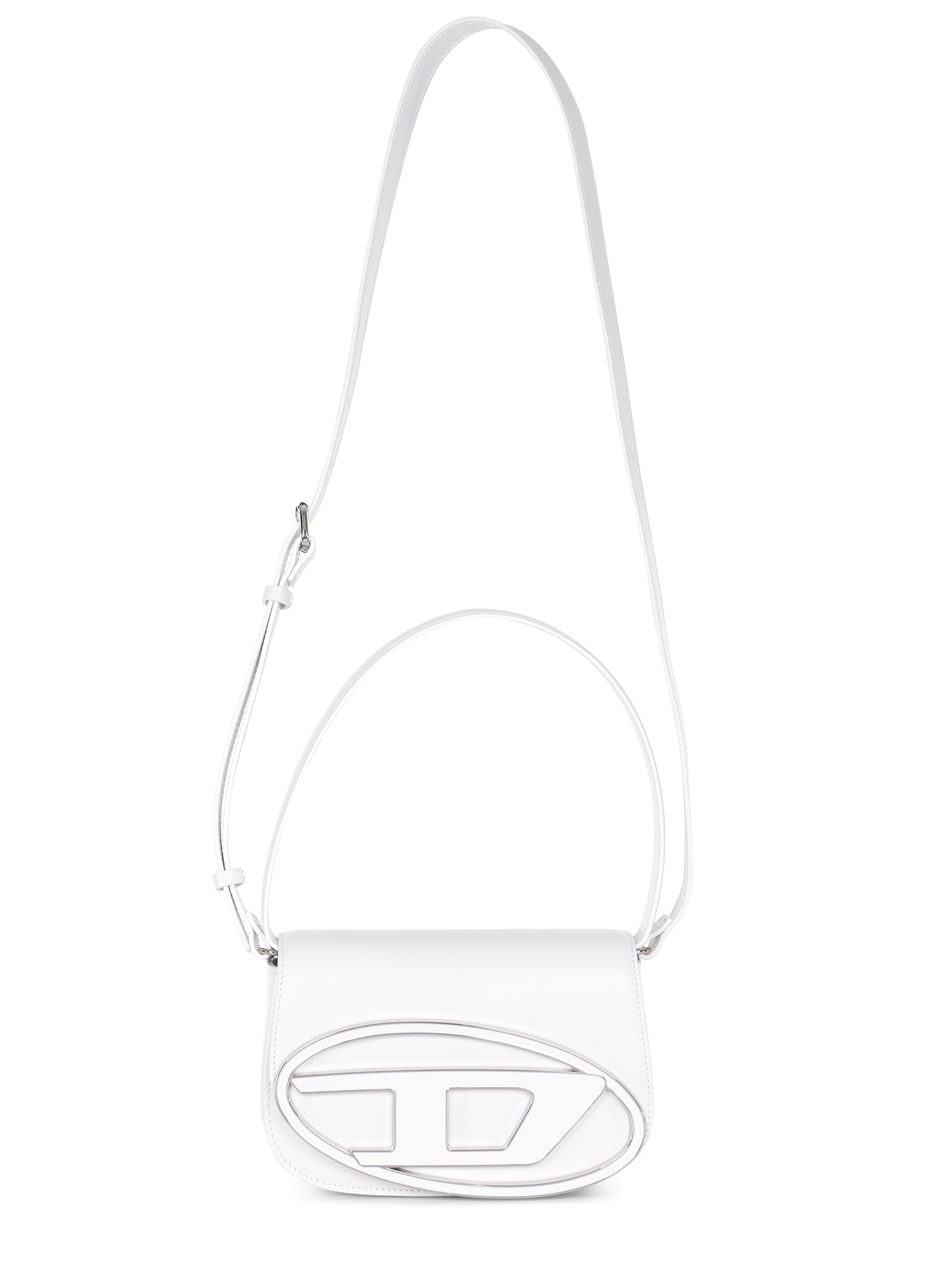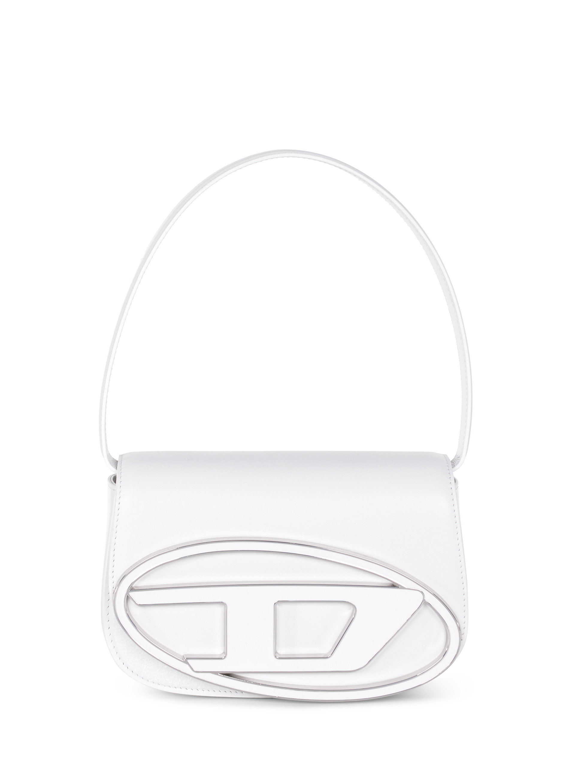 Borsa Diesel "1DR" realizzata in pelle di colore Bianco. Inserti in metallo Argento. Manico superiore.