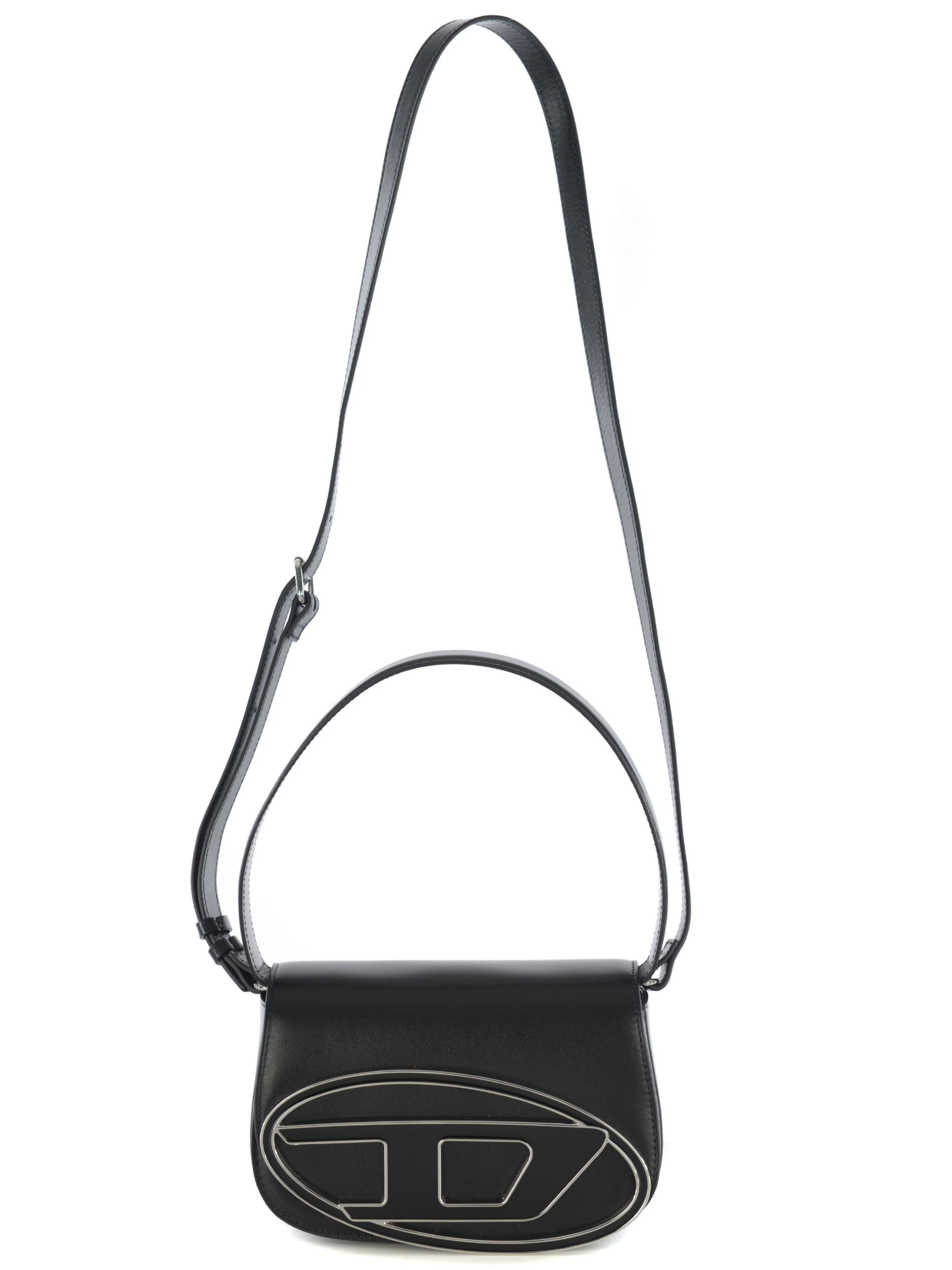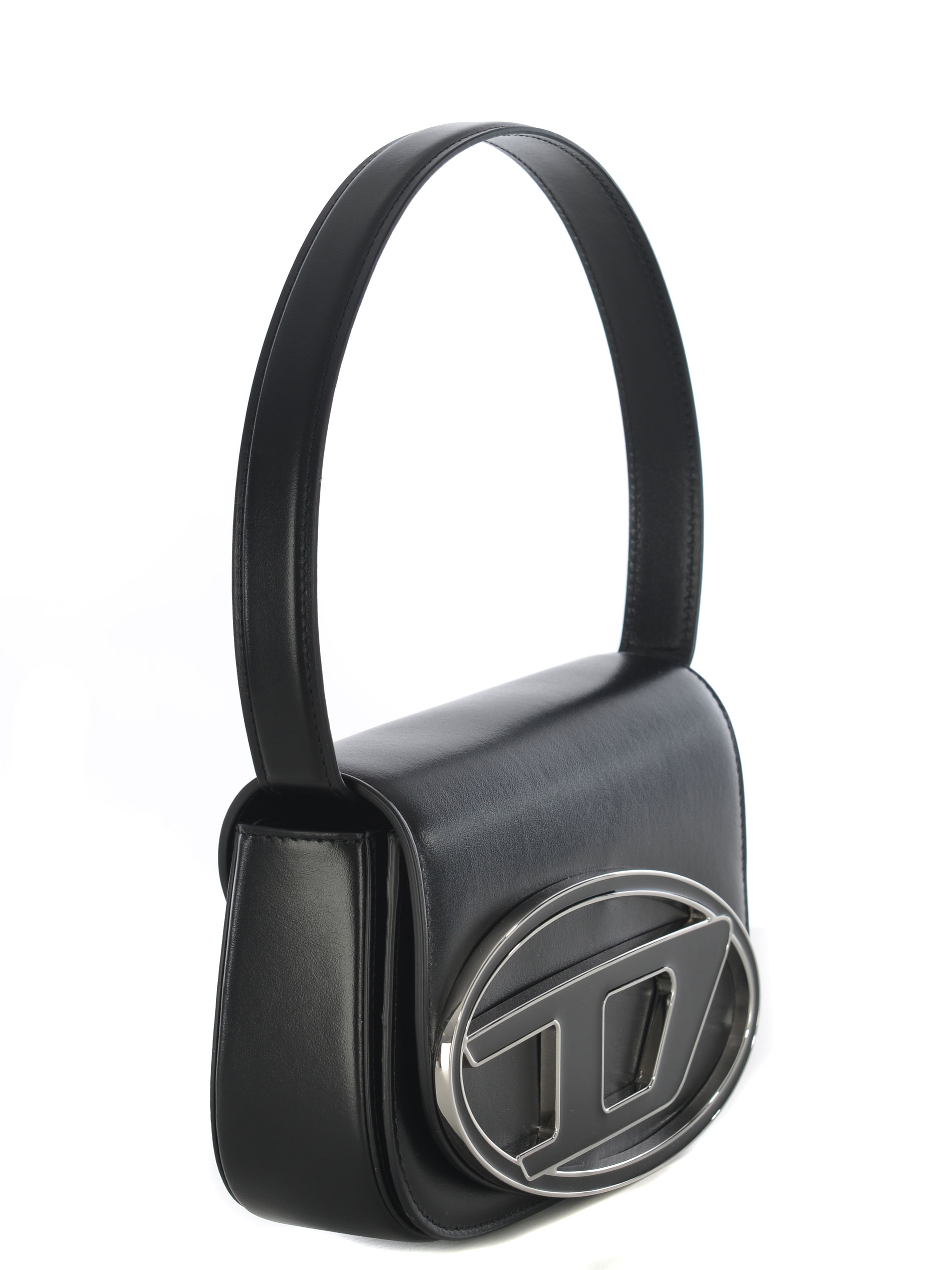 Borsa Diesel "1DR" realizzata in pelle di colore Nero. Inserti in metallo Argento. Manico superiore.