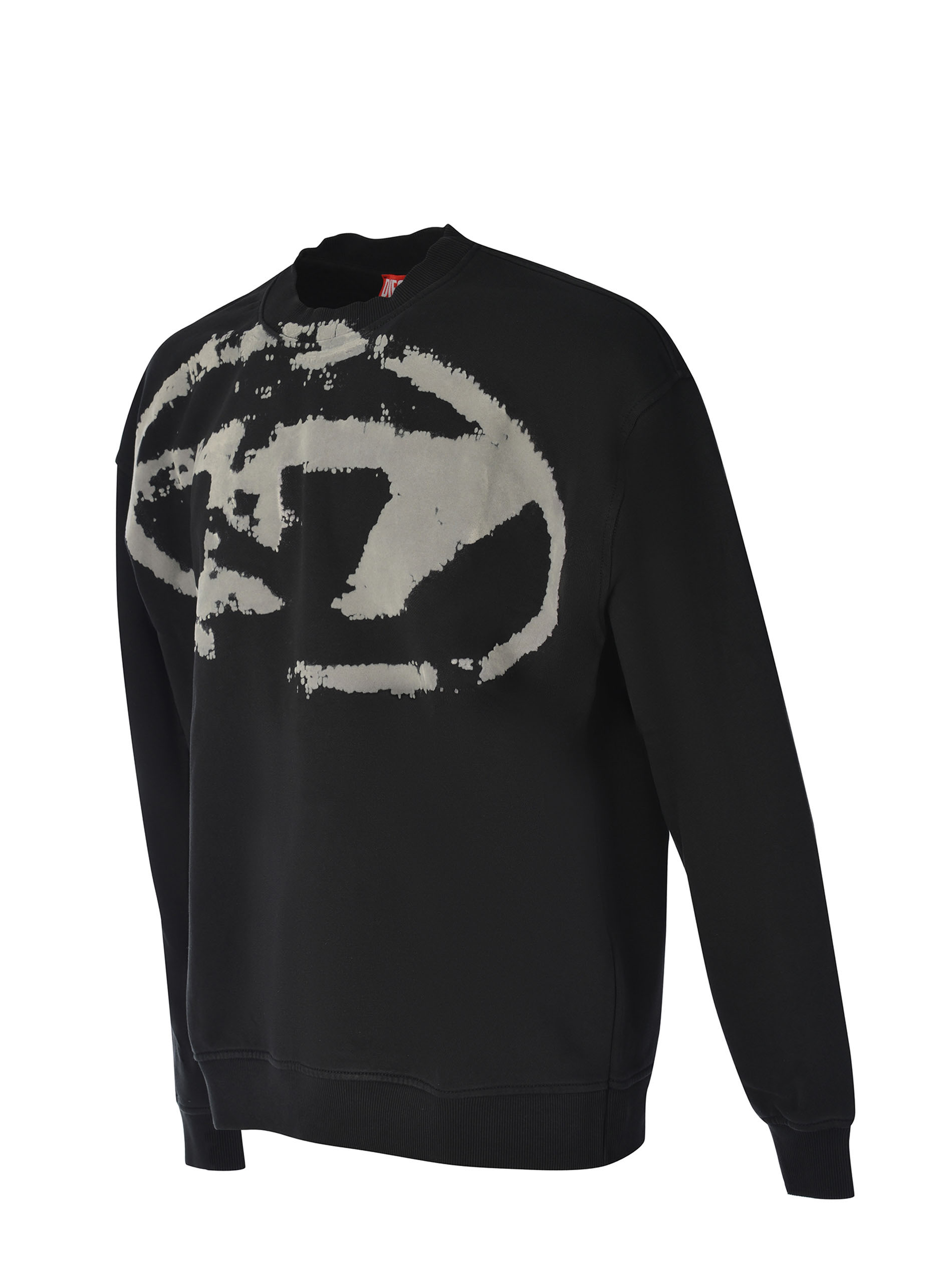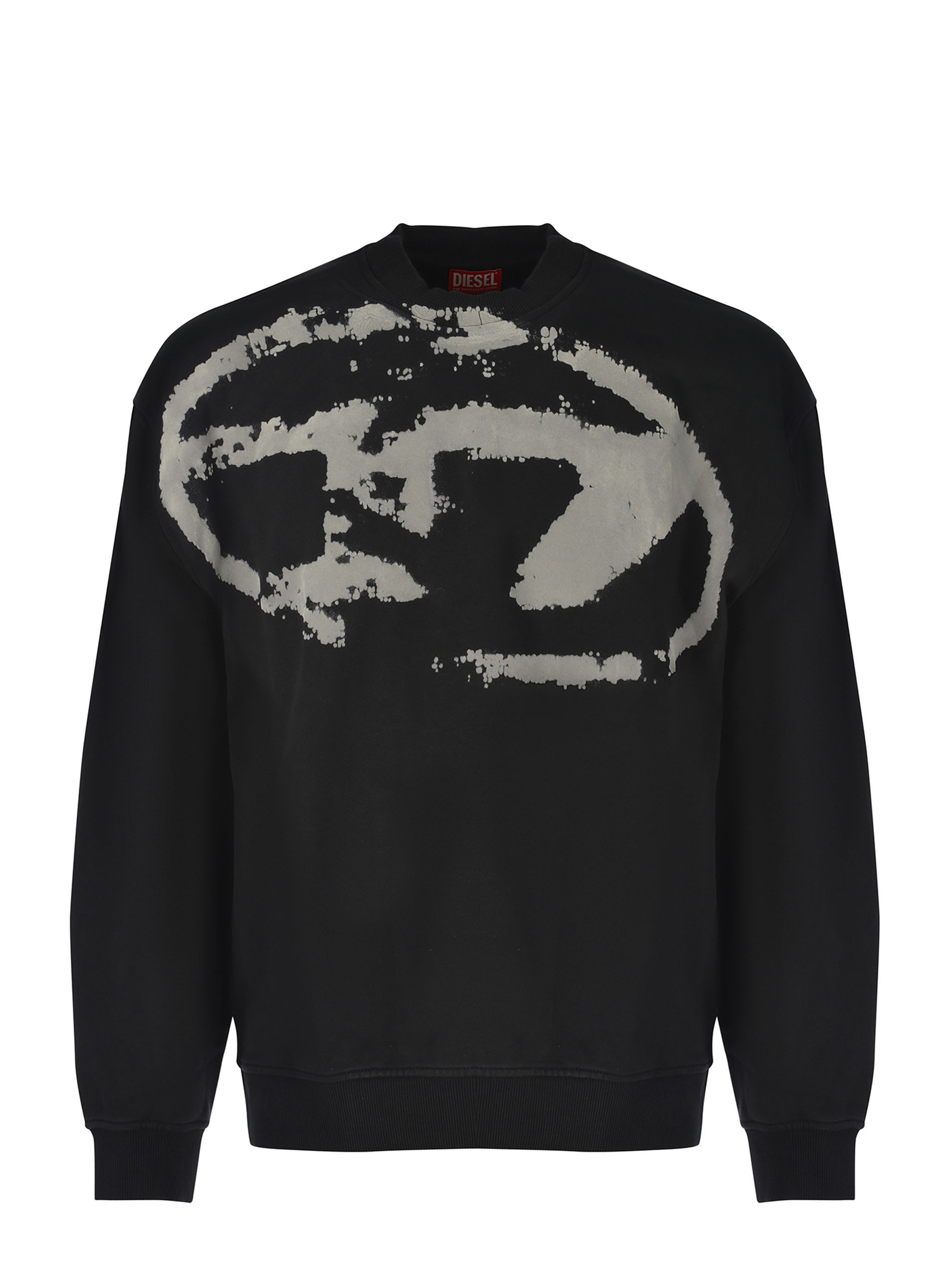 Felpa Diesel "S-Boxt-N5" realizzata in jersey di cotone garzato di colore Nero. Effetto vintage. Girocollo a costine. Maniche lunghe.