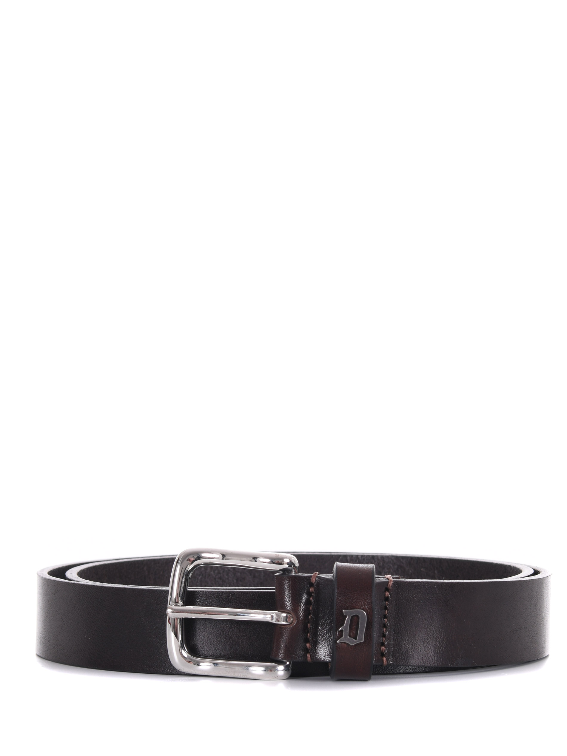 Cintura Dondup in pelle Marrone. Fibbia monogramma in metallo argento. Chiusura regolabile a spillo. Altezza 30 mm.