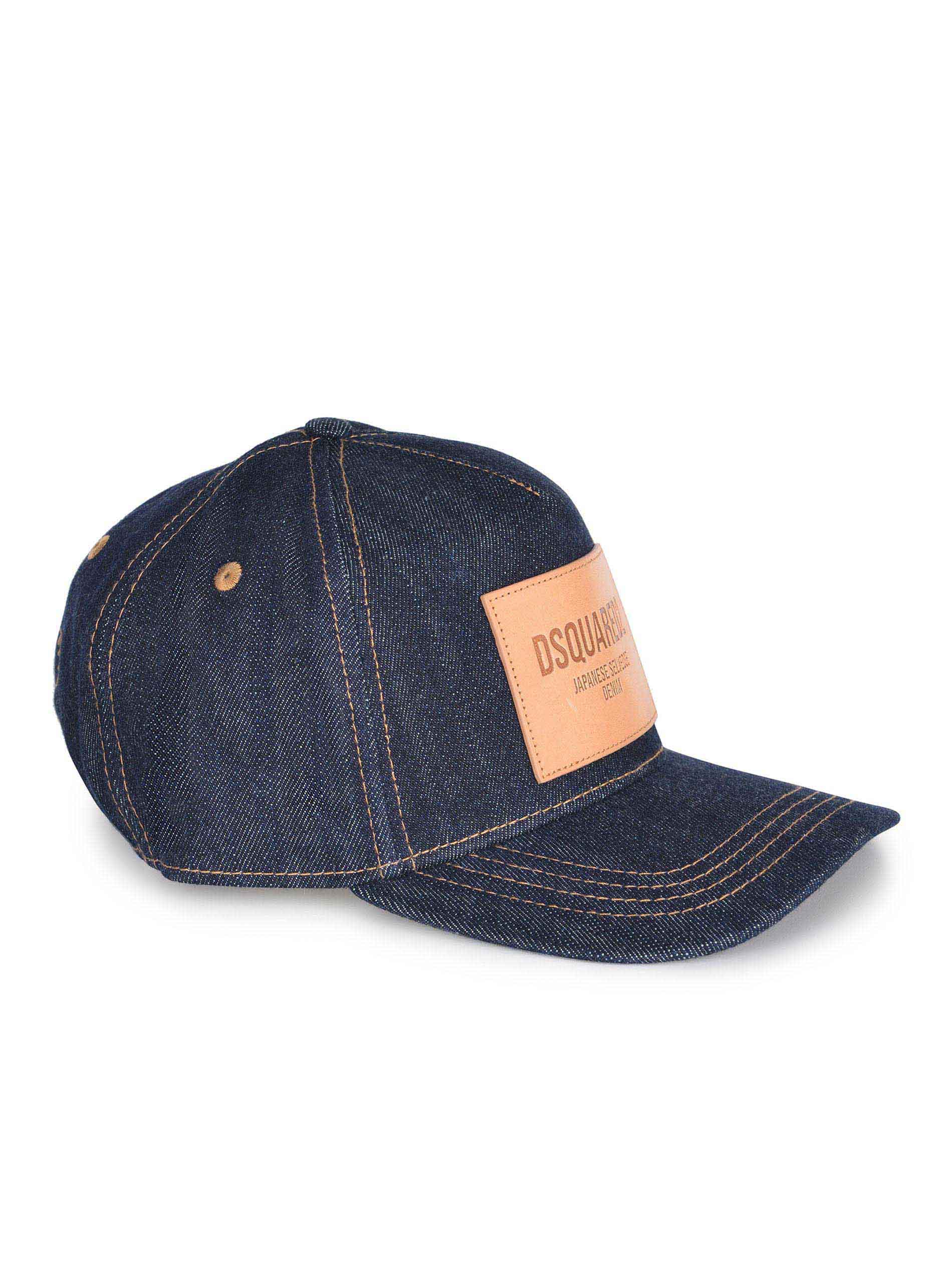 Cappello Baseball Dsquared2 realizzato in denim di colore Blu scuro.