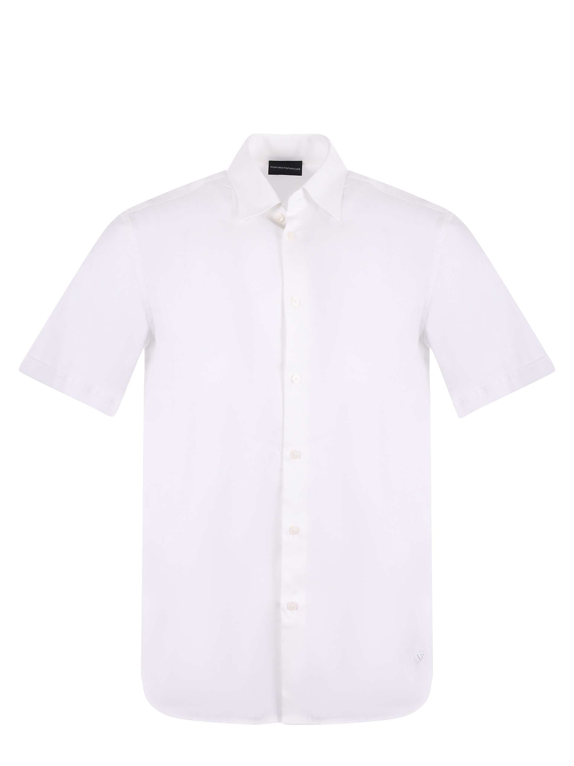 Camicia Emporio Armani in cotone rasato stretch Bianco. Colletto classico. Manica corta con risvolto. Logo ricamato sul fondo. Chiusura con bottoni. Slim fit.