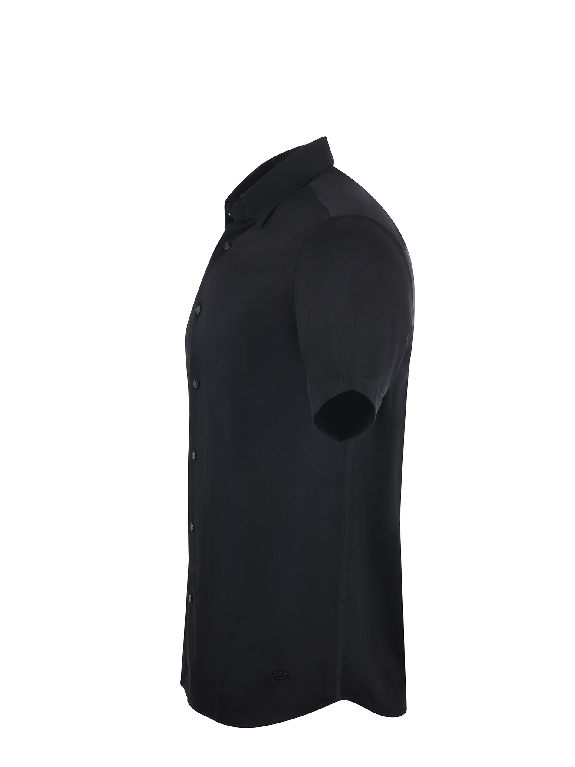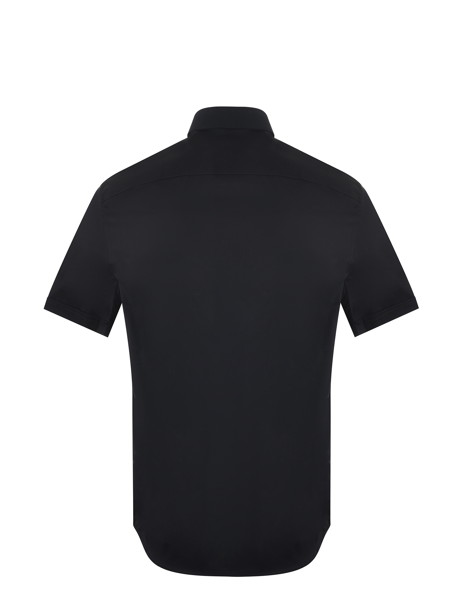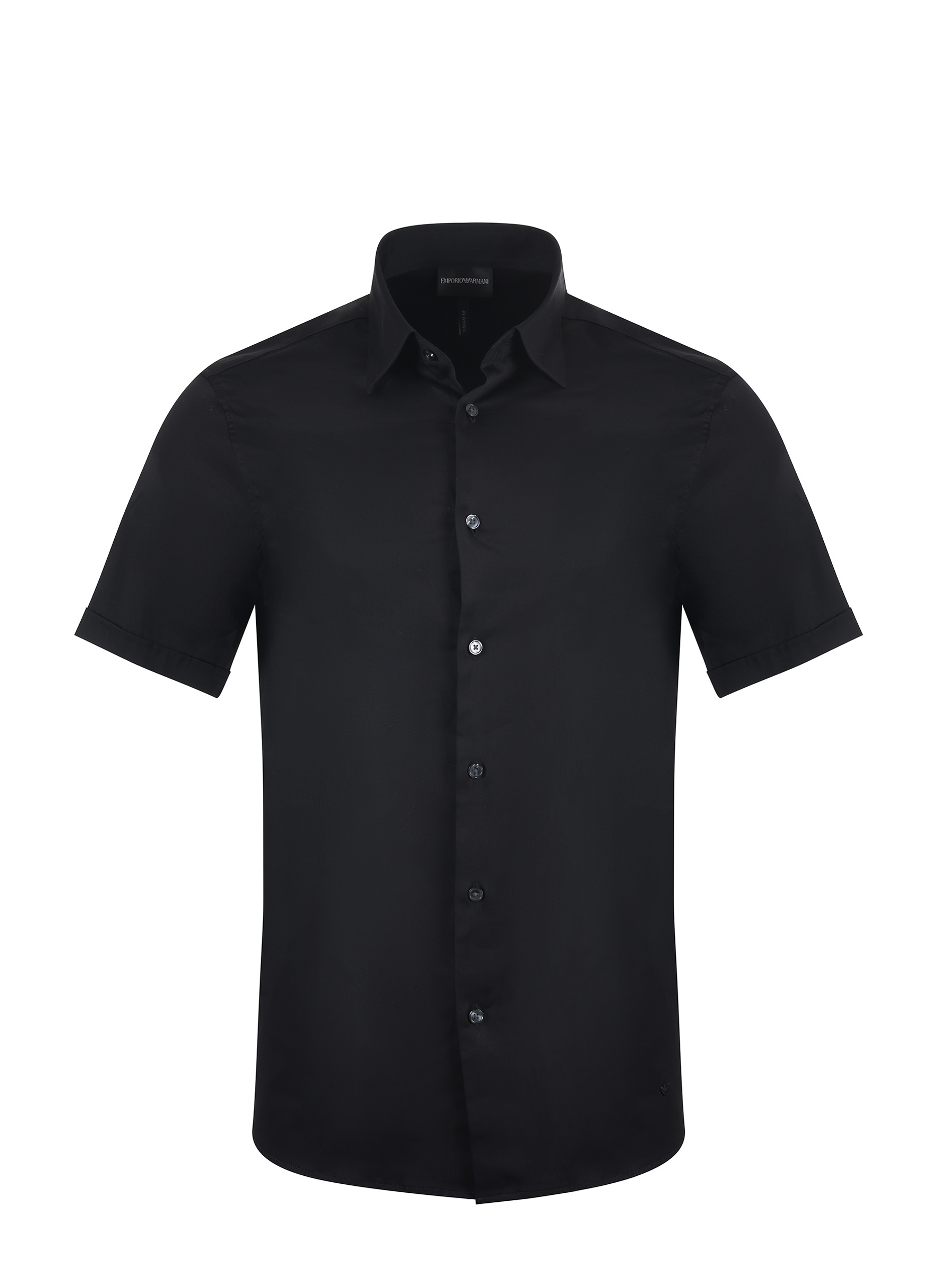 Camicia Emporio Armani in cotone rasato stretch Nero. Colletto classico. Manica corta con risvolto. Logo ricamato sul fondo. Chiusura con bottoni. Slim fit.