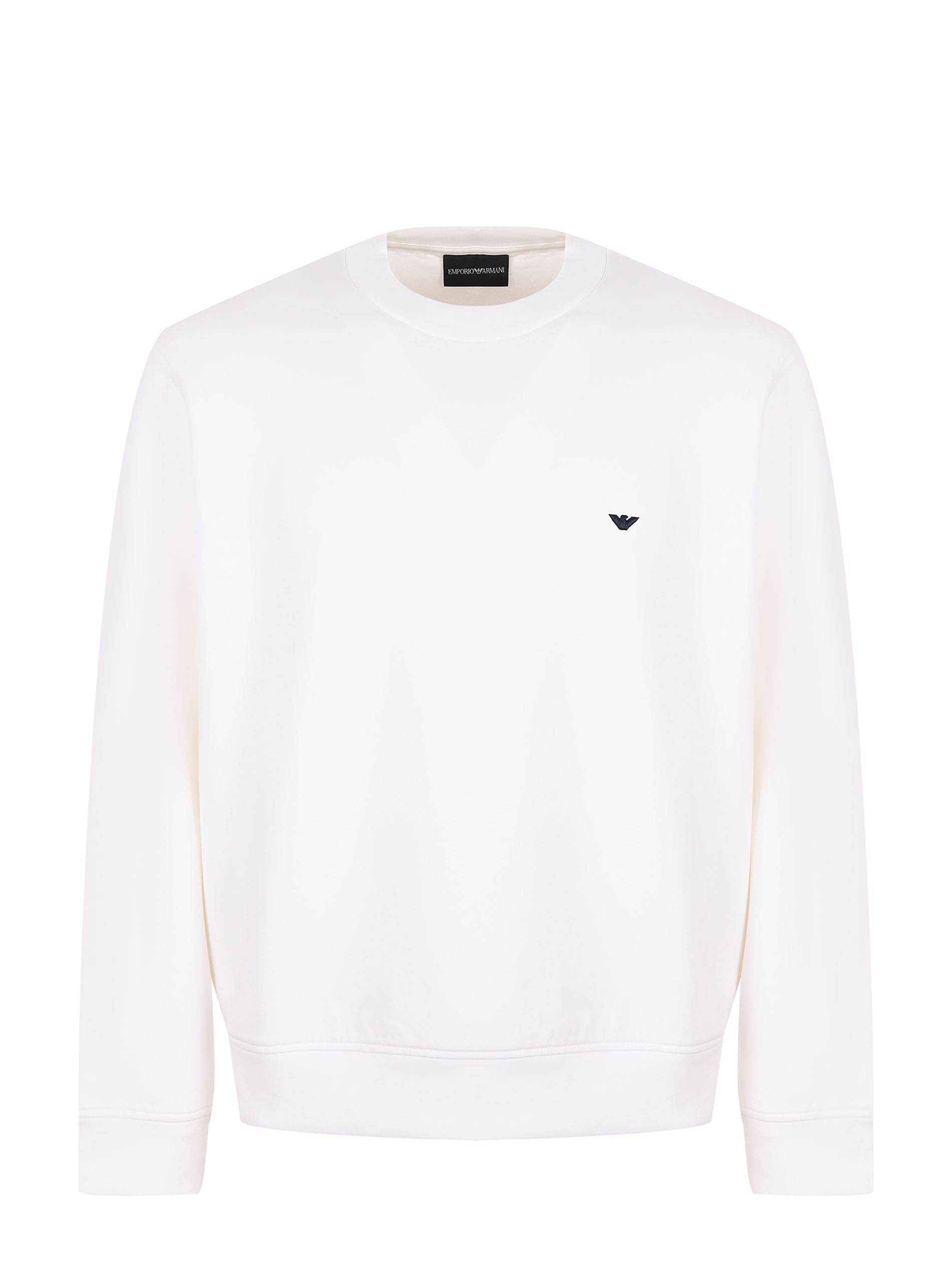 Felpa Emporio Armani in double Jersey Bianco. Girocollo. Logo frontale ricamato. Manica lunga.