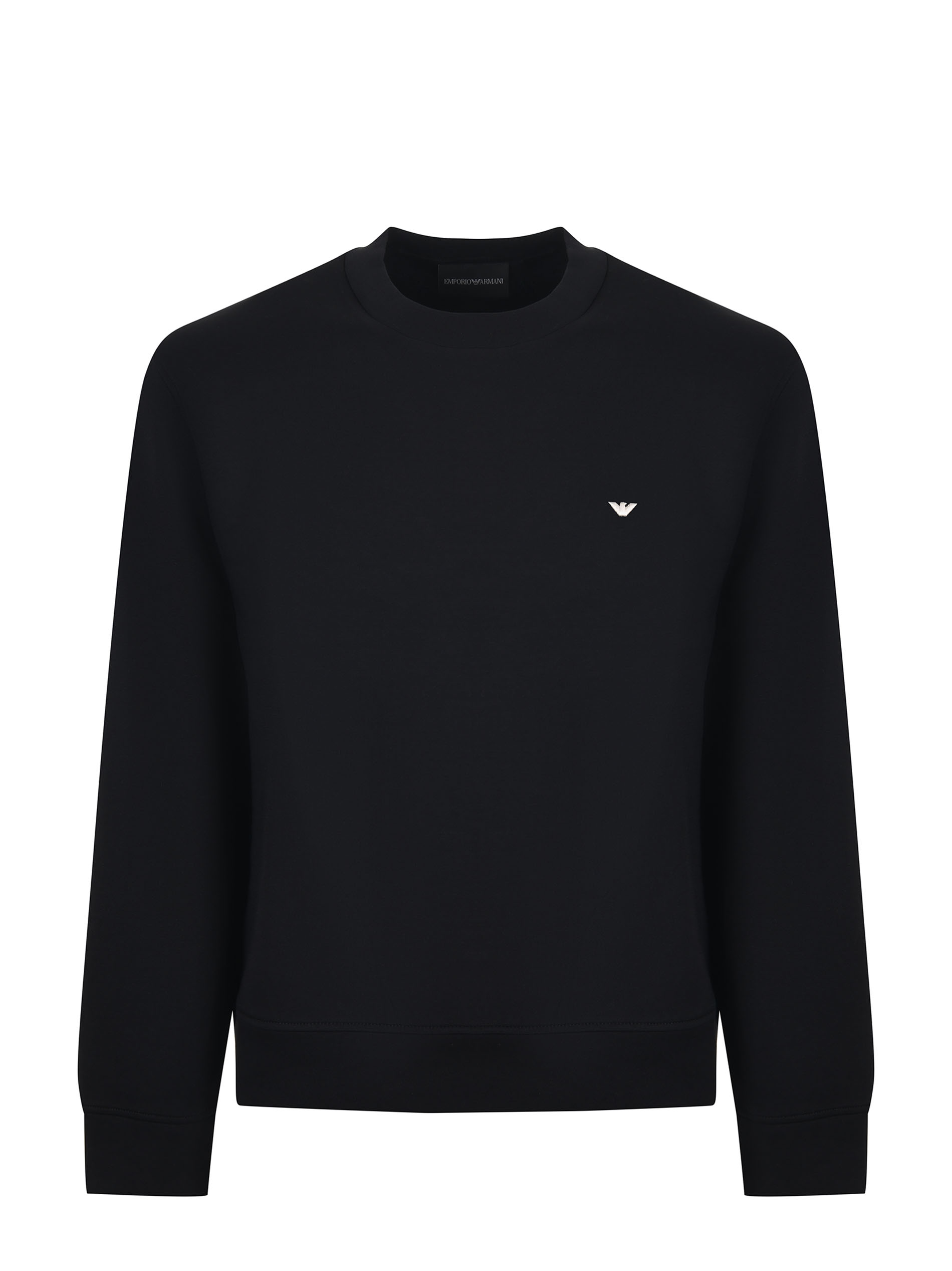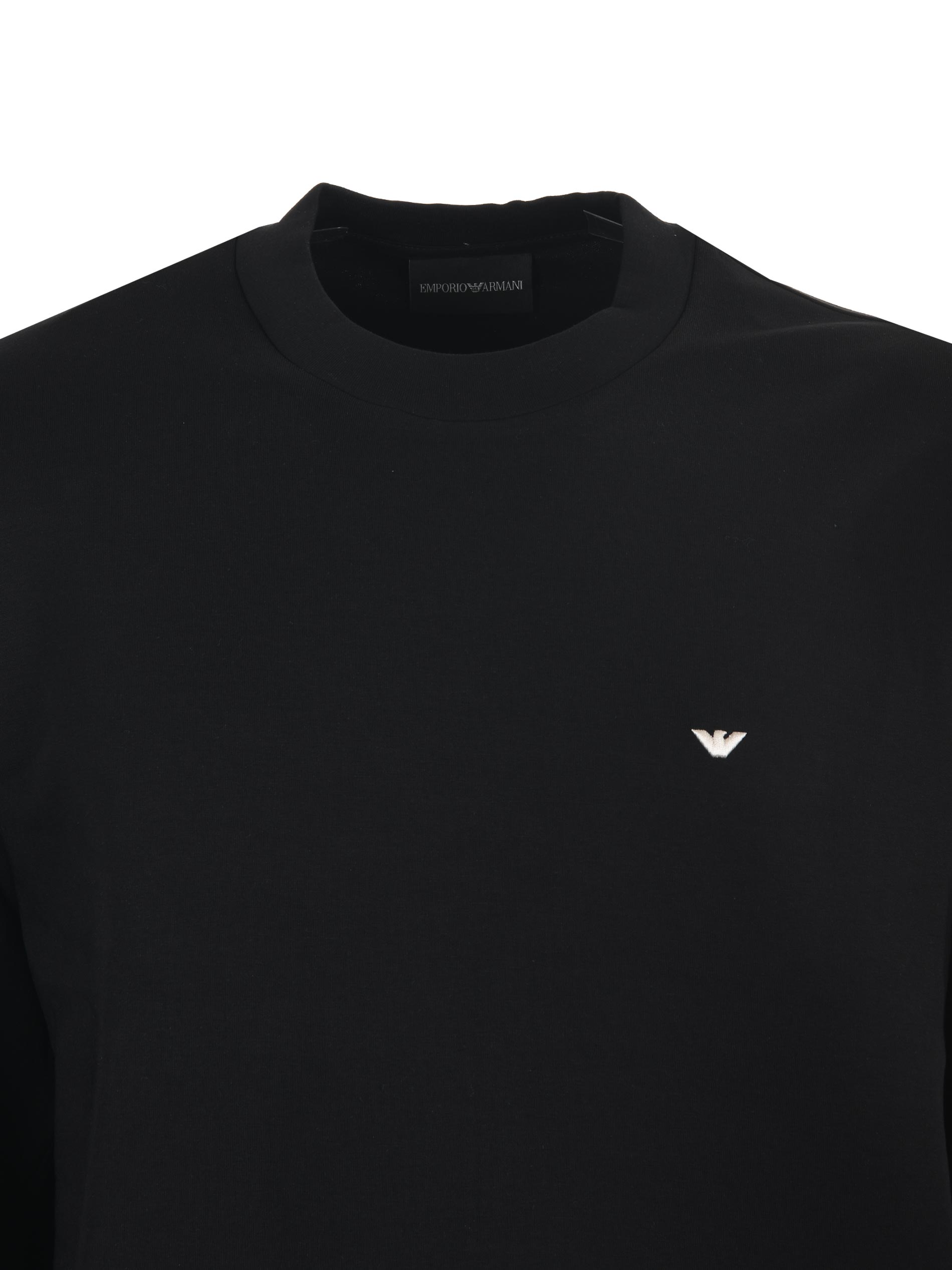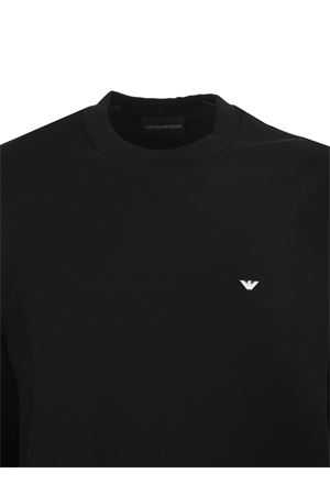Felpa Emporio Armani in double Jersey Nero. Girocollo. Logo frontale ricamato. Manica lunga.