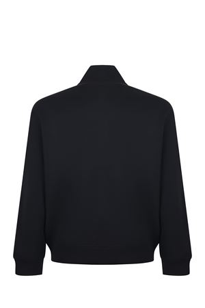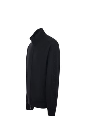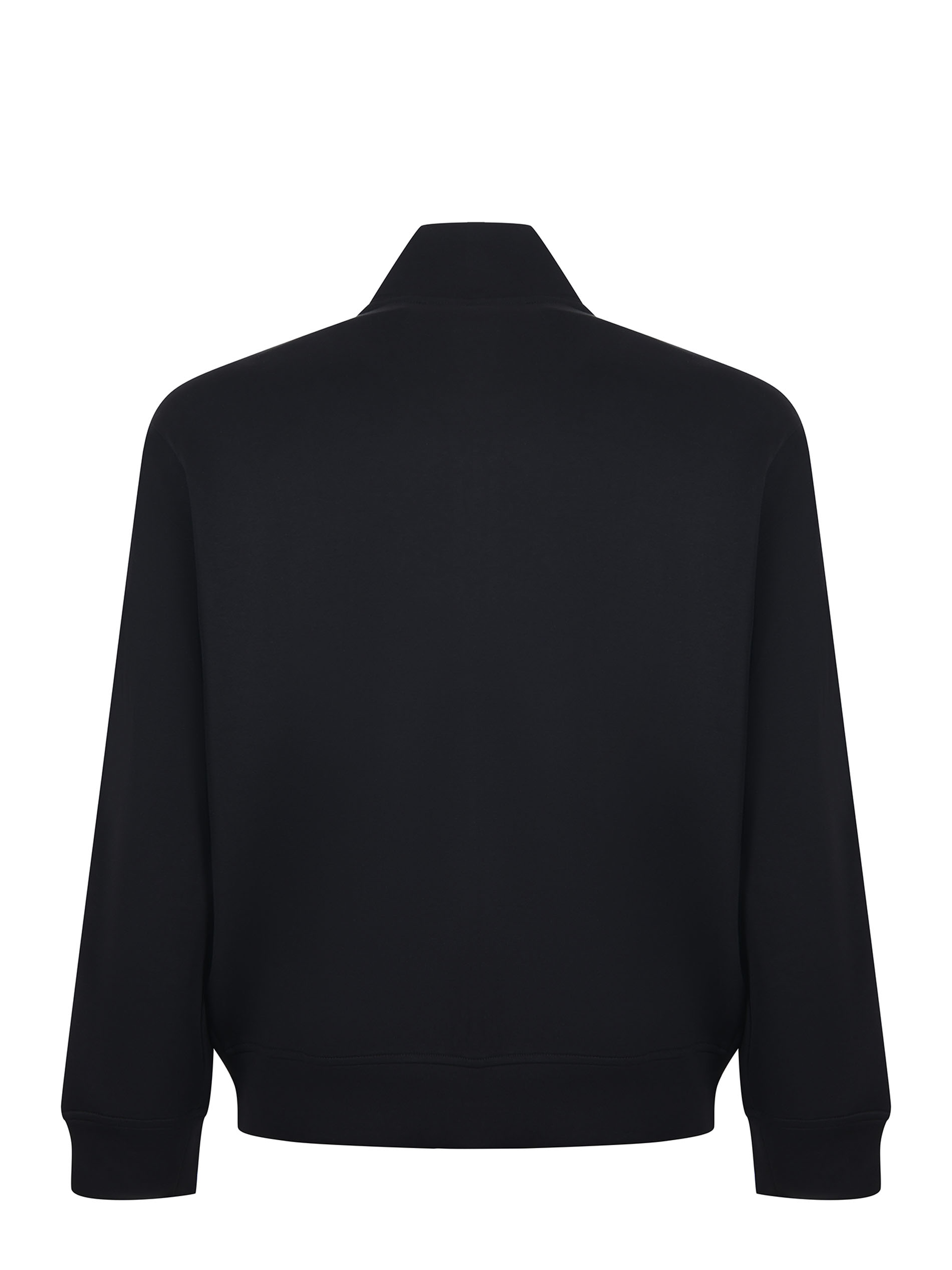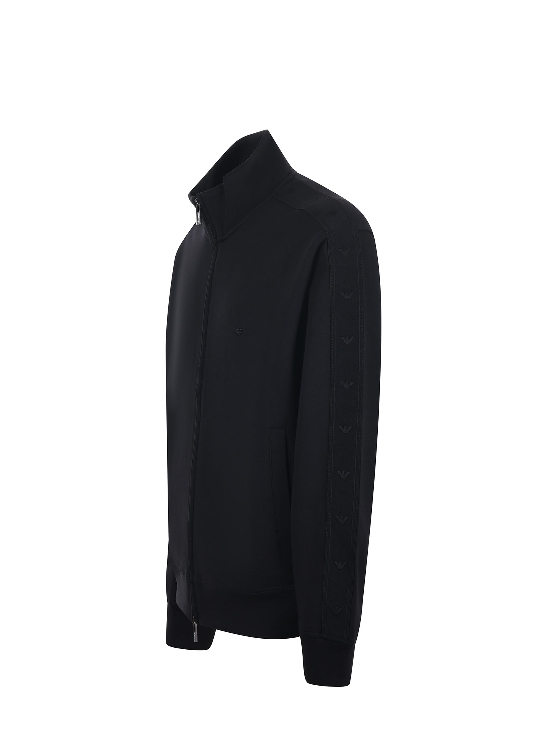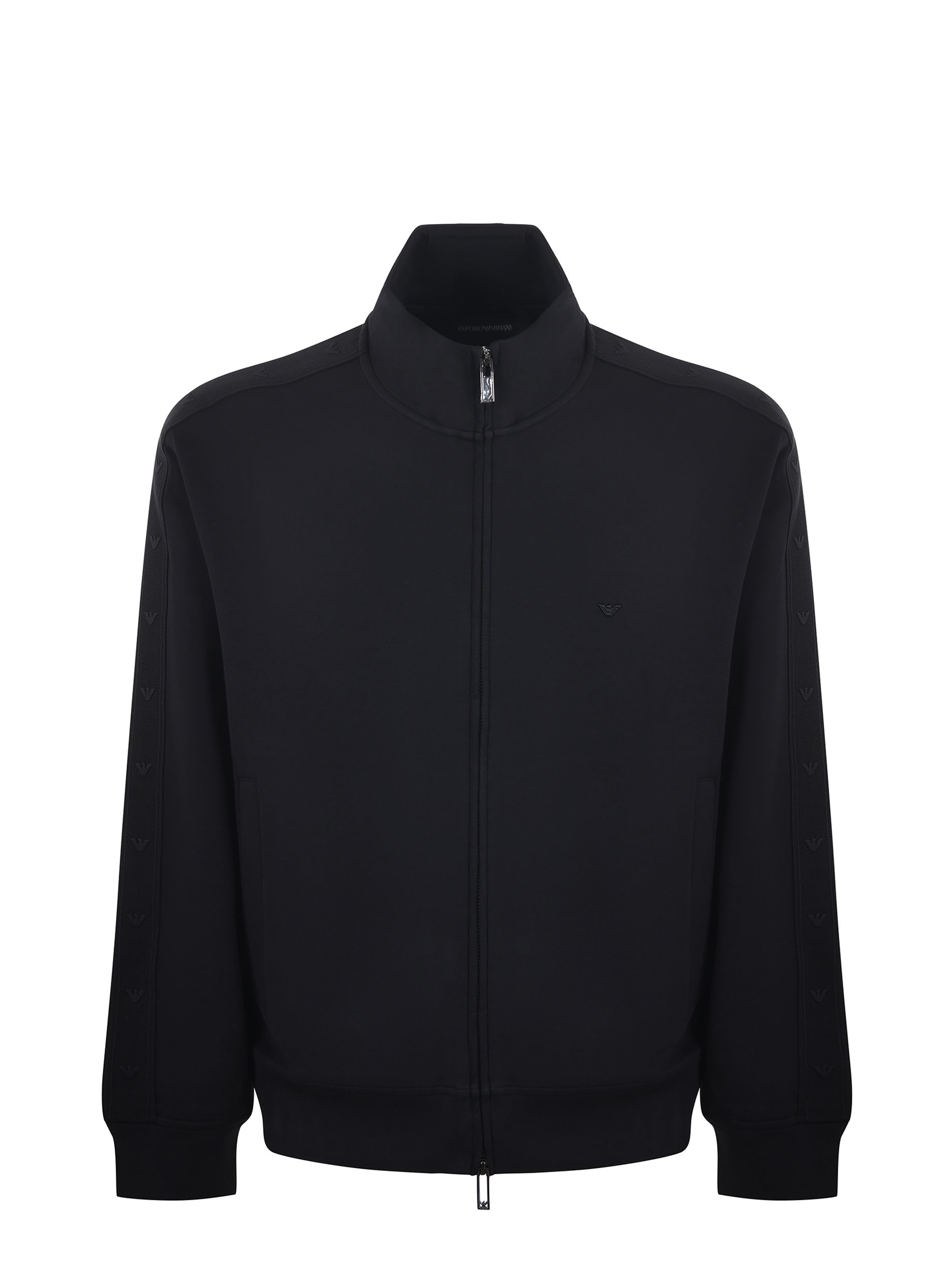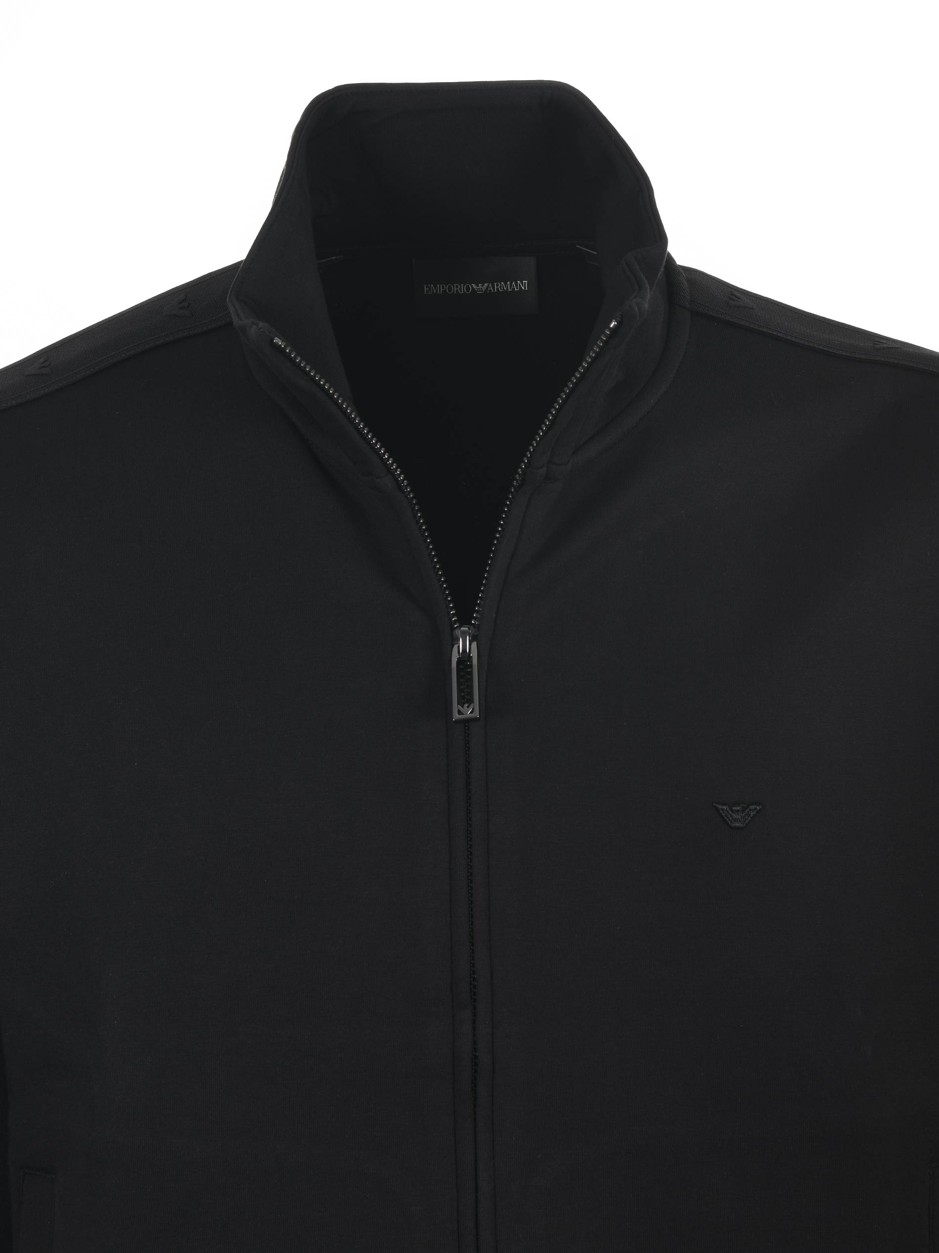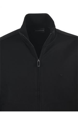 Felpa Emporio Armani in double Jersey Nero. Collo alto. Chiusura con zip doppio cursore. Tasche a filo. Logo frontale ricamato. Manica lunga. Banda logata con motivo jacquard raffigurante micro aquila in tono.