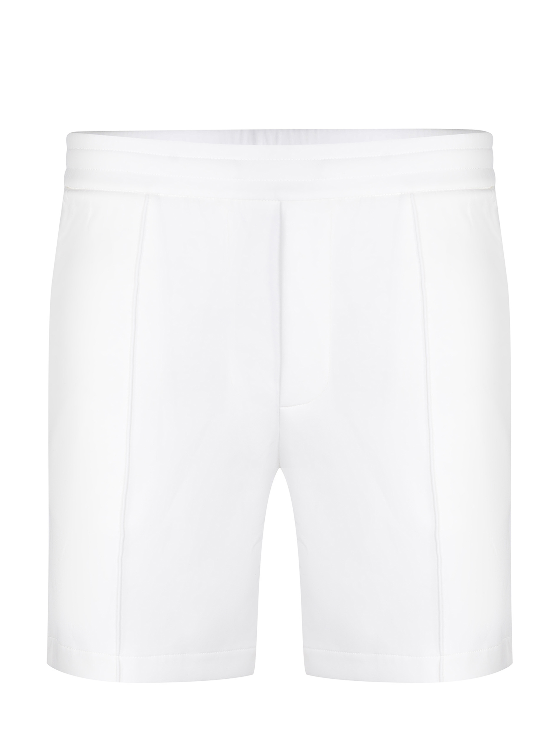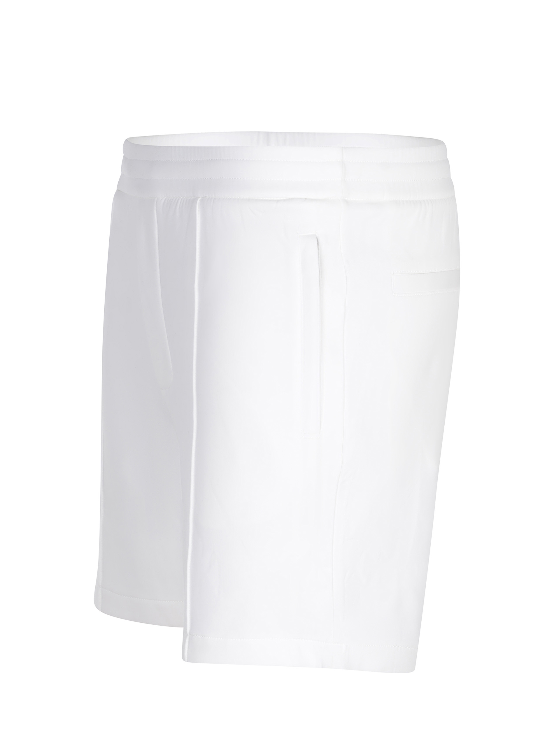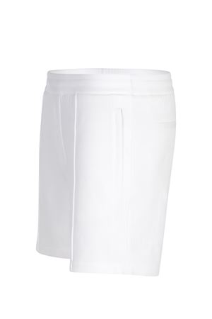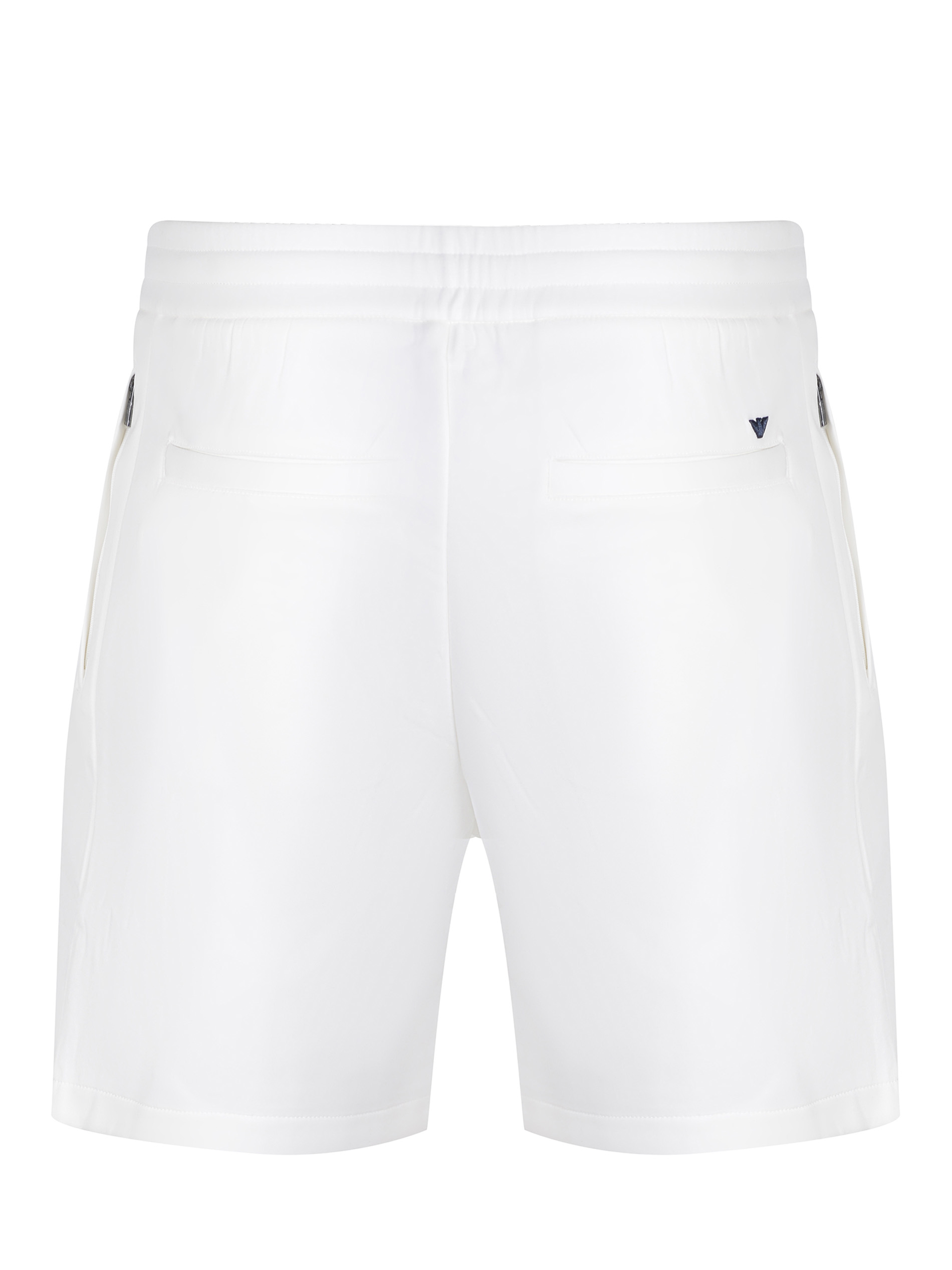 Shorts Emporio Armani in double jersey Bianco. Elastico in vita con coulisse. Cuciture frontali a rilievo. Tasche a filo con zip. Tasca posteriore. Logo ricamato sul retro.