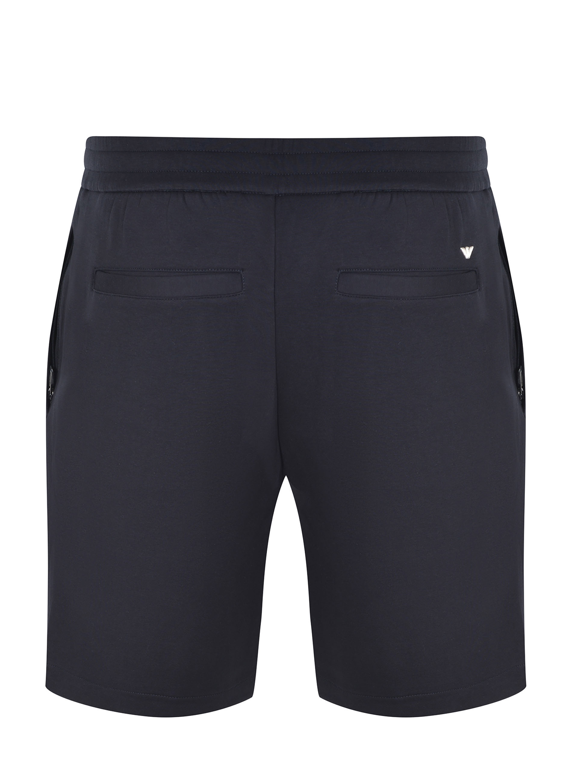 Shorts Emporio Armani in double jersey Blu scuro. Elastico in vita con coulisse. Cuciture frontali a rilievo. Tasche a filo con zip. Tasca posteriore. Logo ricamato sul retro.