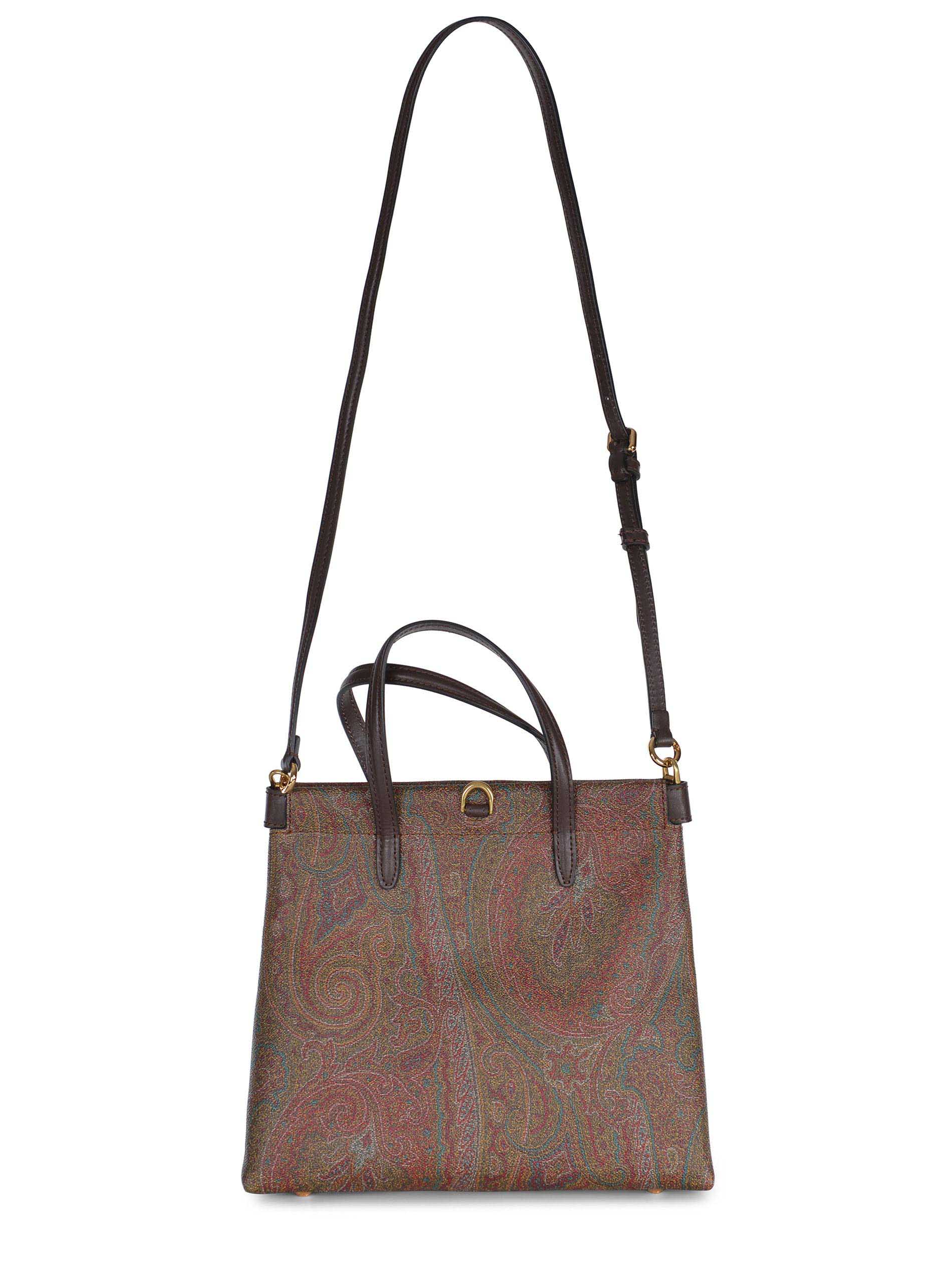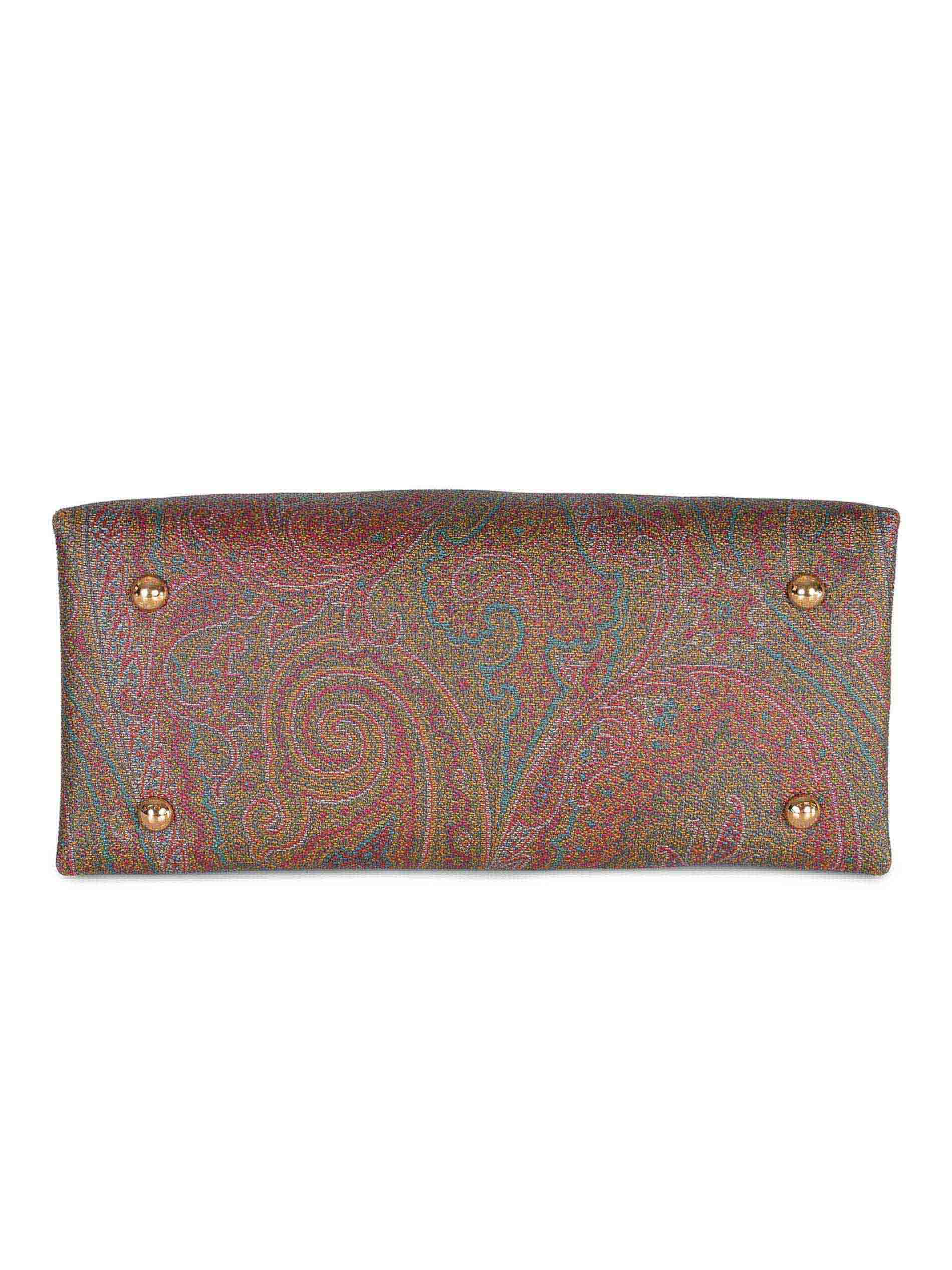Borsa Etro realizzata in tela di cotone Paisley spalmato con grana opaca e doppia tela di colore Marrone.