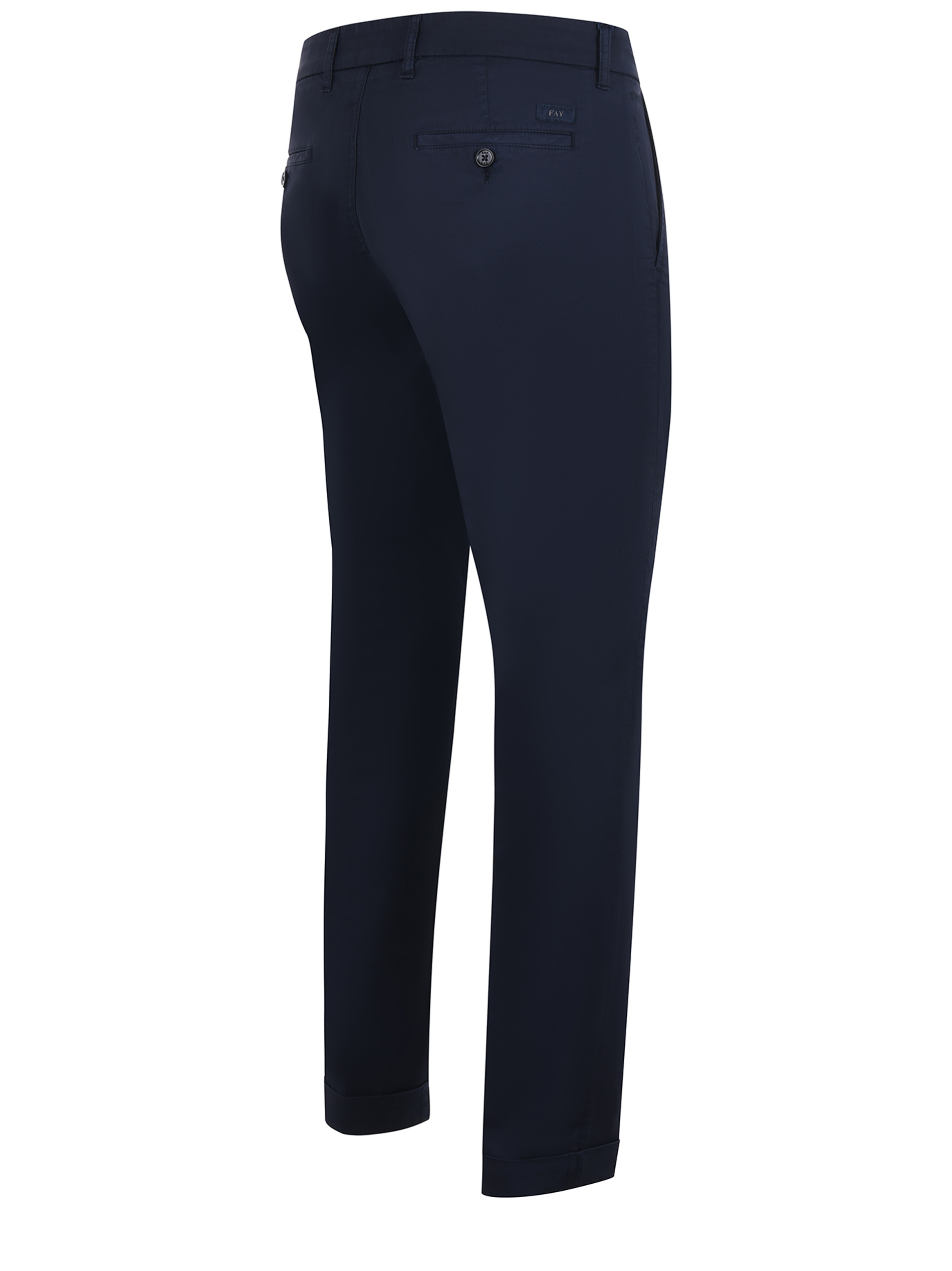 Pantaloni Fay in gabardina stretch Blu scuro. Tasche america. Tasche posteriori a filo con bottone. Gamba dritta. Risvolto cucito al fondo. Chiusura con zip e gancio.