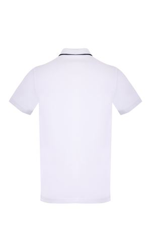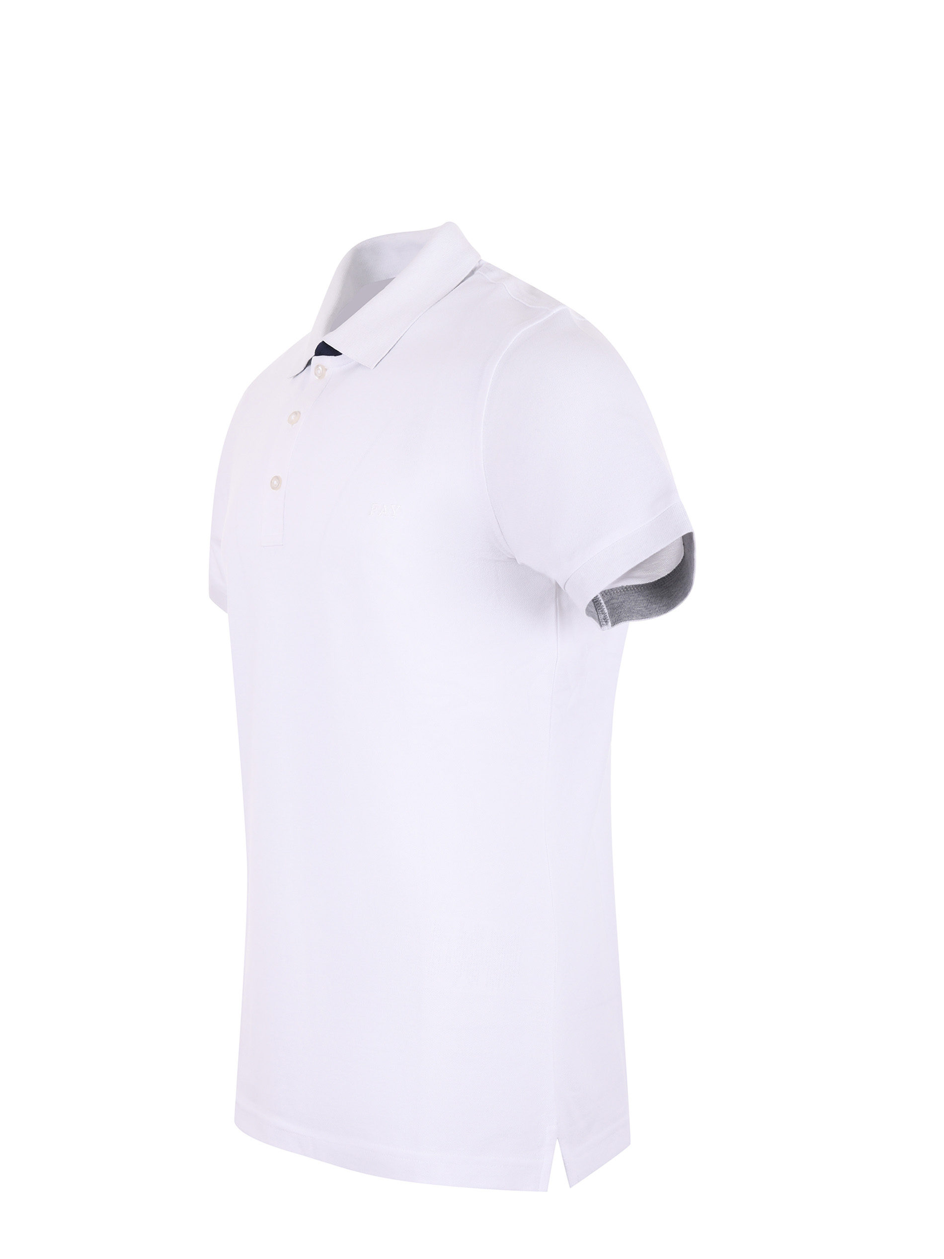 Polo Fay in piquet stretch Bianco. Colletto a costine e sottocollo a contrasto. Logo frontale ricamato. Chiusura con 3 bottoni. Manica corta. Spacchetti al fondo.