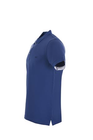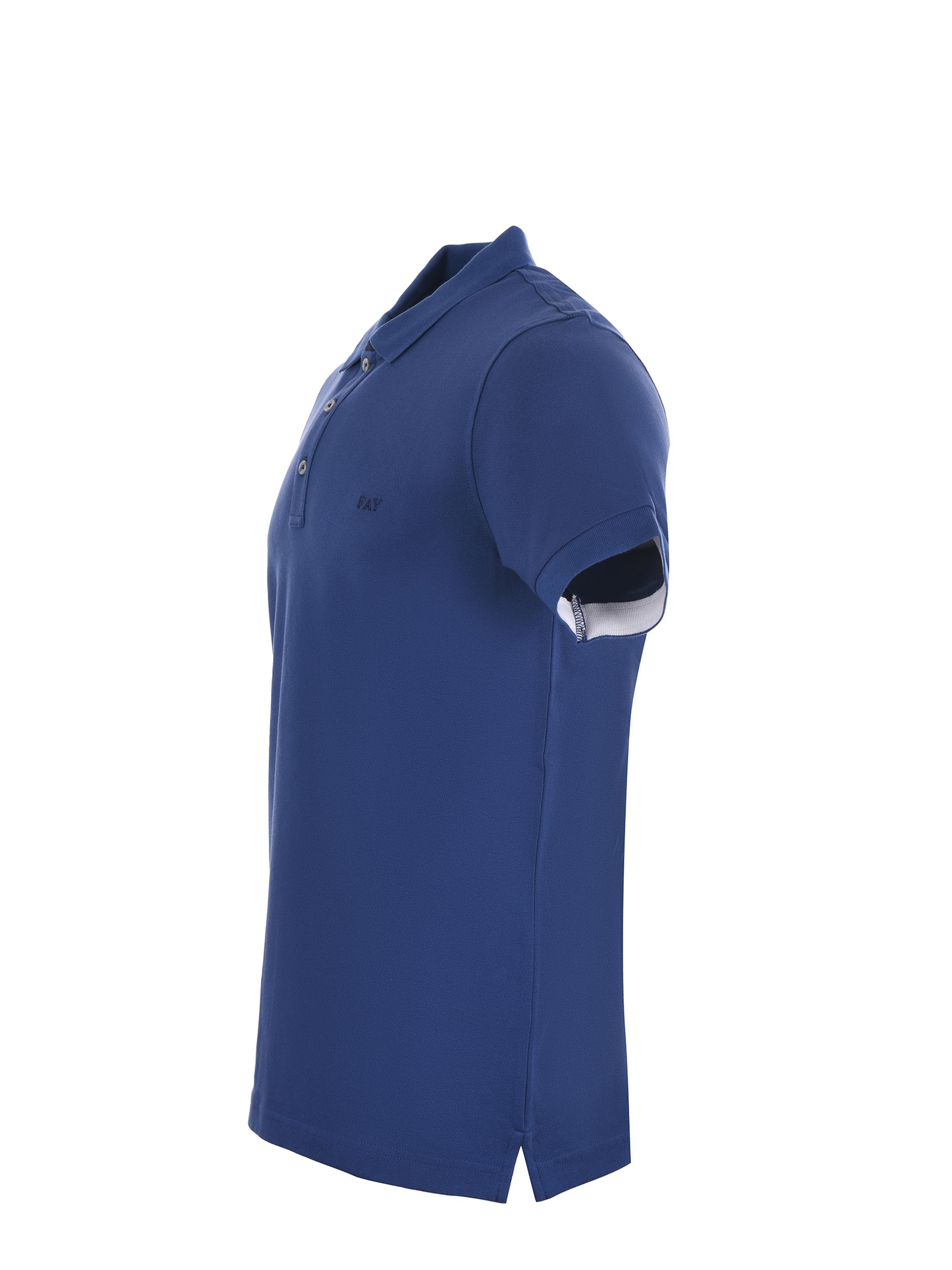 Polo Fay in piquet stretch Bluette. Colletto a costine e sottocollo a contrasto. Logo frontale ricamato. Chiusura con 3 bottoni. Manica corta. Spacchetti al fondo.